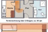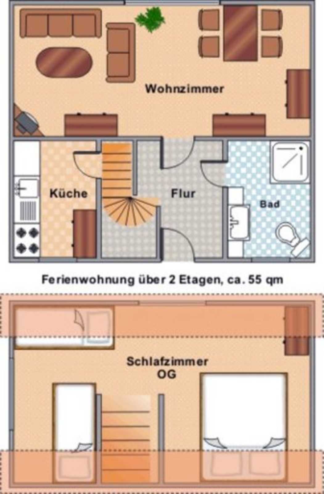 Die Ferienwohnung geht über 2 Etagen und bietet ausreichend Platz für bis zu 4 Personen - ideal also für einen Familienurlaub. Die Wohnung ist über einen separaten Eingang zu erreichen, diese ist komplett ausgestattet, im Wohnzimmer mit Sat-TV, gemütlicher Sitzecke und Essecke, einem Bad mit Dusche und WC, einer separaten Küche und im Obergeschoss befindet Schlafbereich mit 1 Doppelbett und 2 Einzelbetten. Bettwäsche wird zur Verfügung gestellt, Handtücher müssen selbst mit gebracht werden. Die große Terrasse und Spielwiese mit Grillplatz hinter dem Haus kann von den Feriengästen selbstverständlich mit genutzt werden. Ebenso ist ein eigener PKW-Stellplatz vorhanden. Einkaufsmöglichkeiten befinden sich in ca. 300 m Nähe - Friseur und verschiedene Gaststätten sind ebenfalls in unmittelbarer Nähe vorhanden.