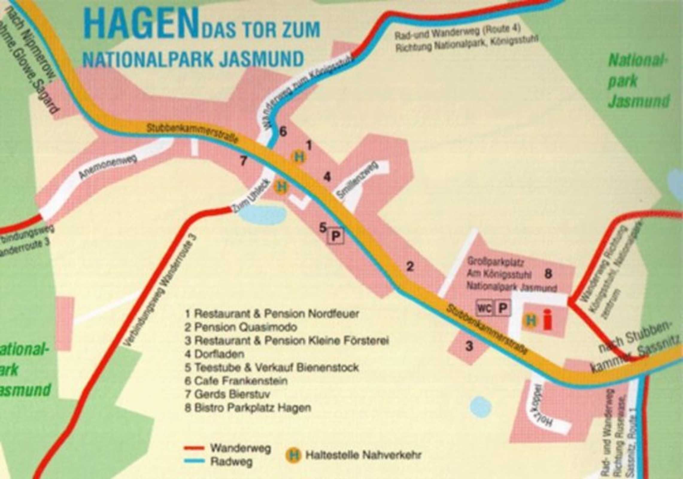 Die 2 Ferienhäuser befinden sich auf einem ca. 1500 qm großem Grundstück in sehr ruhiger Lage. Das Dorf Hagen liegt direkt am Nationalpark Jasmund. In der Nachbarschaft des Vermieters werden Hühner gehalten. Hagen ist idealer Ausgangspunkt für Wanderungen und Radtouren zur berühmten Kreideküste der Insel Rügen. Hagen liegt mitten der beiden schönsten Sandstrände der Insel je ca. 12 km. Bushaltestelle und Gaststätten im Ort. Die Hafenstadt Sassnitz mit Bahnhof, Einkaufscentren und weiteren Restaurants liegt ca. 6 km entfernt.