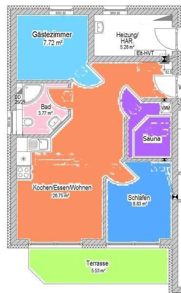 • Wohnzimmer mit off. Küche, Eßtisch, Couch