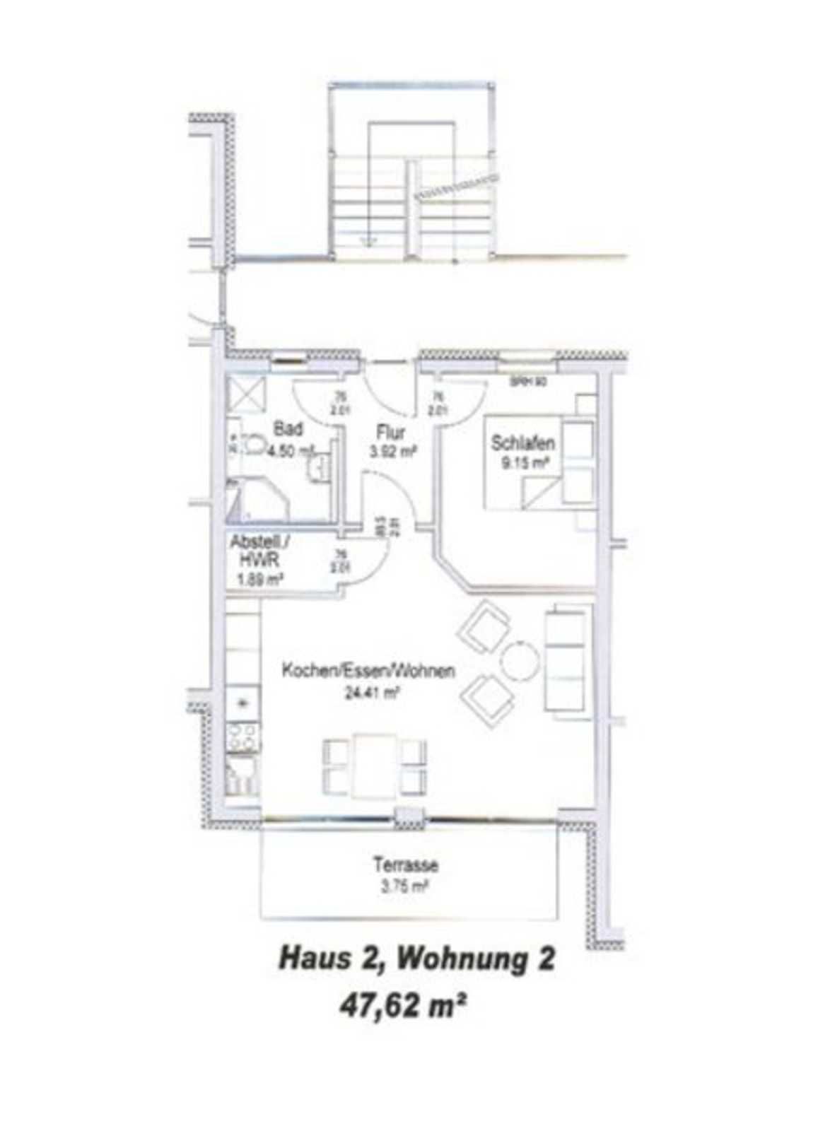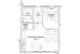 • 1 Wohnzimmer mit offener Küche, Eßtisch, Couchecke