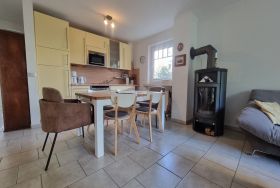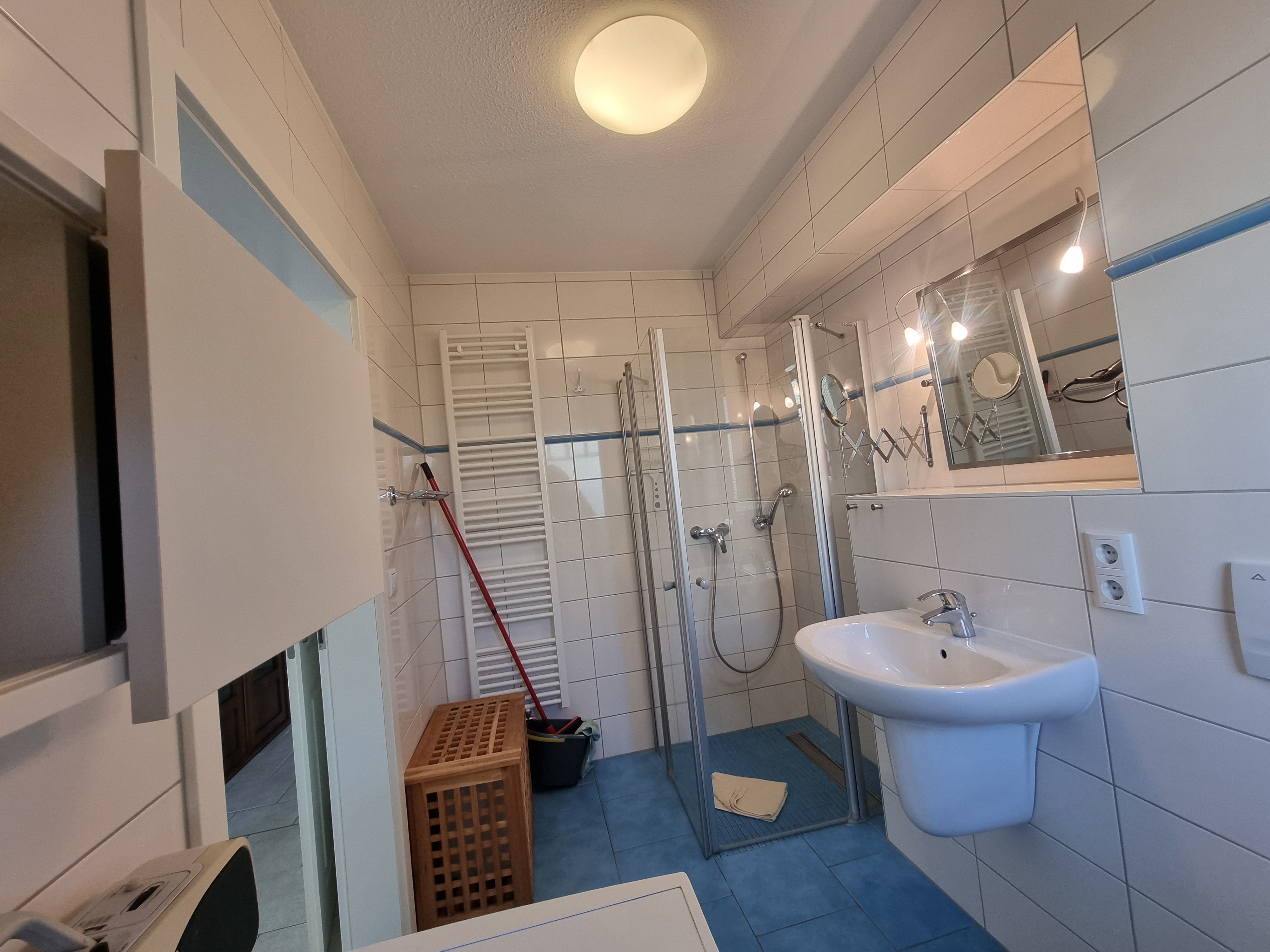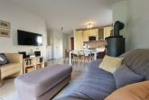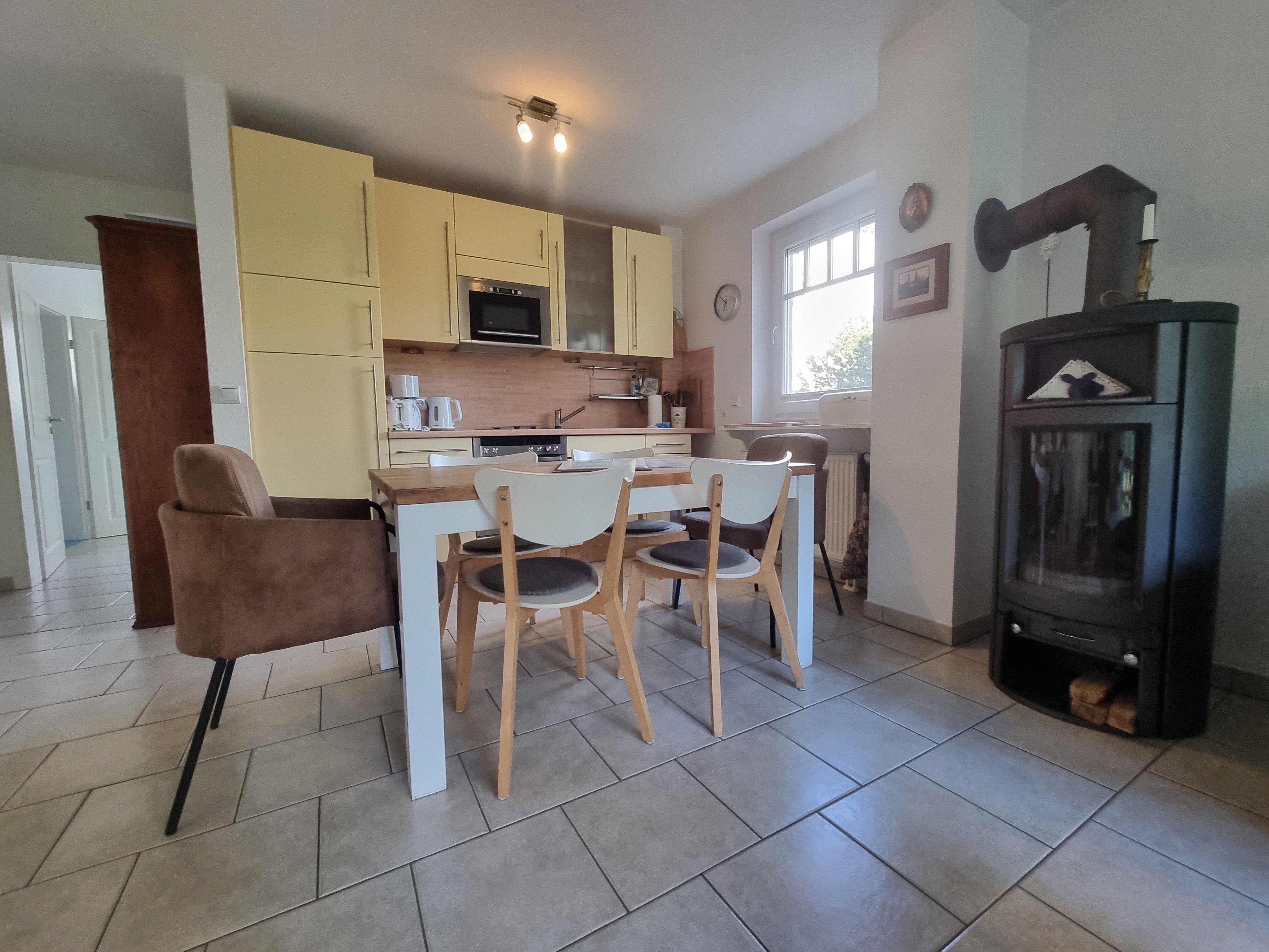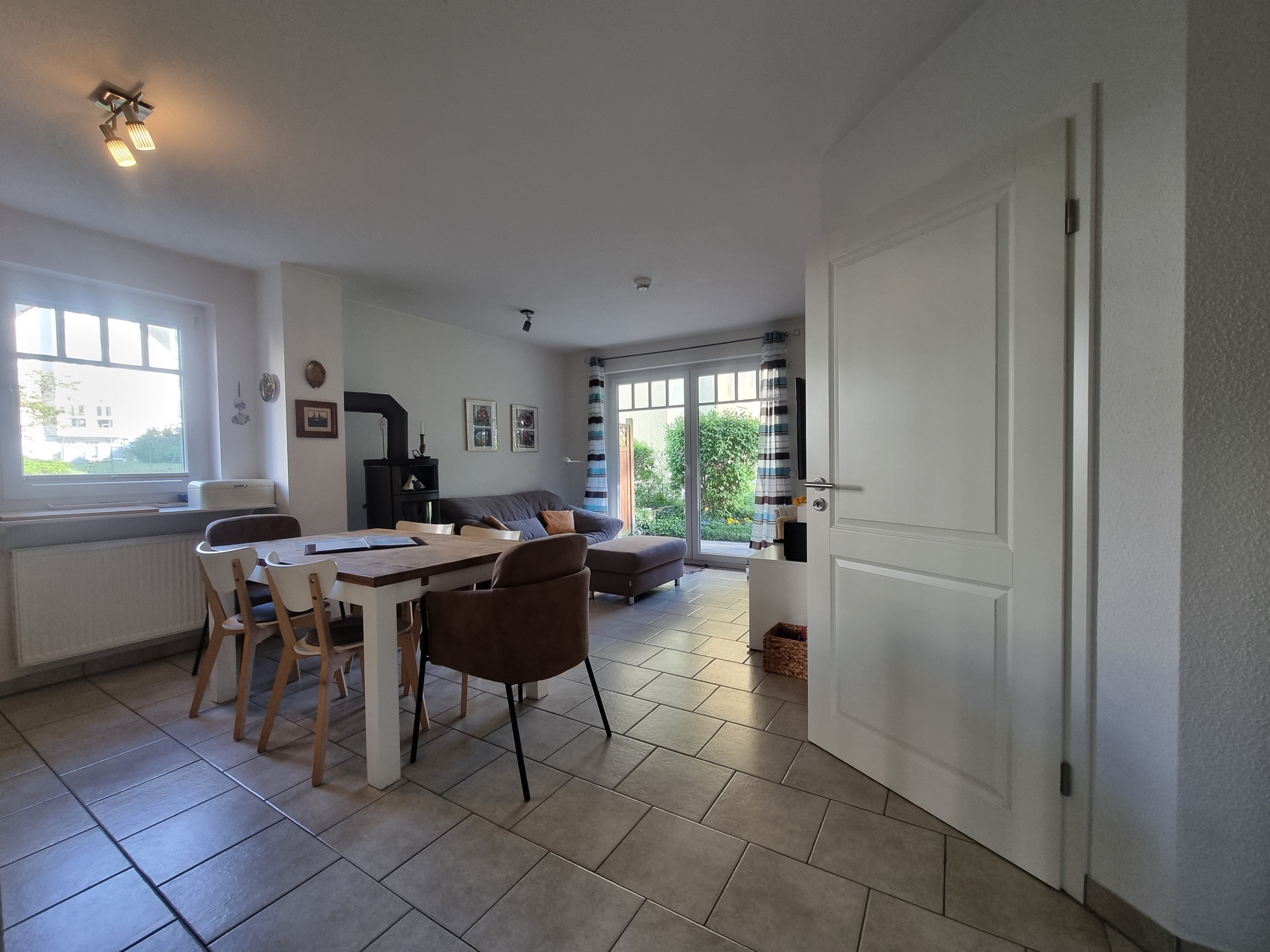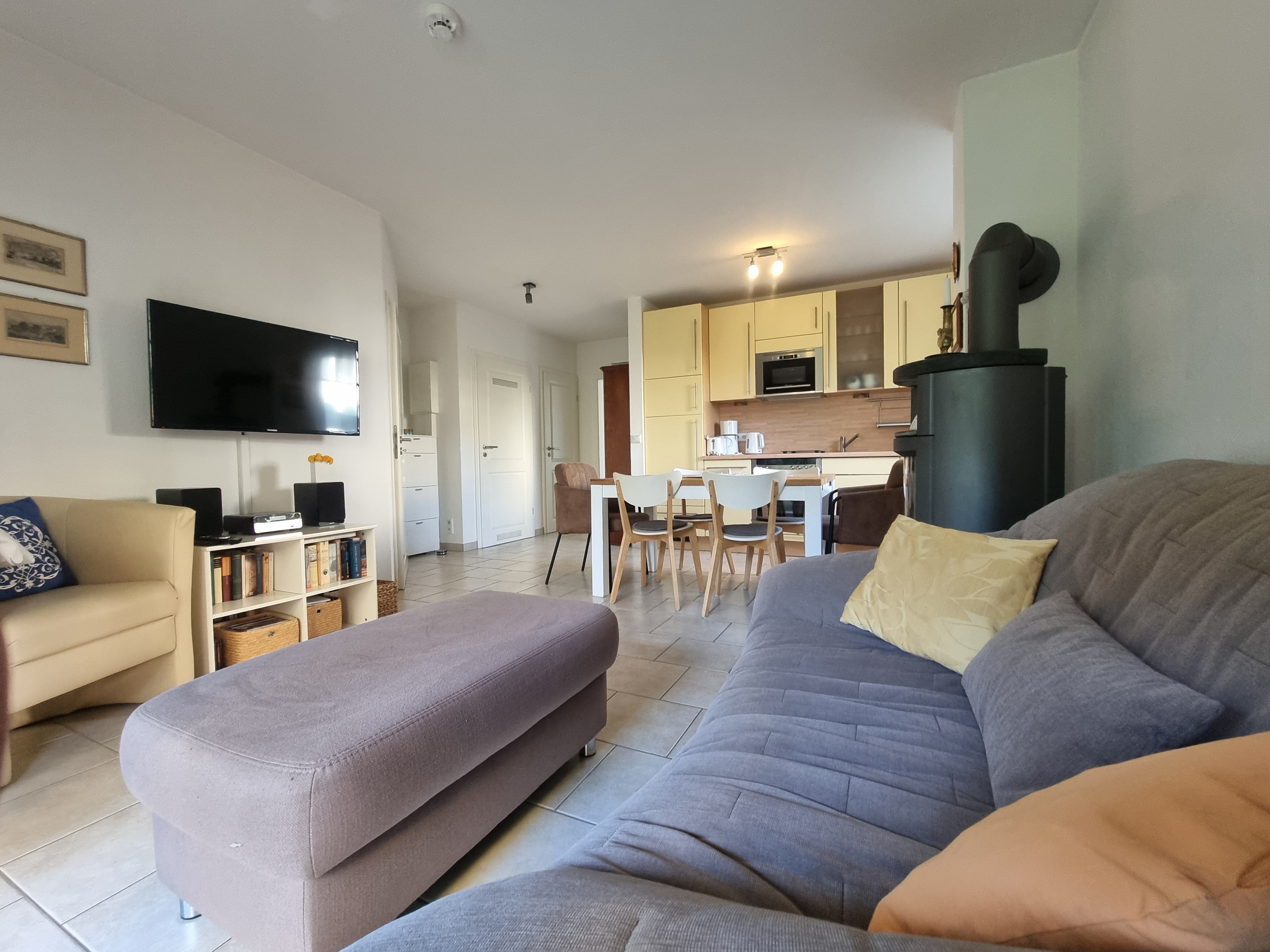 Die Ferienwohnung liegt im Erdgeschoß des Ferienhauses. Sie besteht aus Wohnzimmer, kompl. ausgestatteter Küche, Schlafzimmer und Tageslichtbad. Die Ausstattung der Einbauküche ist neuwertig funktional und qualitativ hochwertig unter anderem mit Toaster, Kaffeemaschine, Backofen mit Heißluft, Kochfeld, Geschirrspüler, Gefrierfach. Große Süd-Terrasse mit Blick auf den Küstenwald, große Spielwiese. Grillplatz