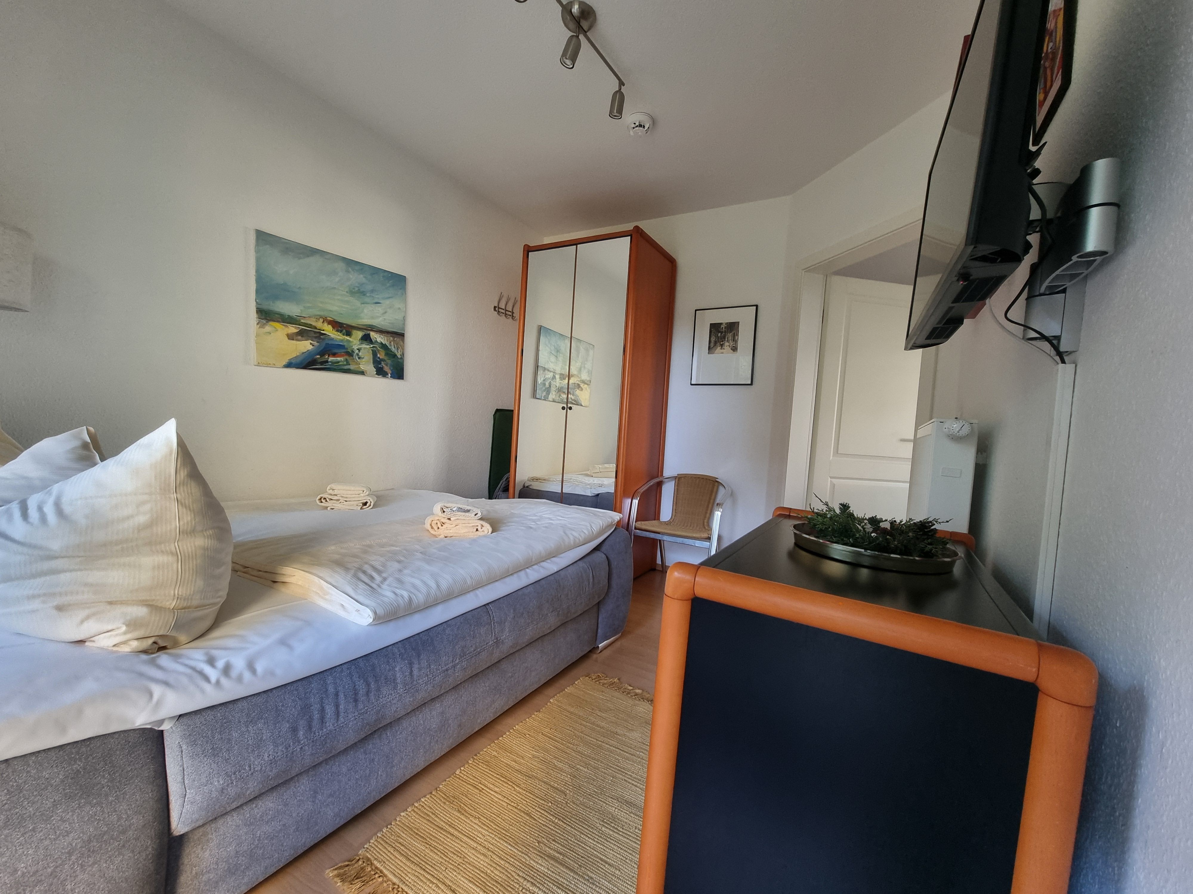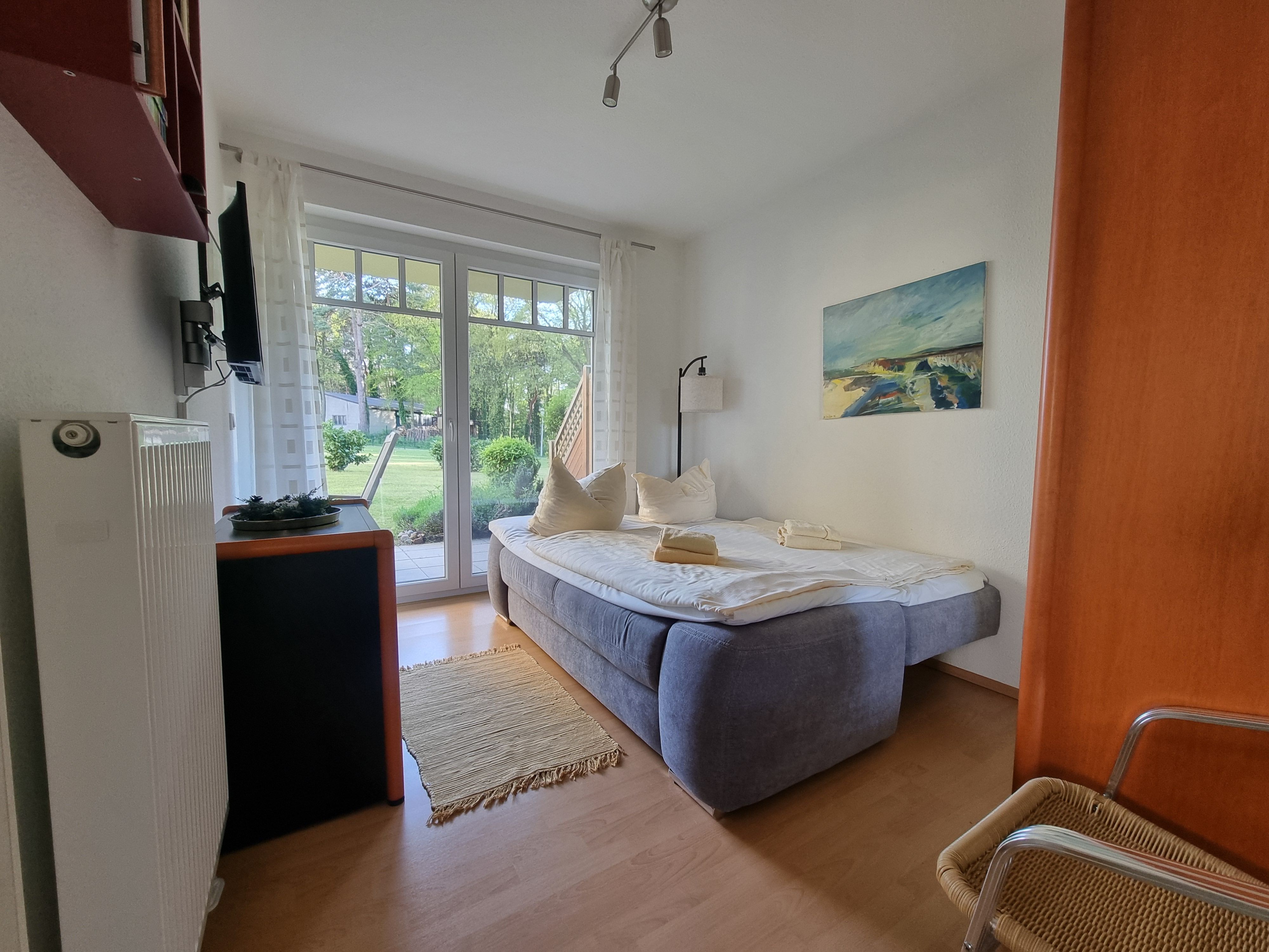 Die Wohnung verfügt über ein Schlafzimmer mit Doppelbett und ein Schlafzimmer mit Schlafsofa.