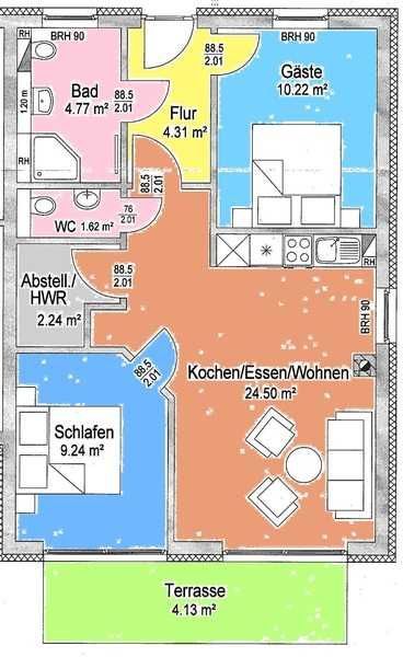 • Wohnzimmer mit off. Küche, Eßtisch, Couch