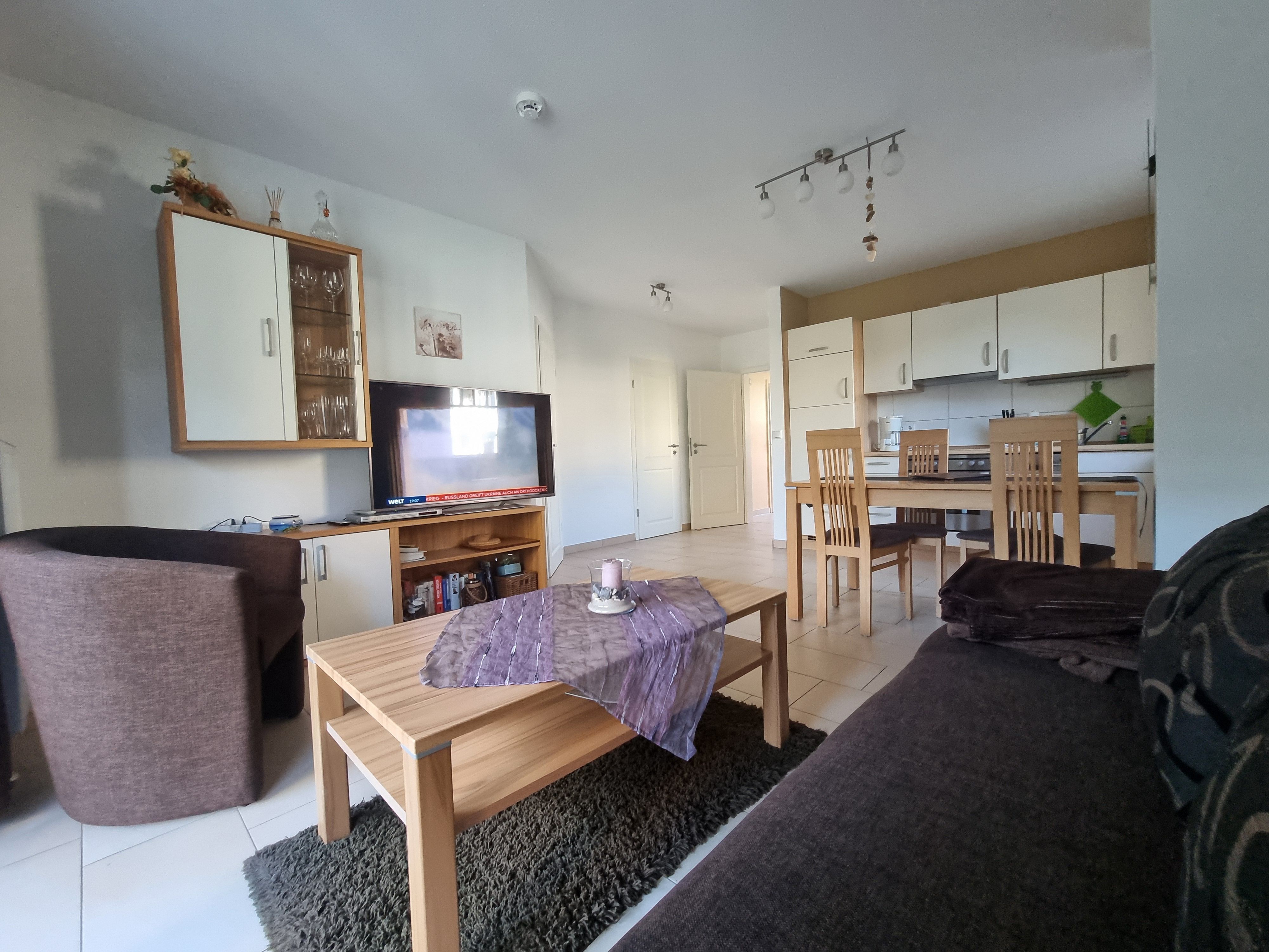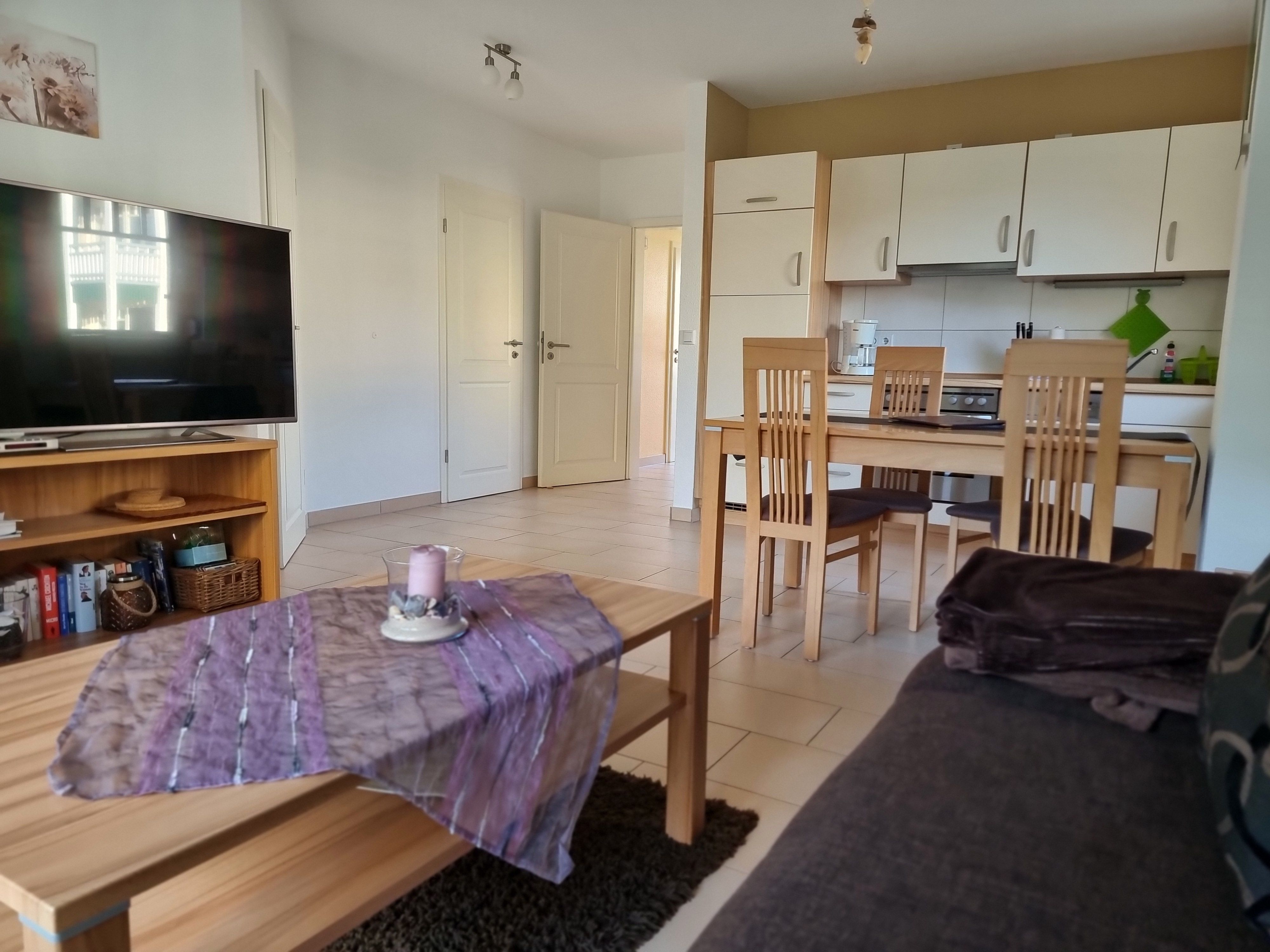 • Wohnzimmer mit off. Küche, Eßtisch, Couch, teilw. Elektrokamin