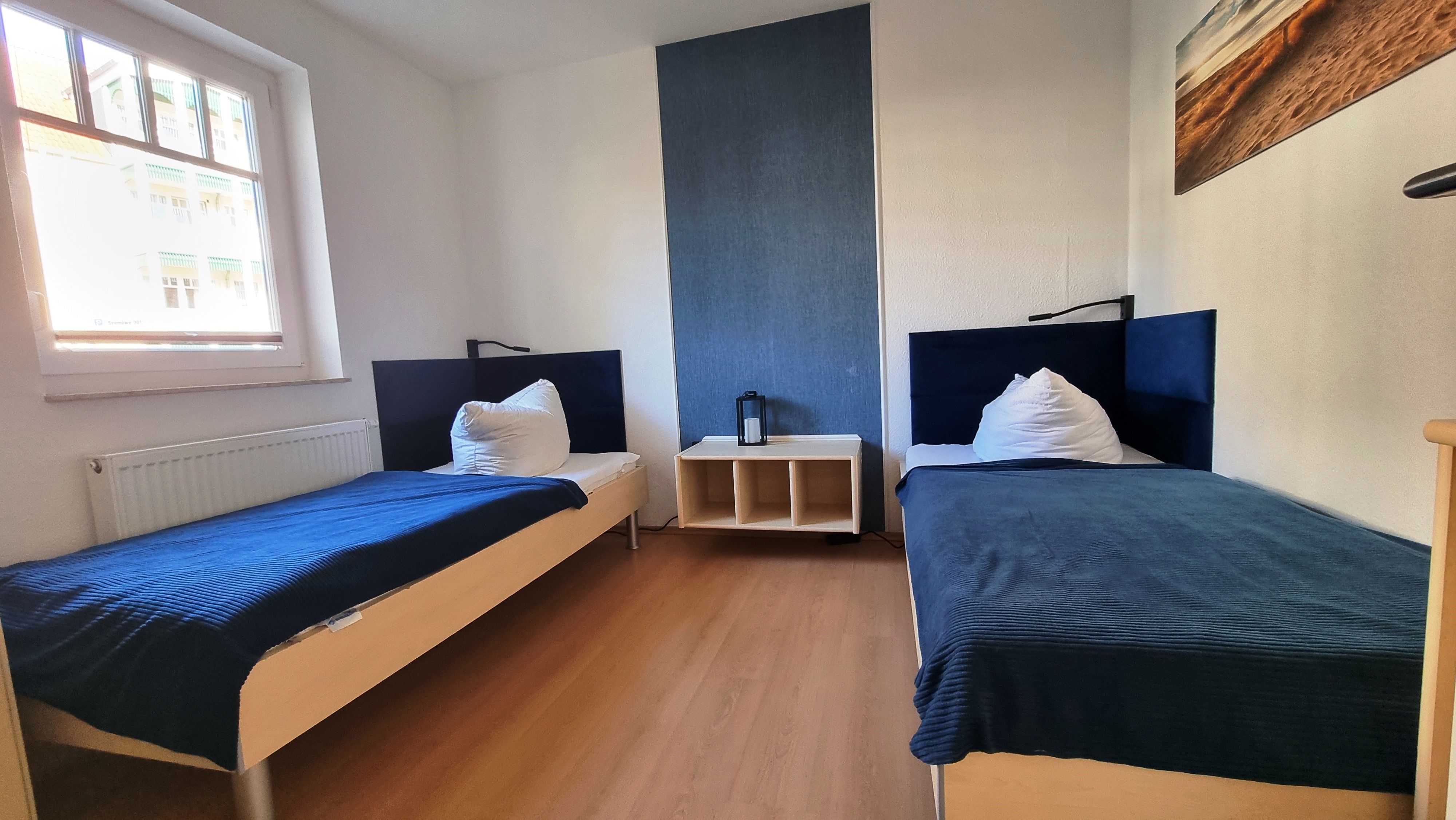 • 1 Schlafzimmer mit zwei Einzelbetten oder Schlafcouch