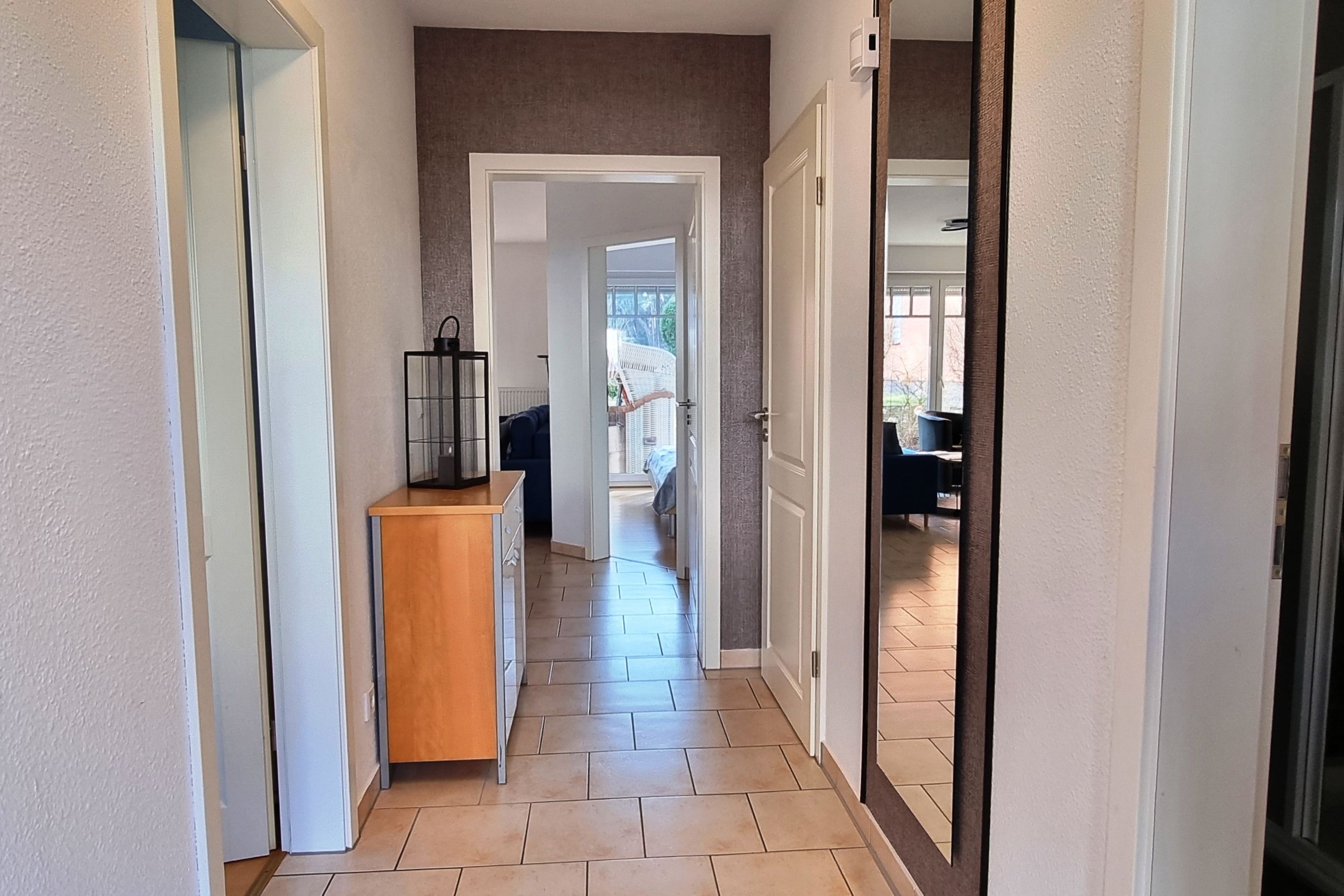 Die Wohnung verfügt über ein Schlafzimmer mit Doppelbett und ein Schlafzimmer mit 2 Einzelbetten. Die Wohnung ist ideal geeignet für Familien und Hundeliebhaber.