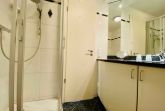 Das Badezimmer ist mit einer Dusche ausgestattet. Ein überdachter Balkon Richtung Park lädt zum entspannen ein.