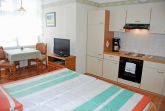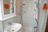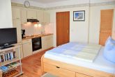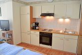 Die Küchenzeile ist mit einem Herd, Abzugshaube, Backofen, Wasserkocher, Kaffeemaschine, Toaster und Kühlschrank komplett ausgestattet. Das moderne Bad ist mit Dusche, WC und Waschbecken ausgestattet. Zu diesem Appartement gehört auch eine schöne Balkonterrasse mit Gartenmöbeln, Sonnenschirm und Grill.
