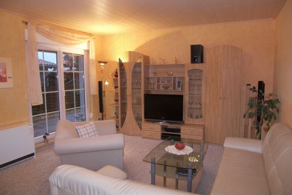 Ein Schlafzimmer verfügt über ein Doppelbett, die beiden anderen Schlafzimmer über je ein Einzelbett. Das erste der beiden Badezimmer ist mit einer Eckbadewanne, WC und Waschmaschine (Nutzung gegen Gebühr) ausgestattet, das zweite Badezimmer verfügt über Dusche/WC. Des Weiteren steht Ihnen ein Arbeitsplatz mit PC und DSL-Internetzugang zur Verfügung. Zur Wohnung gehört außerdem eine Terrasse mit Rattanmöbeln und ausfahrbarer Markise in westlicher Richtung zur gemeinschtlichen Nutzung (von Mittag bis Abend können Sie die Sonne genießen).