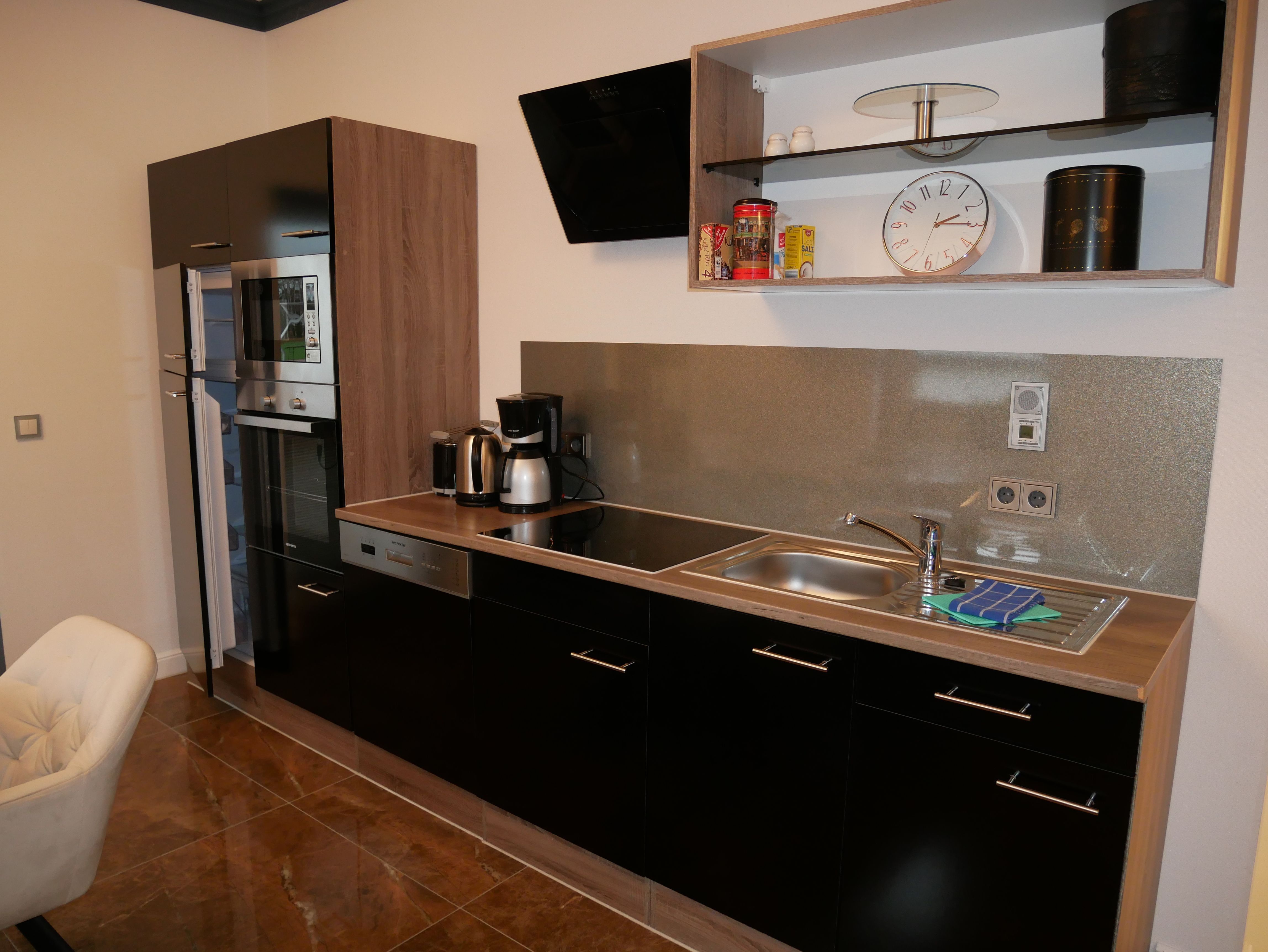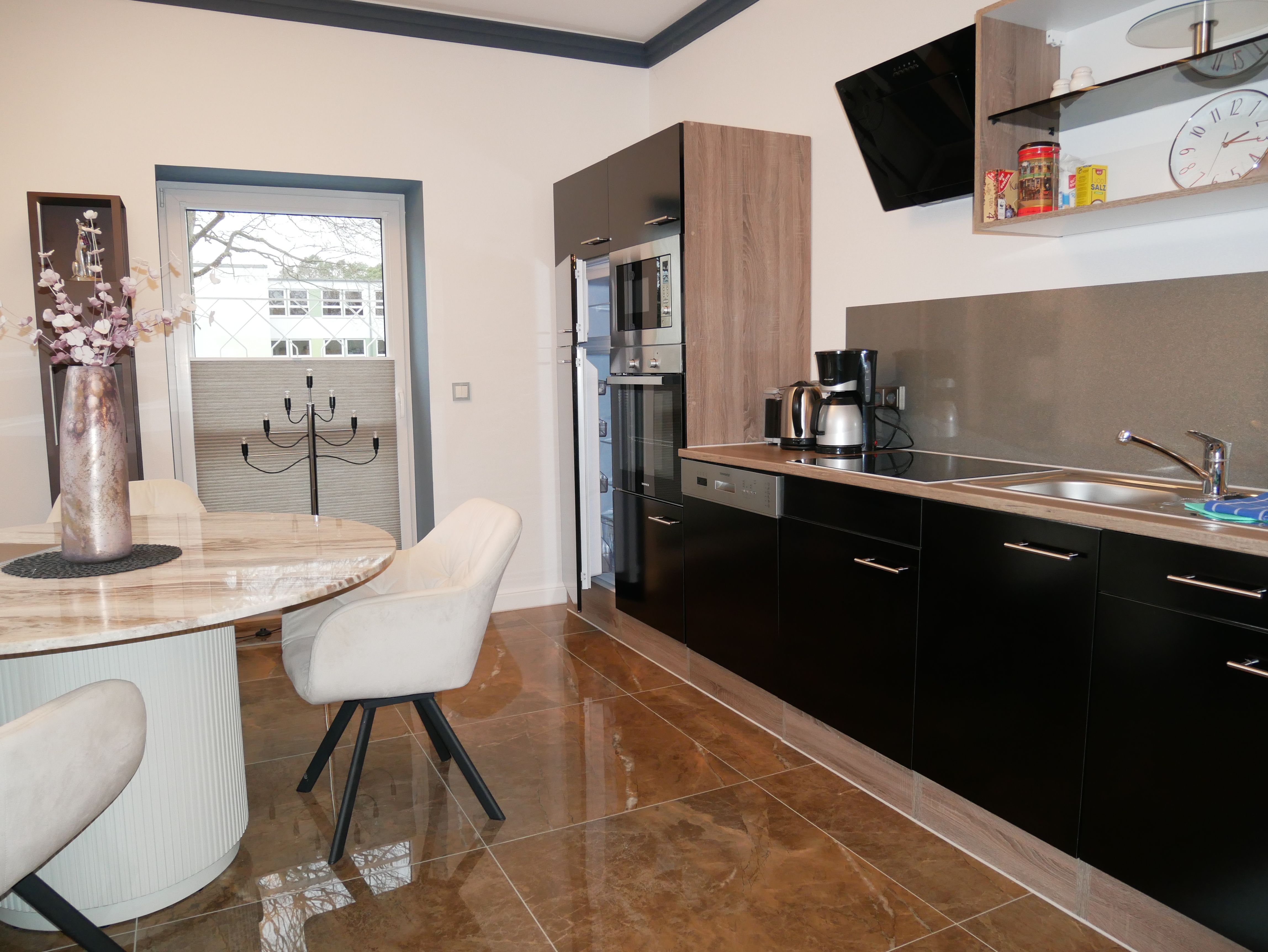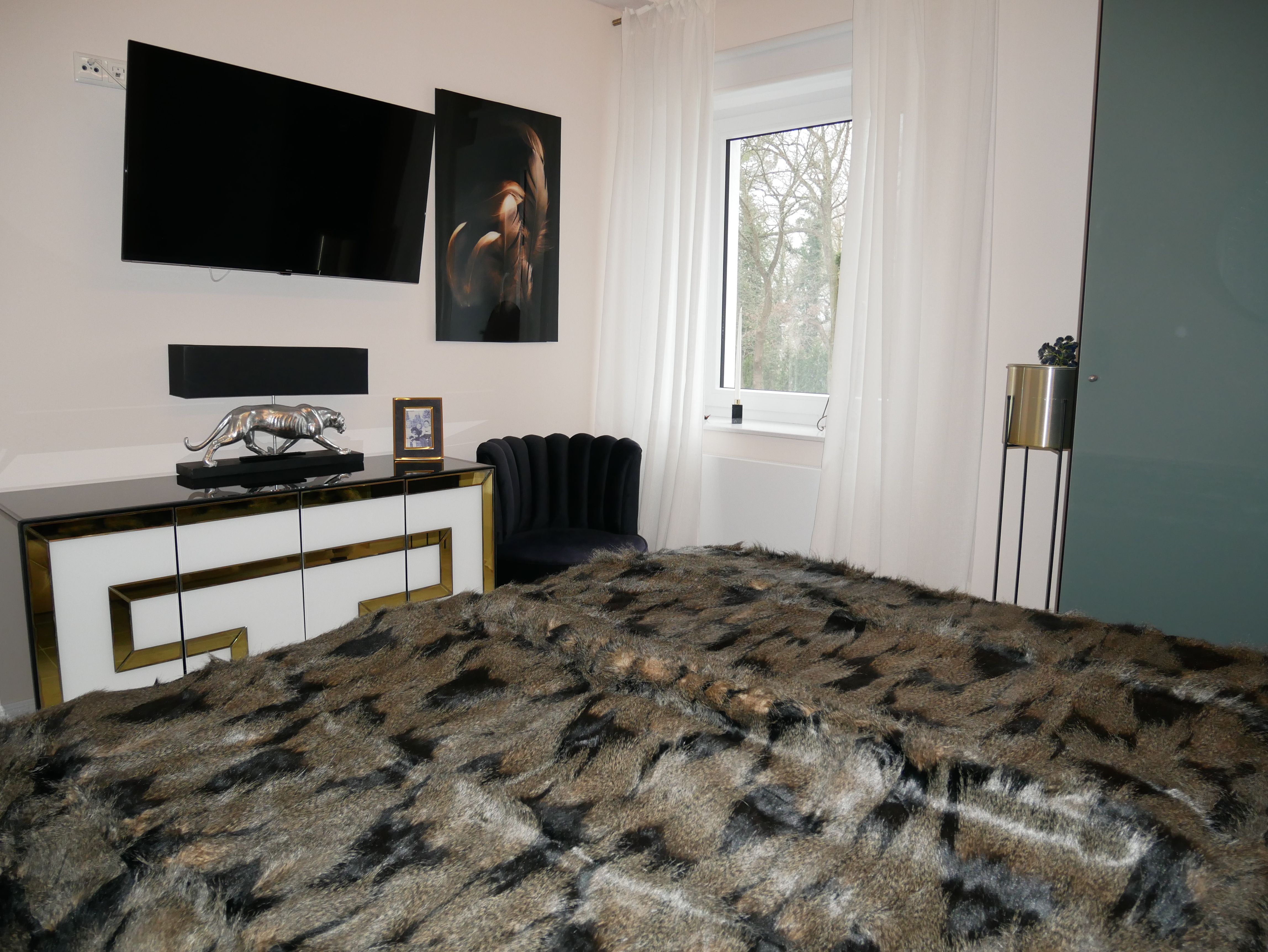 Die exquisite Nichtraucher Ferienwohnung ist 95 qm groß und verfügt über 2 Zimmer. Der großzügige offene Wohnbereich mit offener Küche verfügt über einen Essbereich und gemütlicher Sitzecke. Im Wohnbereich befindet sich neben den italienischen Designermöbeln ein TV und ein Elektrokamin. Das französische Bett im Schlafzimmer hat eine Breite von 1,60 m und besitz einen zweiten Fernseher.