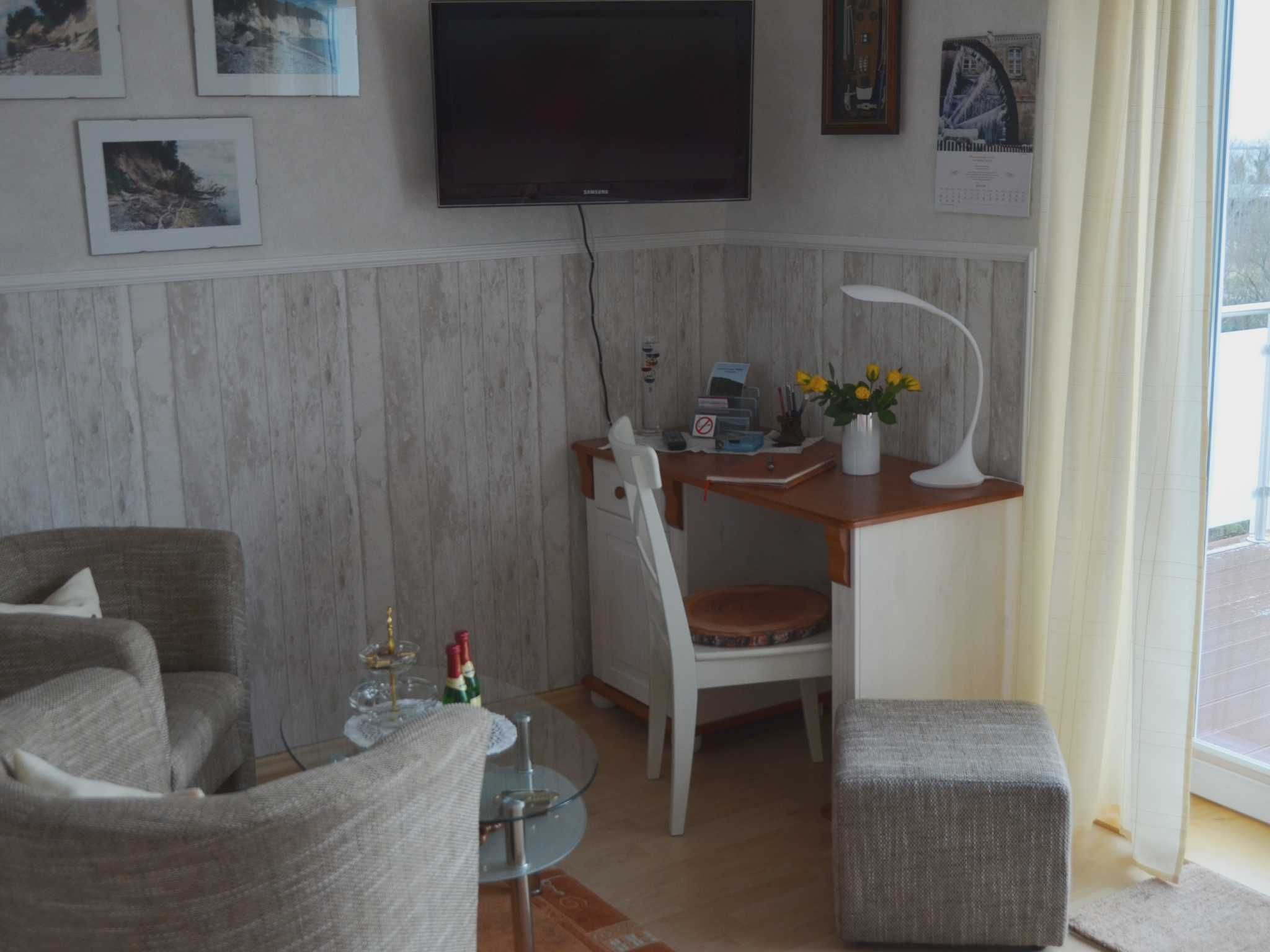Die Ferienwohnung befindet sich im Obergeschoß eines Reihenhauses. Guter Ausgangspunkt für Wanderungen und Radtouren im Nationalpark Jasmund. Einkaufsmöglichkeiten sind in der Nähe. Entfernung zum Sandstrand 6 km, zum Fährhafen 4 km, zum Bahnhof / RPNV 1 km. Sassnitz ist ein „Staatlich anerkannter Erholungsort und daher kurabgabepflichtig.