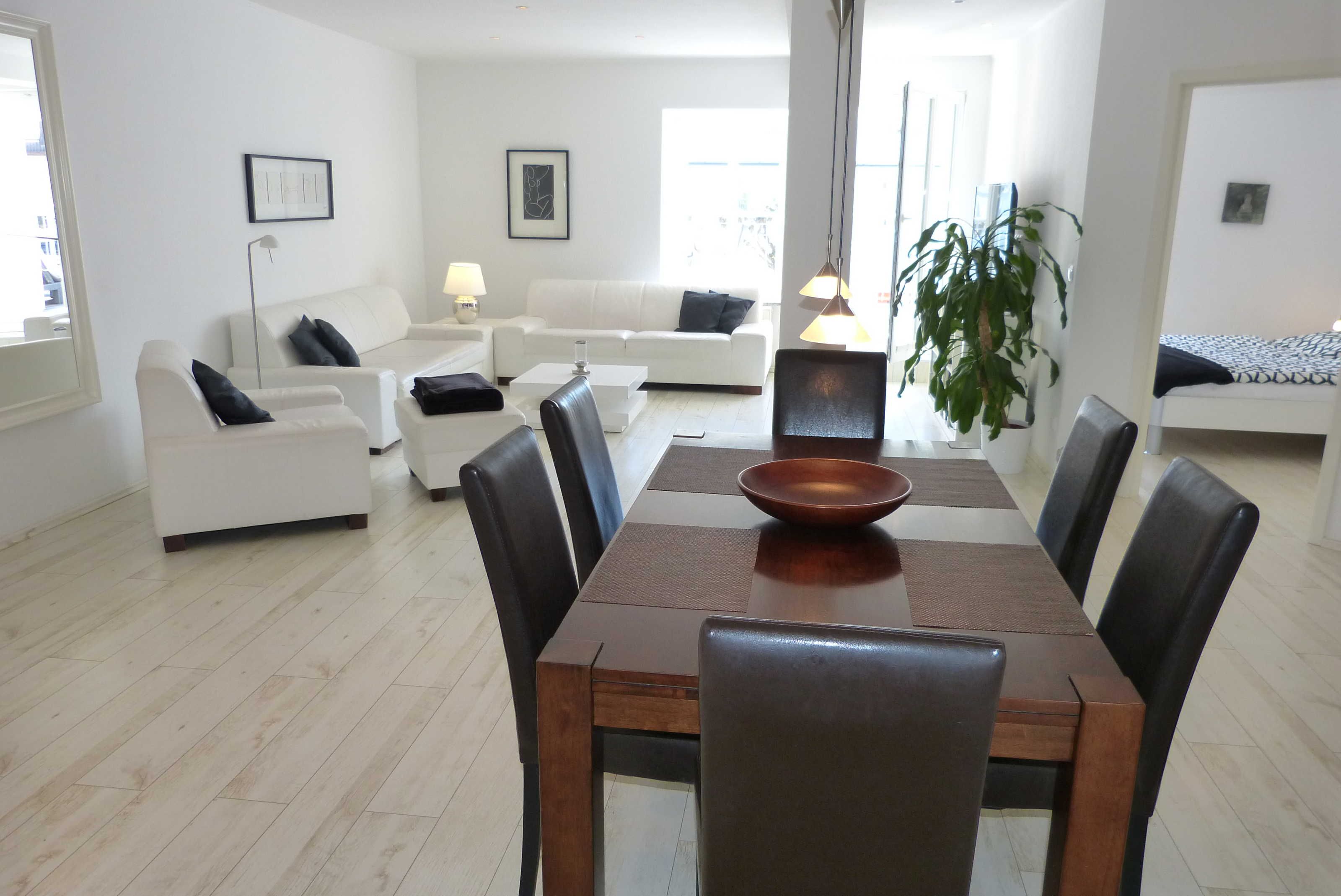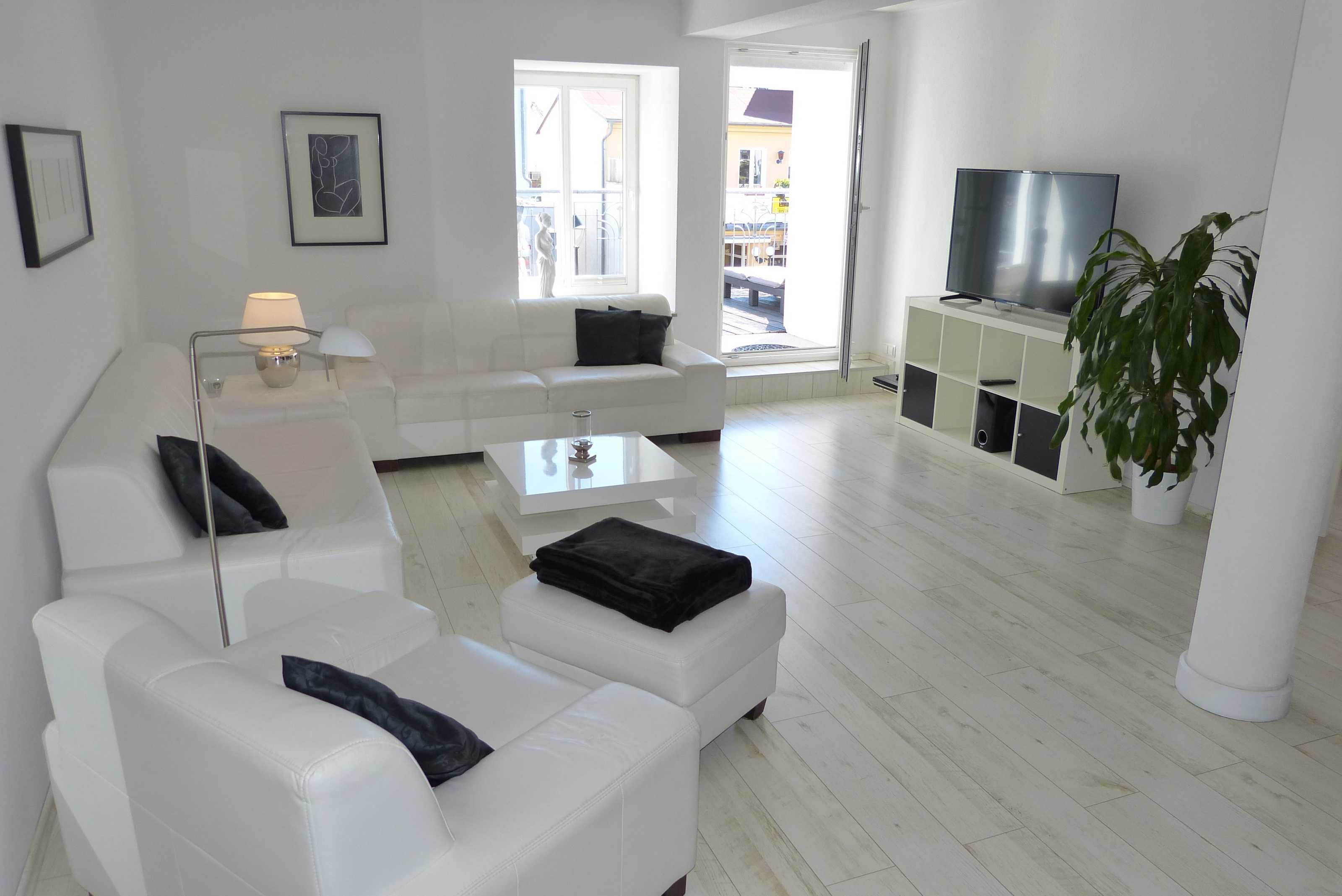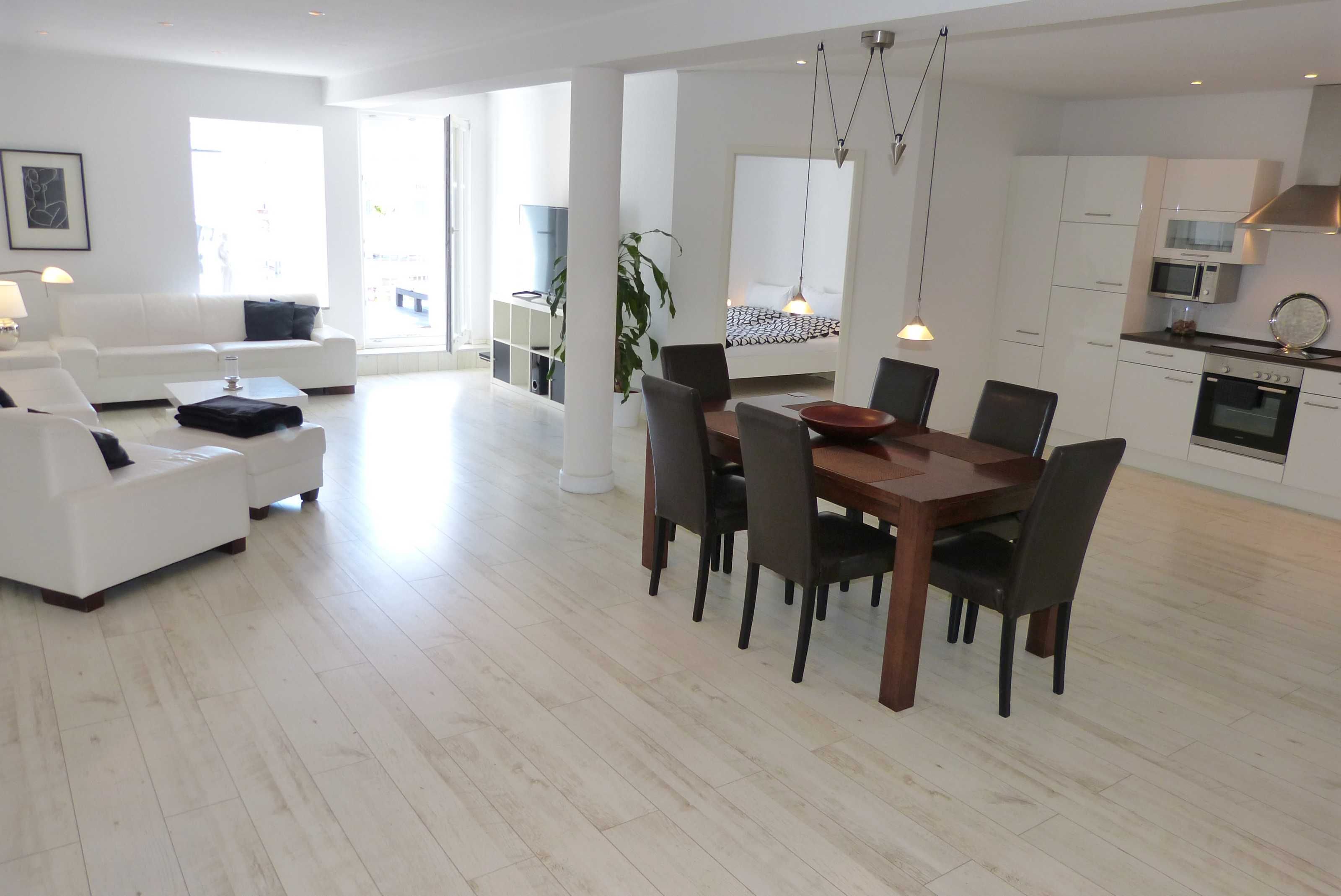 Diese Residenz ist edel gestaltet und eingerichtet. Das Mobiliar ist hochwertig und exklusiv. Das großzügige Bad besitzt eine Badewanne und eine Dusche. Zudem gibt es eine separate Toilette. Ein Schlafzimmer ist schallgedämpft, die Küche wurde mit modernsten Geräten ausgestattet und von der Terrasse haben Sie einen wunderbaren Blick auf den Kirchenplatz und die Mühlenstraße.