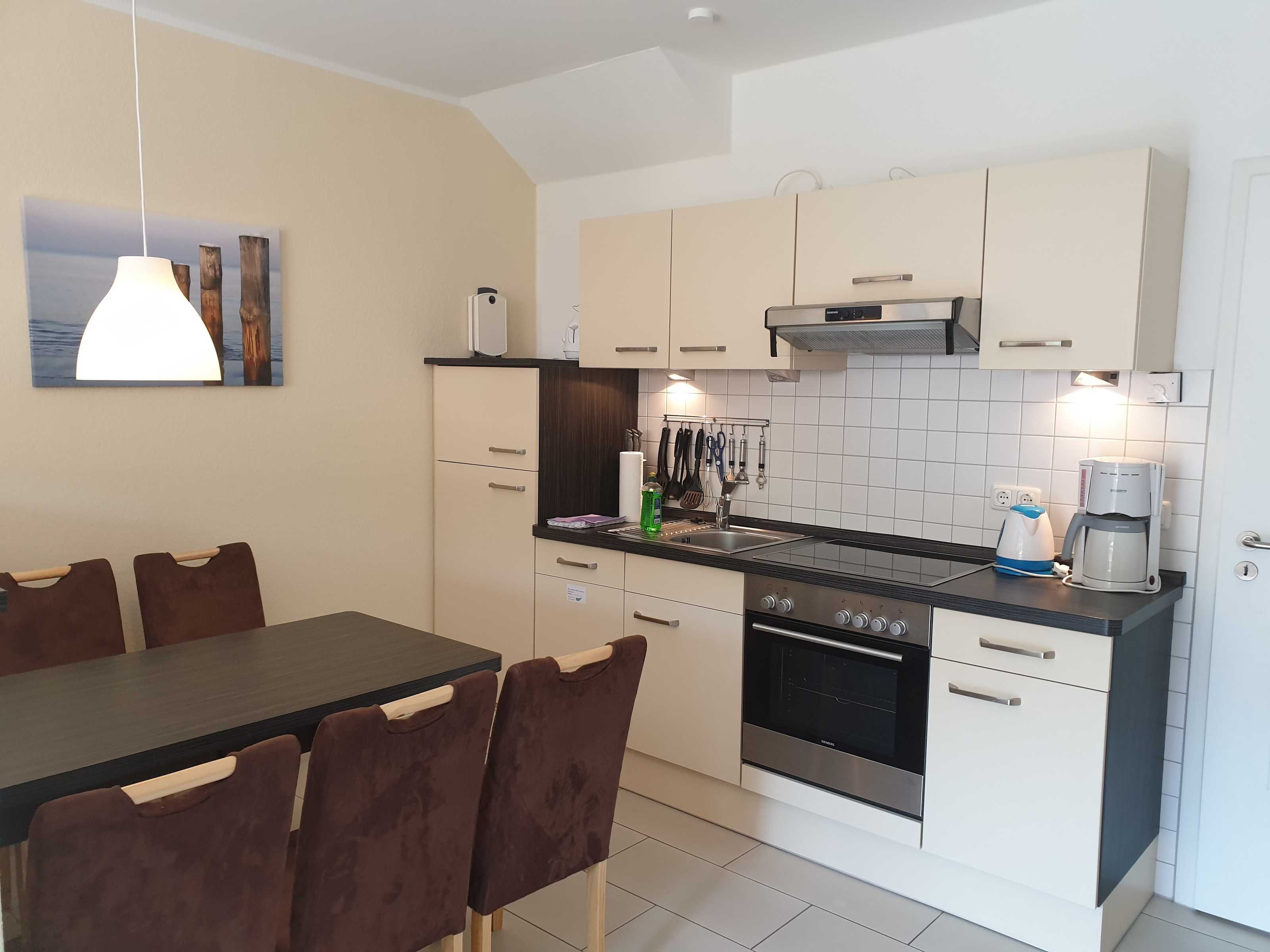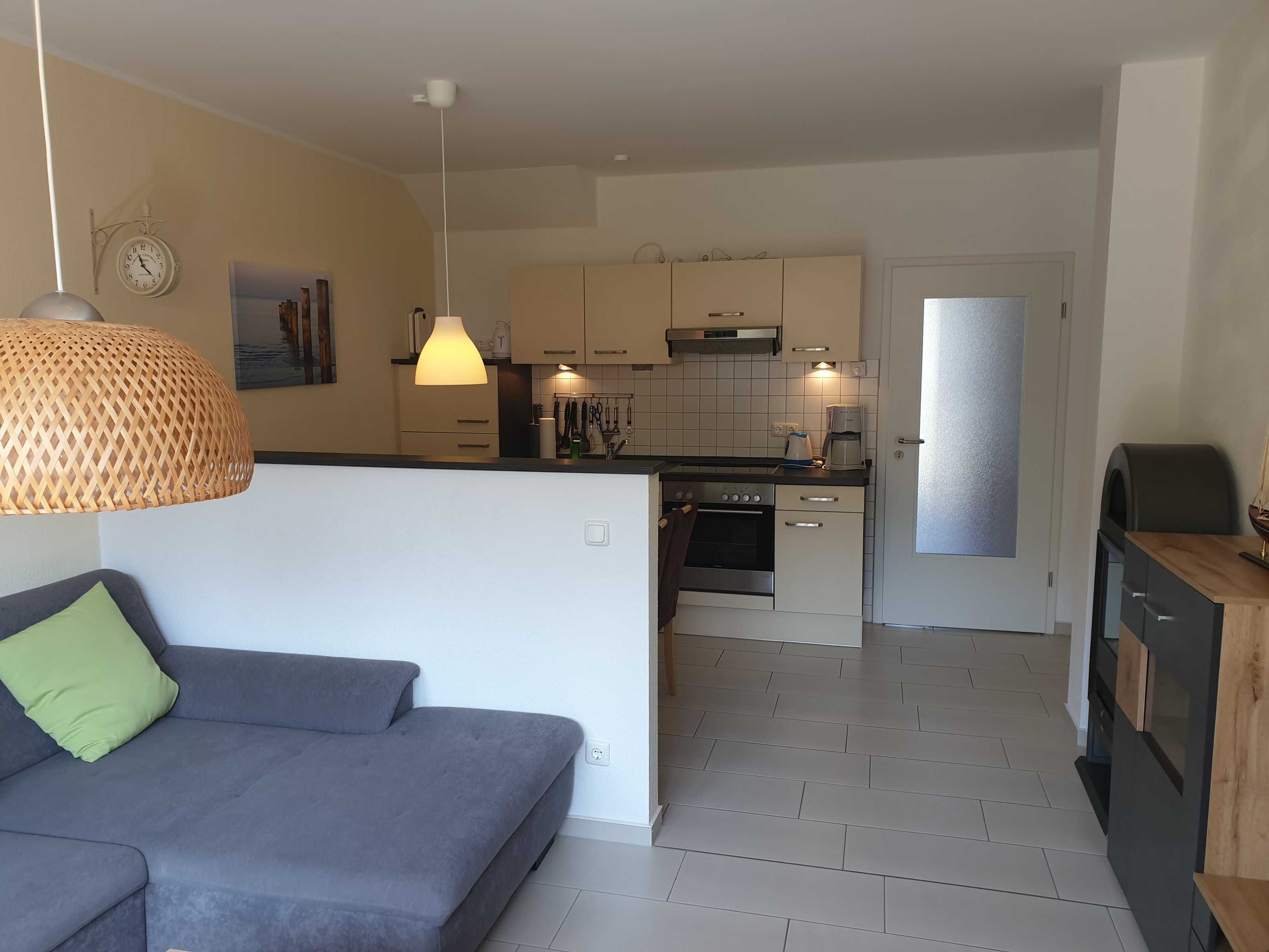 Die Ferienwohnung erstreckt sich über 2 Etagen, ist sehr geräumig und komfortabel eingerichtet. Im 1.OG befindet sich das Wohnzimmer mit einem schönen Balkon, ein Bad mit Dusche,WC und Fön. Die offene Einbauküche ist mit einem Ceranherd, Backofen, Kühlschrank, Tiefkühlfach, Gläser, Besteck und Geschirr ausgestattet. Die obere Etage mit zwei Schlafzimmern und einem zweiten Bad mit Dusche und WC, bietet einen weiteren Balkon, auf dem man gemütlich den Tag ausklingen lassen kann. In der kalten Jahreszeit sorgt eine Fussbodenheizung für behagliche Wärme. Die Ferienwohnung liegt ruhig am Ende der Straße in der im Jahr 2011 erbauten Ferienwohnanlage Ostseepark Zempin.