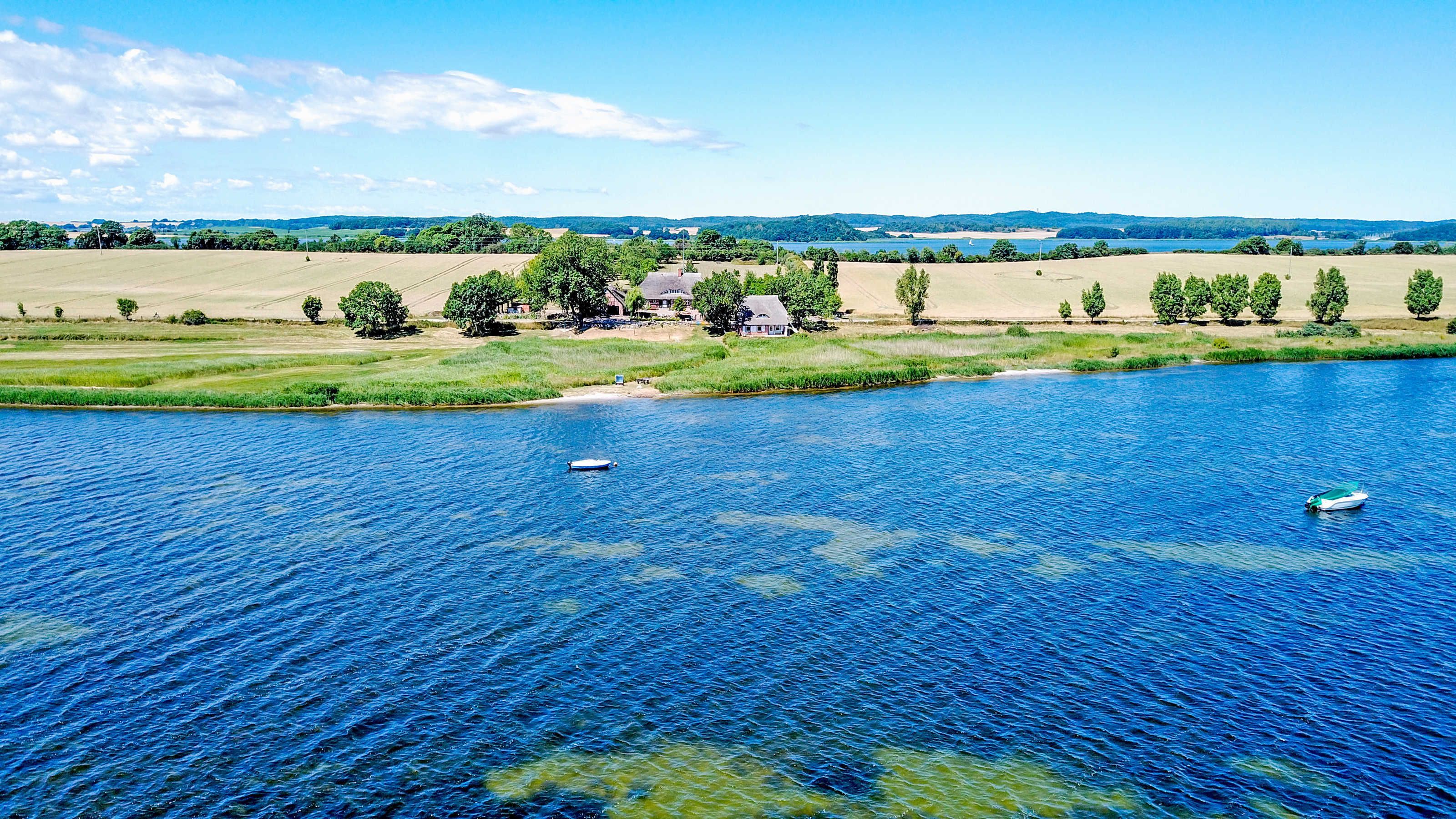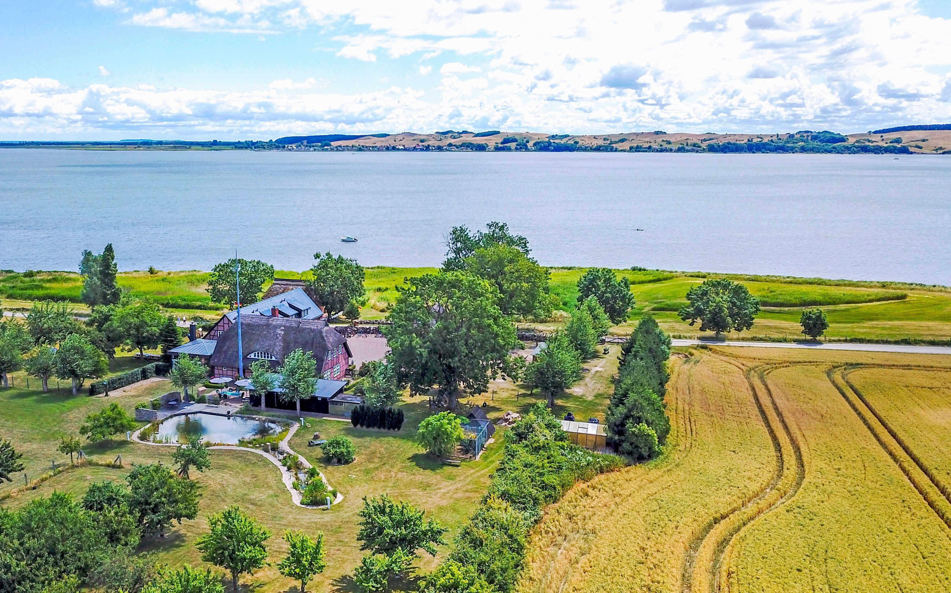 Der stilvolle Dreiseitenhof bietet einen herrlichen Blick über den Rügischen Bodden sowie auf die gegenüberliegende Küste. Hier kann man wandern, herrlich lange Radtouren unternehmen, in den fischreichen Gewässern angeln, am eigenen Strand baden, im Garten spielen oder einfach nur die Seele baumeln lassen. In der Saison begrüßen wir alle Besucher des Reddevitzer Hövts auch gern in unserem kleinen Cafe Boddenrast mit selbst gebackenem Kuchen und Kaffespezialitäten.
