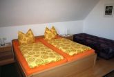 Die Fewo OG (80m²) verfügt über ein Wohnzimmer mit Küchenzeile, Esstisch, Sitzgruppe (TV), zwei separaten Schlafzimmern eines mit einem Doppelbett und einem Einzelbett und eines mit Doppelbett, sowie dem Duschbad und einem Balkon mit einer Treppe in den Garten.