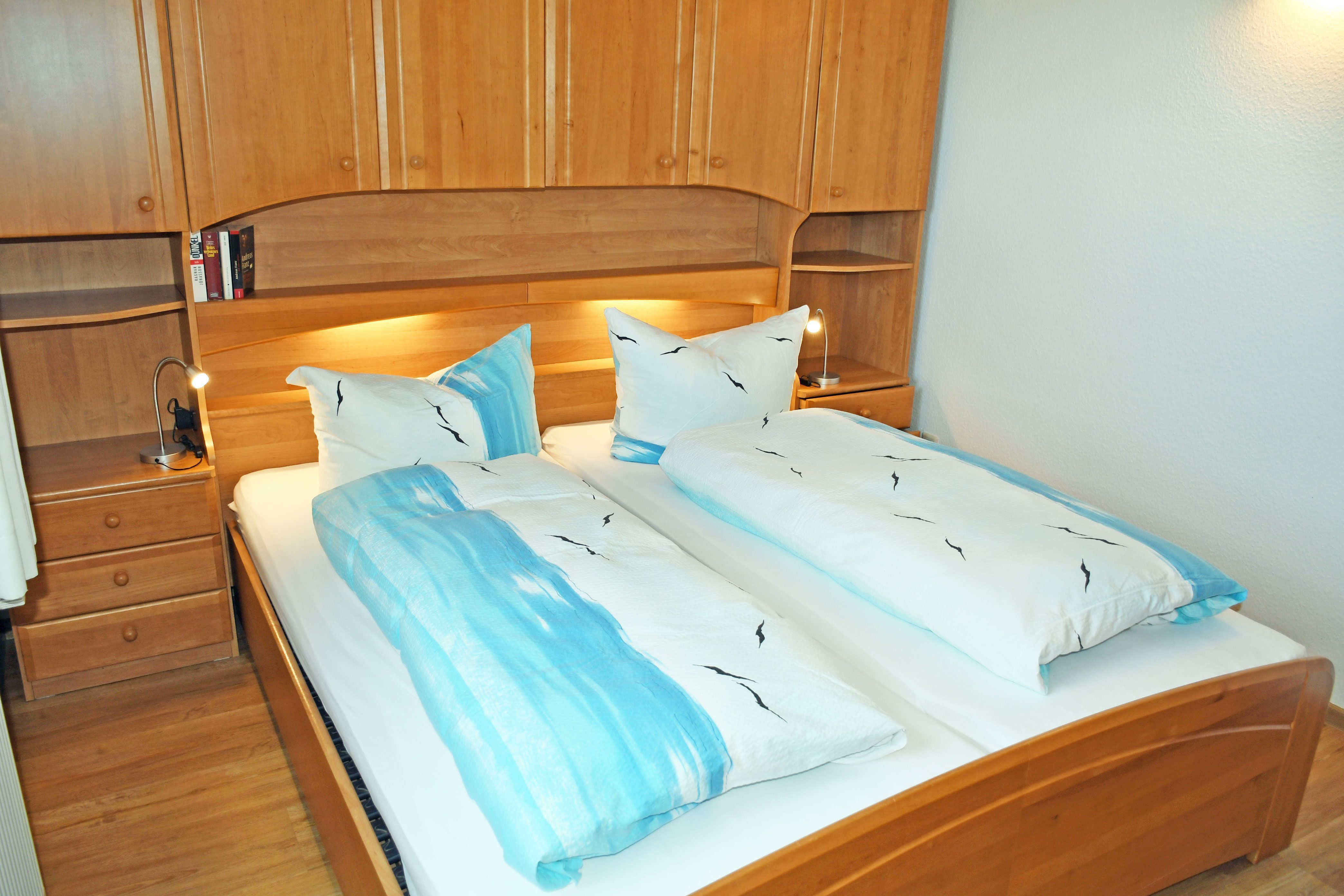 Die moderne Küche ist mit einem Herd, Backofen, Geschirrspülmaschine, Wasserkocher, Kaffeemaschine, Mikrowelle, Toaster und Kühlschrank sowie Esstisch und Stühle komplett ausgestattet. Im Schlafzimmer befindet sich ein bequemes Doppelbett mit Nachttischen und Leselampen. Bei Ihrer Anreise liegen frische Handtücher bereit und die Betten sind selbstverständlich bereits mit Bettwäsche bezogen. Das große Bad ist mit Dusche, Badewanne, WC und Waschtisch ausgestattet.