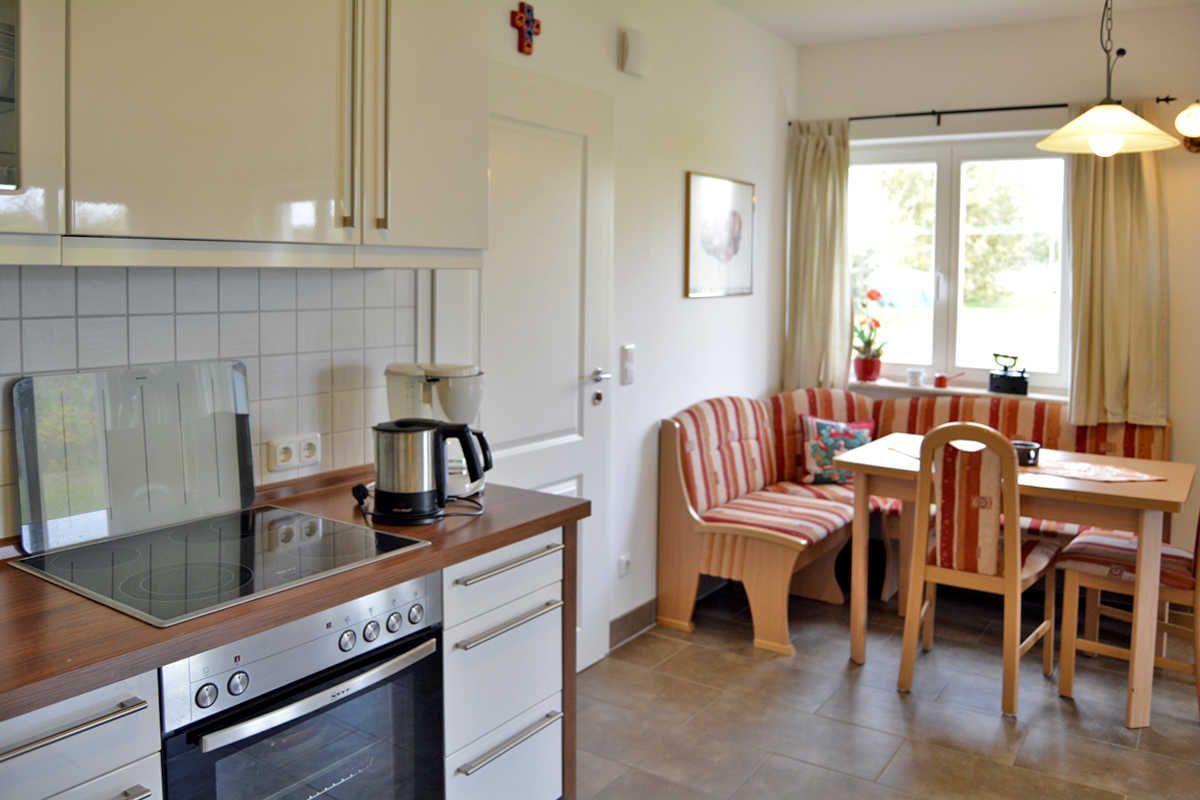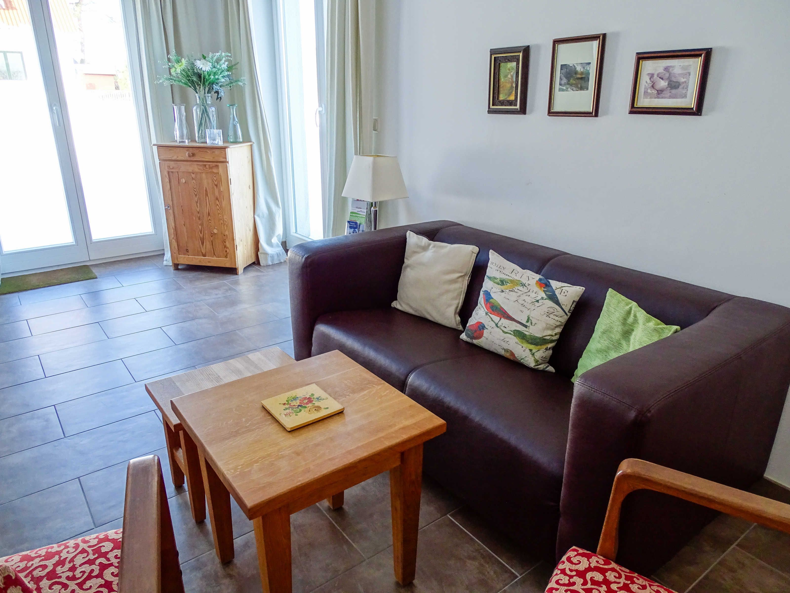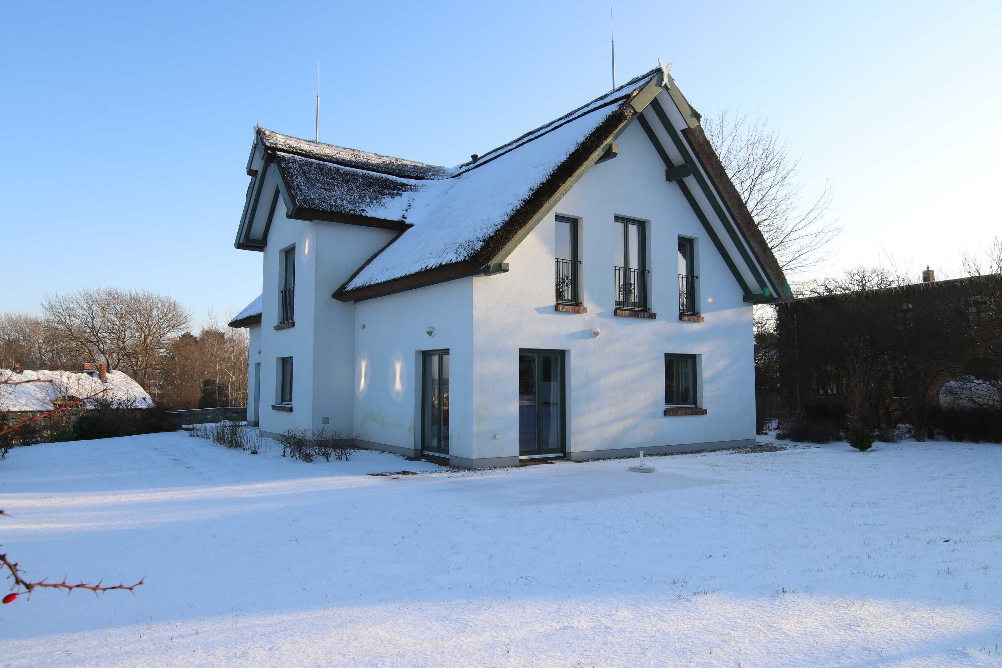 Die reetgedeckte bildschöne Doppelhaushälfte mit eigenem Eingang erstreckt sich über 2 Etagen und ist ca. 80 m² groß. Die untere Etage hat eine große Wohnküche und ein Bad mit Dusche und WC. Die obere Etage hat ein Schlafzimmer mit Doppelbett, ein weiteres Schlafzimmer mit zwei Einzelbetten sowie ein Bad mit Dusche und WC. Die hochwertig und komfortabel eingerichtete Haushäfte ist dem Garten zugewandt. Von der Terrasse haben Sie Blick auf den Garten.