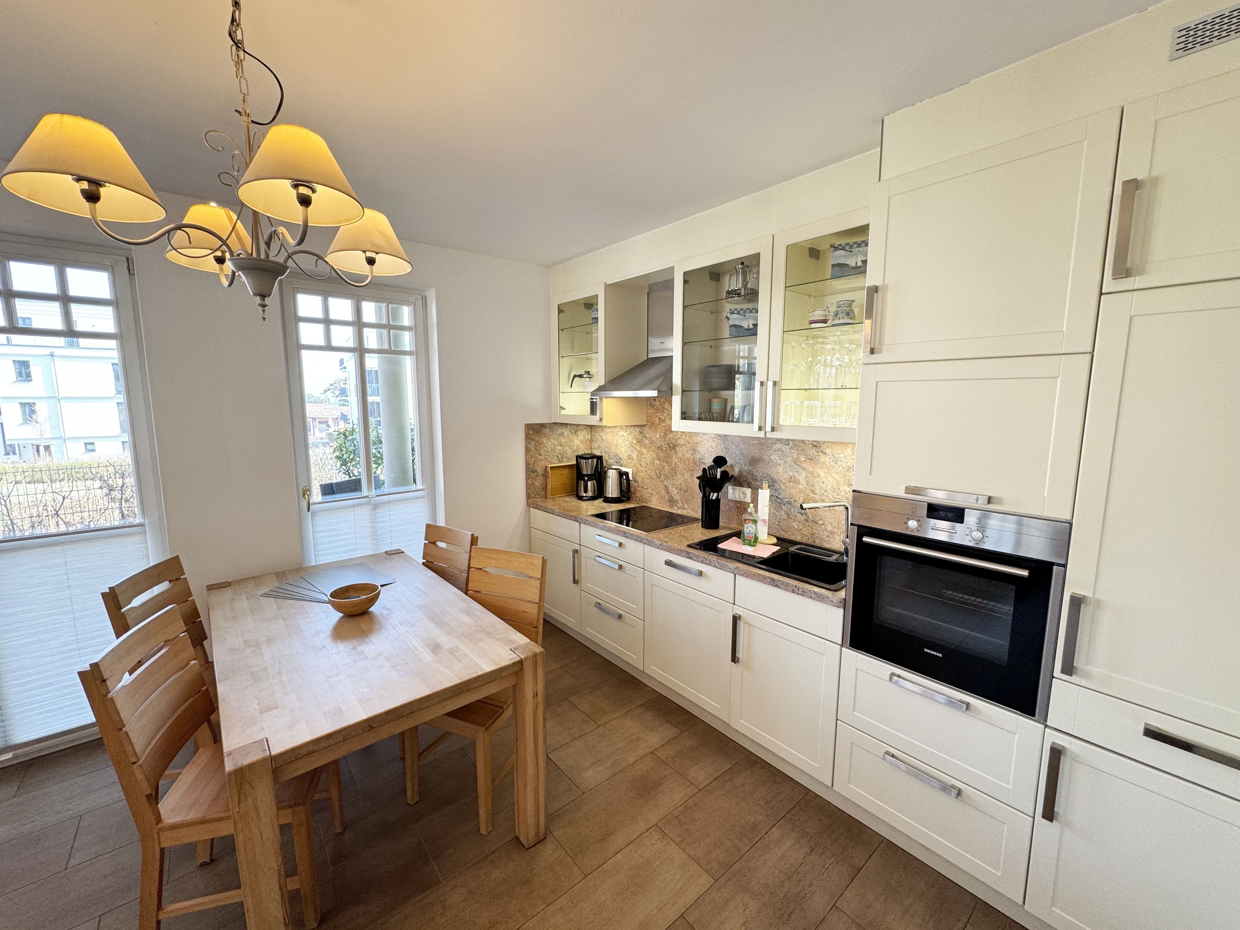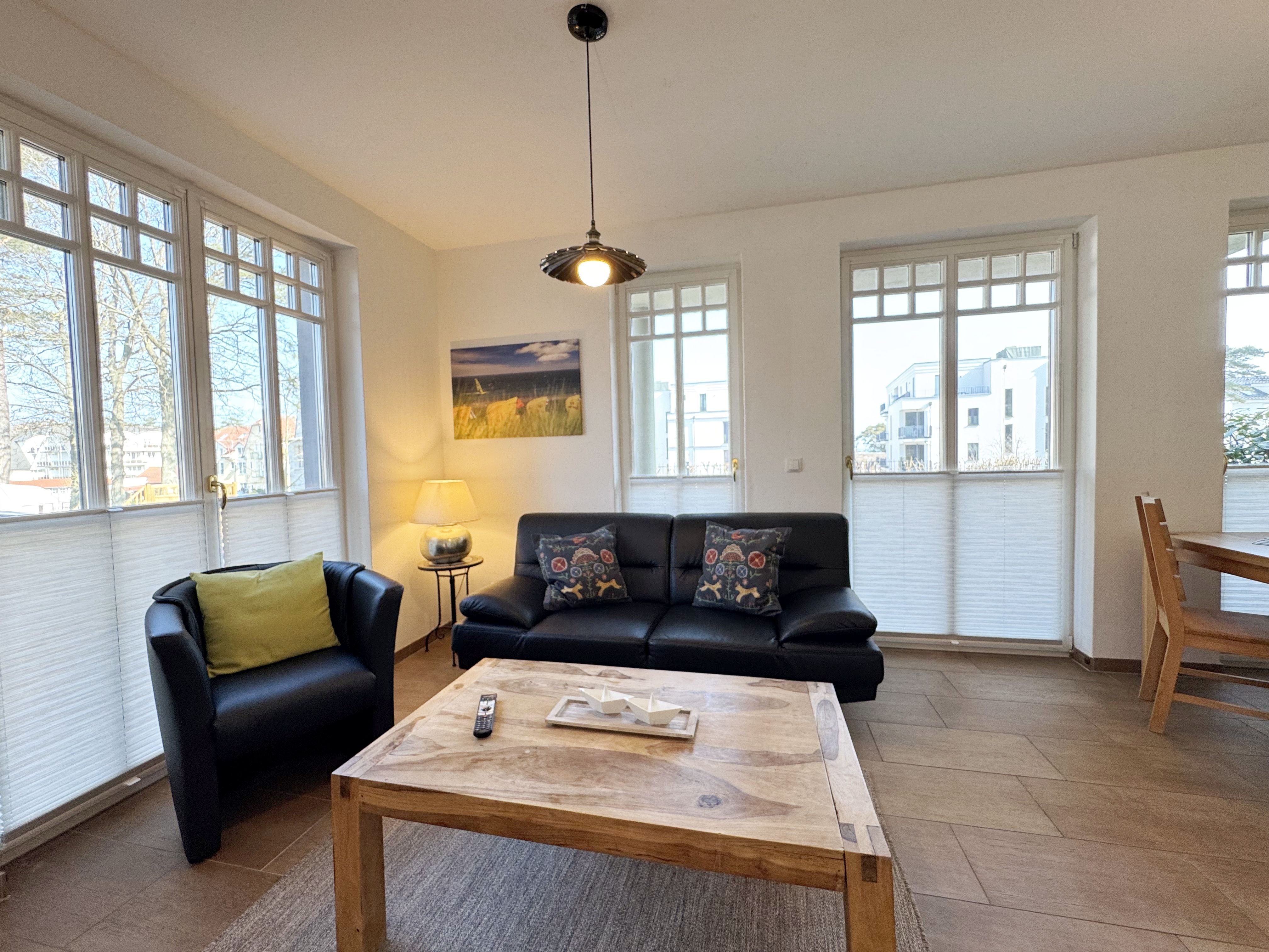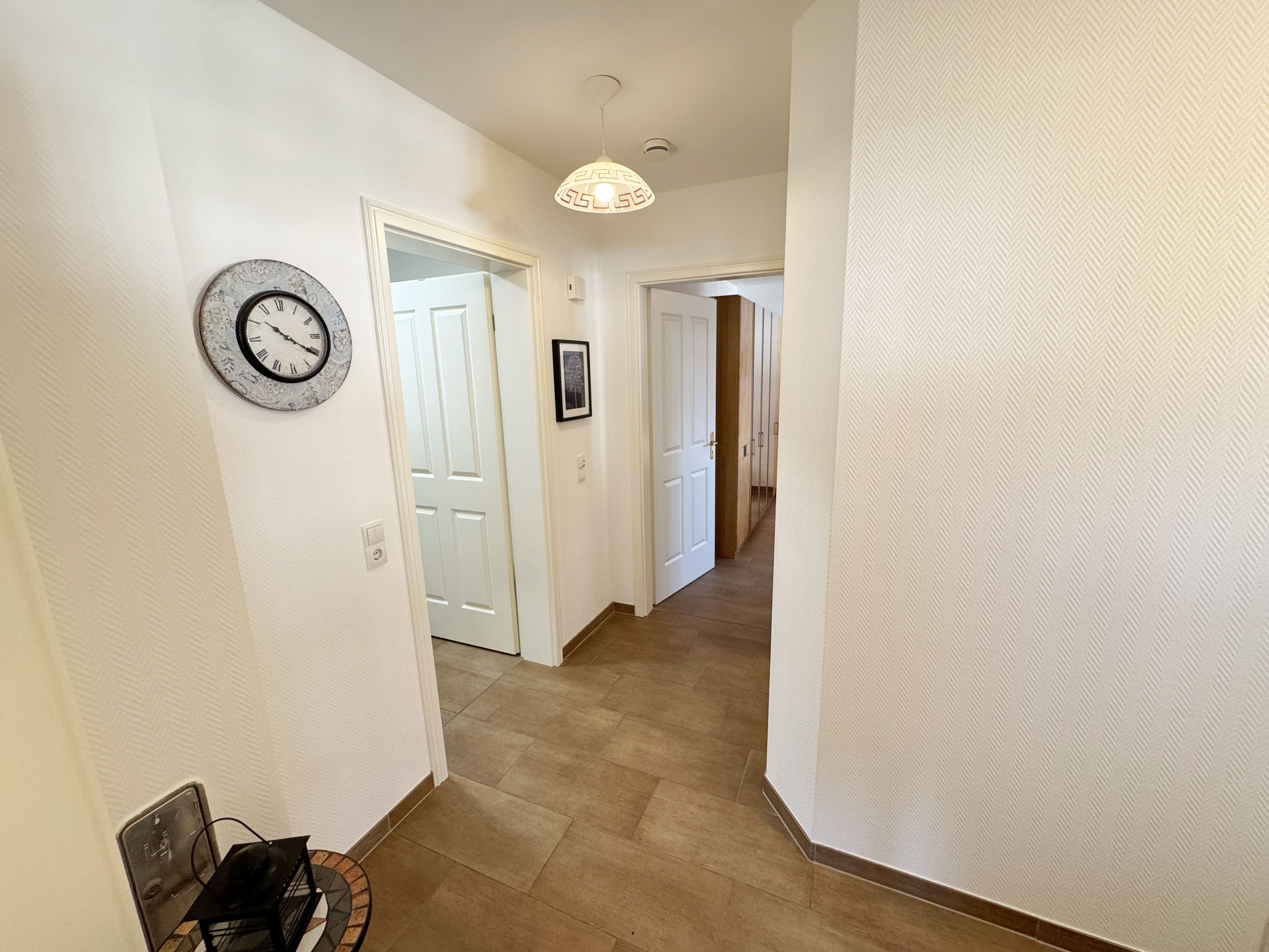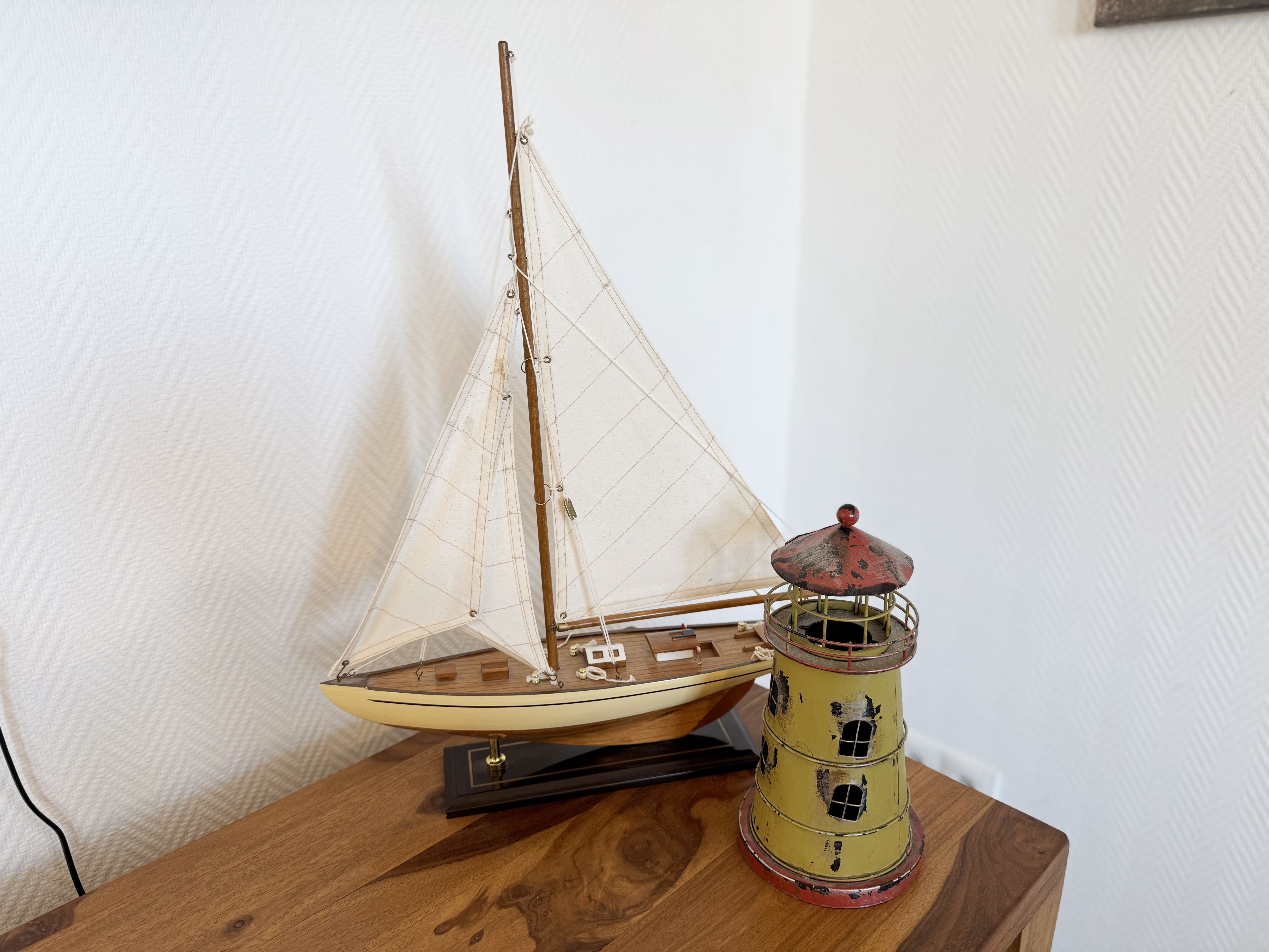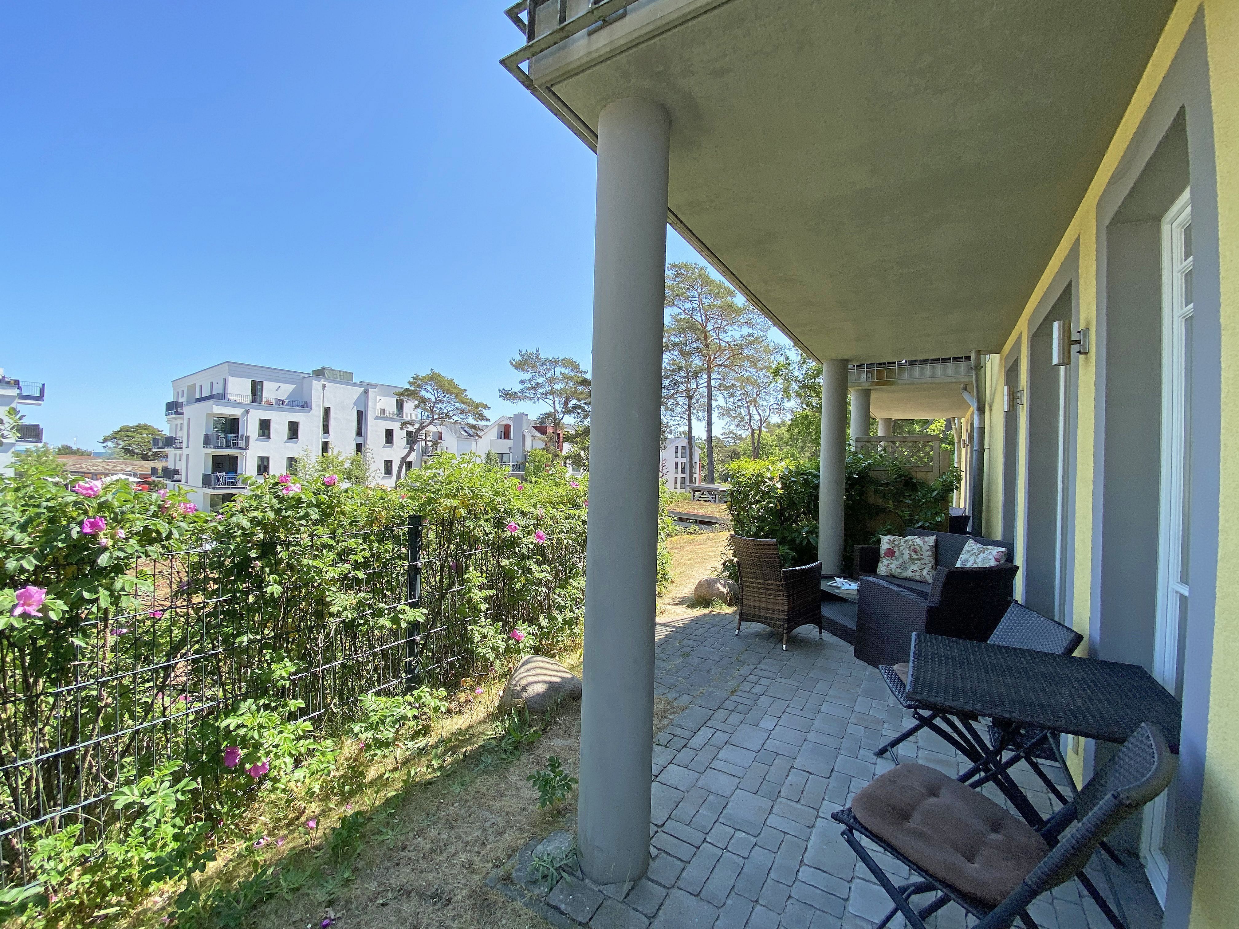 Die modern eingerichtete Nichtraucherferienwohnung 01 im Haus Strandkiefer befindet sich im Erdgeschoss. Sie bietet Ihnen mit ca. 56 m² ausreichend Platz für 2 bis 4 Personen + 1 Kleinkind bis 3 Jahre im Kinderreisebett. Vom Flur mit Garderobe gelangen sie in alle Räumlichkeiten. Der helle Wohn-/Essbereich besticht mit seinen bodentiefen Holzfenstern. Der Wohnbereich wurde mit einer Couch, einem Couchtisch, einem Sessel, einem TV-Board mit einem Smart-TV, einem WLAN-Zugang und einem Blu-Ray-Player ausgestattet. Abgerundet wird der Raum durch einen Kamin, der Ihnen gerade in der kälteren Jahreszeit, zusätzlich zur Fußbodenheizung, eine wohlige Wärme beschert. Die angrenzende Küchenzeile lässt keine Wünsche offen, so dass Sie mit einem Geschirrspüler, einem Backofen (selbstreinigend), einem Kühlschrank mit Gefrierfach, einem Cerankochfeld, einer Mikrowelle, einer Kaffeemaschine, einem Toaster, einem Wasserkocher, einem Mixer sowie diversen Küchenutensilien jede Mahlzeit zubereiten können. Zusätzlich finden Sie hier auch eine Waschmaschine. Durch den Essplatz am Fenster wird der Bereich komplettiert. Ihre bestuhlte Terrasse (Ost) erreichen Sie vom Wohnbereich, von wo Sie auch einen ganz kleinen Blick auf das Meer erhaschen können. Das große Schlafzimmer verfügt über ein Doppelbett (1,80m x 2,00m), verstellbare Lattenroste, Nachttischablagen mit Beleuchtung, einem großen Kleiderschrank, Verdunklungsplissees sowie einem Flachbild-TV. Das kleine Schlafzimmer verfügt über ein Tandem Bett (0,90m x 2,00m) welches zusätzlich über eine Ausziehfunktion für die 4. Person verfügt sowie einer Kommode. Das innenliegende Badezimmer ist mit einer Dusche (flacher Einstieg), einem WC, einem Waschtisch, einem Kosmetikspiegel, einem Fön und einer Badewanne ausgestattet. Ein Wäscheständer sowie Reinigungsutensilien runden die Ausstattung ab. Ihre mitgebrachten oder geliehenen Fahrräder können Sie im kleinen abschließbaren Fahrradschuppen unterbringen. Dieser befindet sich direkt an Ihrem Carport (Nr.01) welches auch gleichzeitig Ihr Stellplatz für Ihren PKW ist. 2 Haustiere sind gegen eine Gebühr gern gesehene Gäste. Die Erstausstattung eines Wäschepaketes (komplette Bettwäsche, 1 Duschhandtuch, 1 kleines Handtuch) können Sie bis 14 Tage vor Anreise gegen einen Aufpreis dazu buchen oder durch eigene ergänzen. Ab 2 gebuchten Paketen erhalten Sie einmalig 1 Geschirrhandtuch und 1 Duschvorleger hinzu.