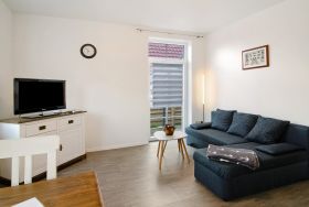 Die Ferienwohnung verfügt über ein gemütliches Wohnzimmer, von dem man in das angrenzende Schlafzimmer mit Queensize Bett gelangt. Eine Küchenzeile sowie ein eigenes Badezimmer mit Dusche stehen zur alleinigen Nutzung zur Verfügung. Auf der Terrasse befindet sich ein Tisch mit 2 Sitzgelegenheiten.