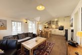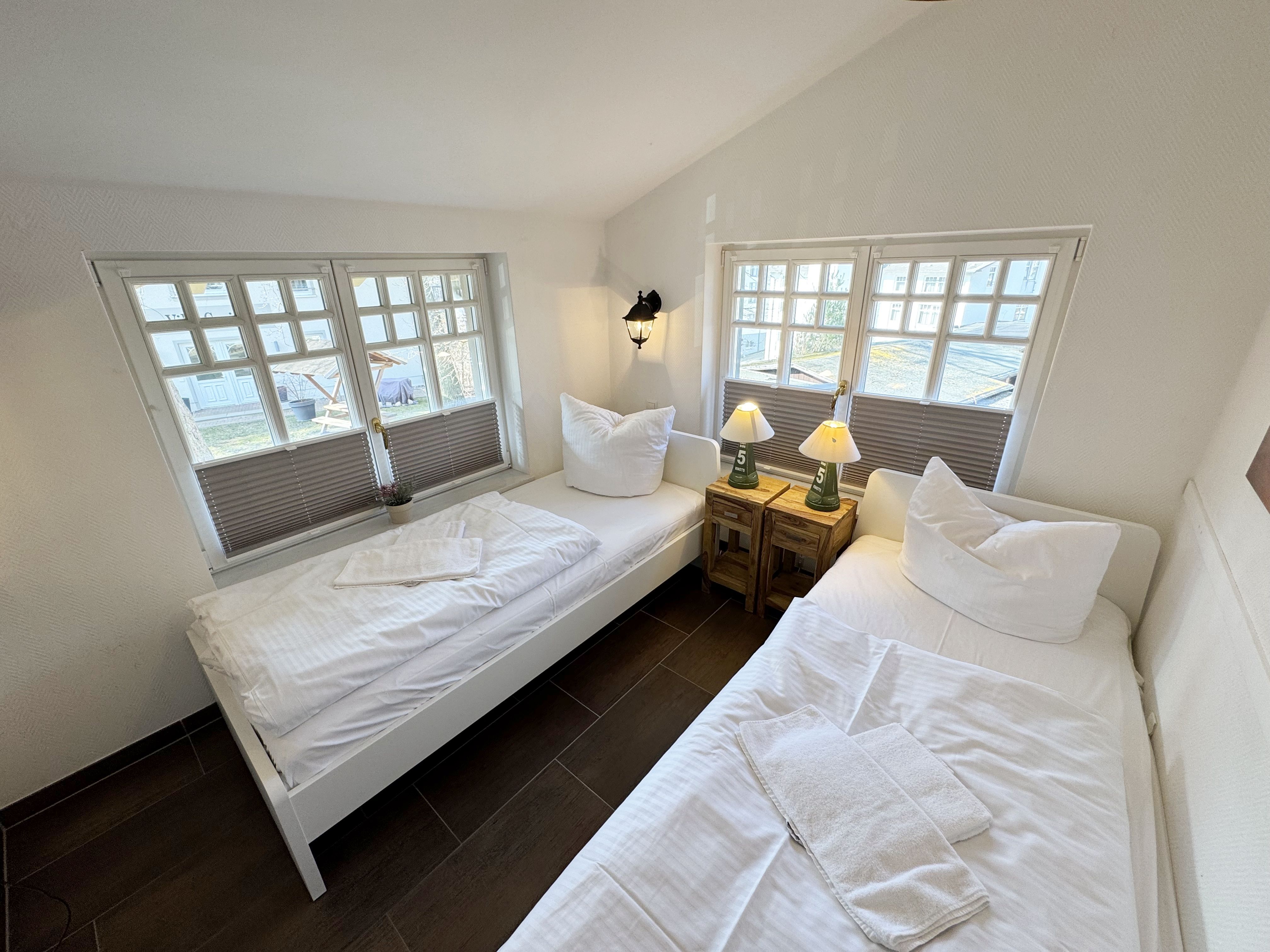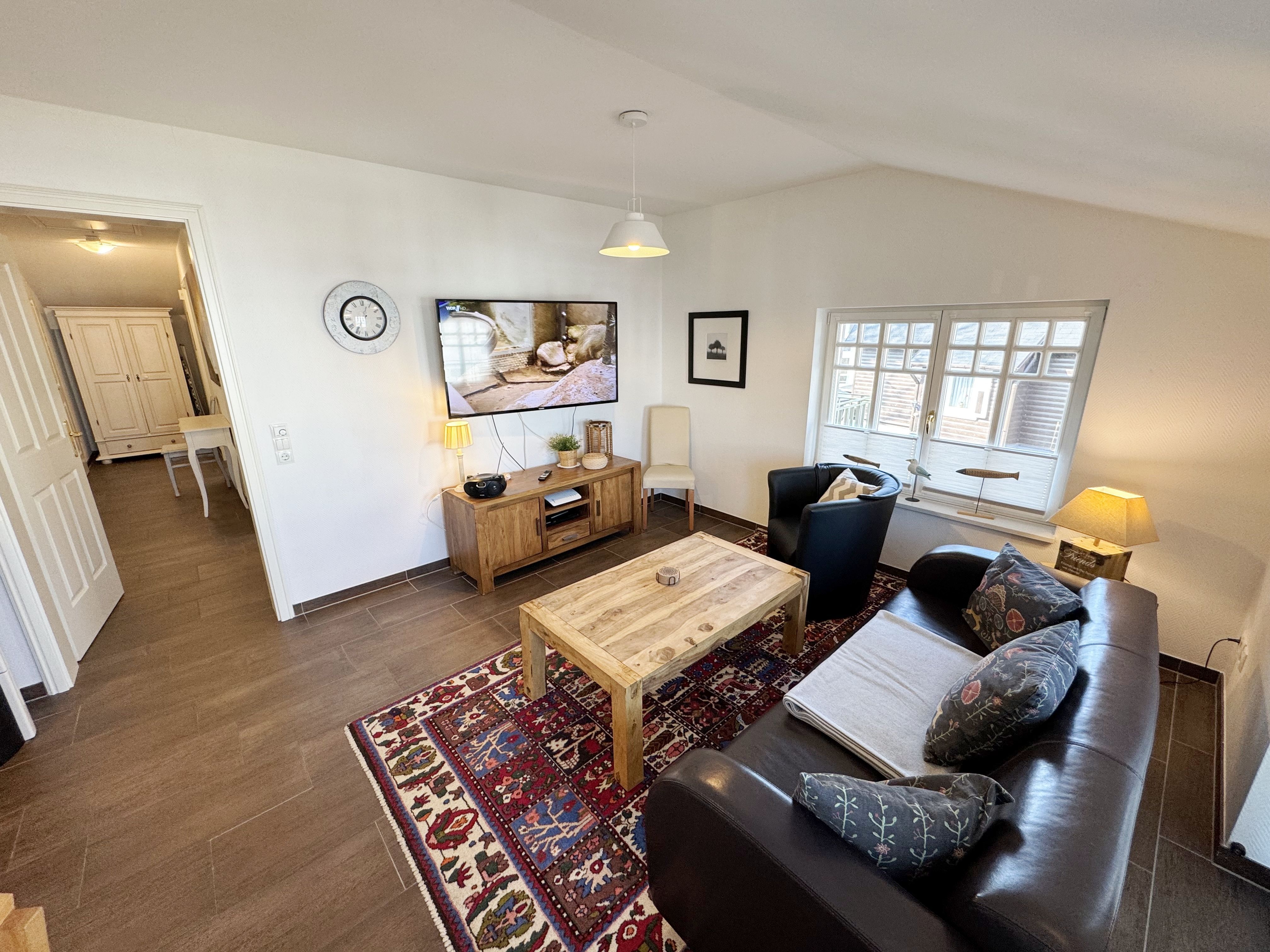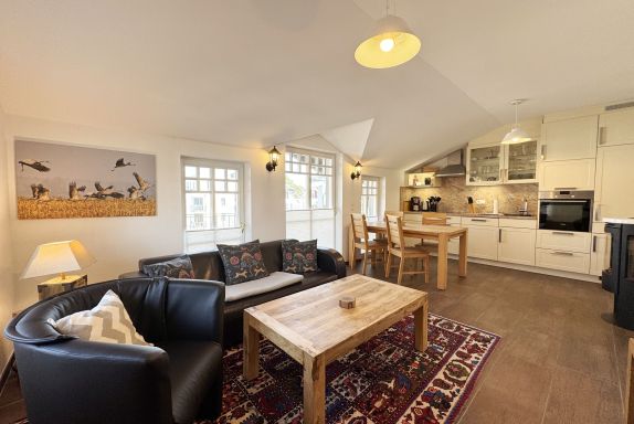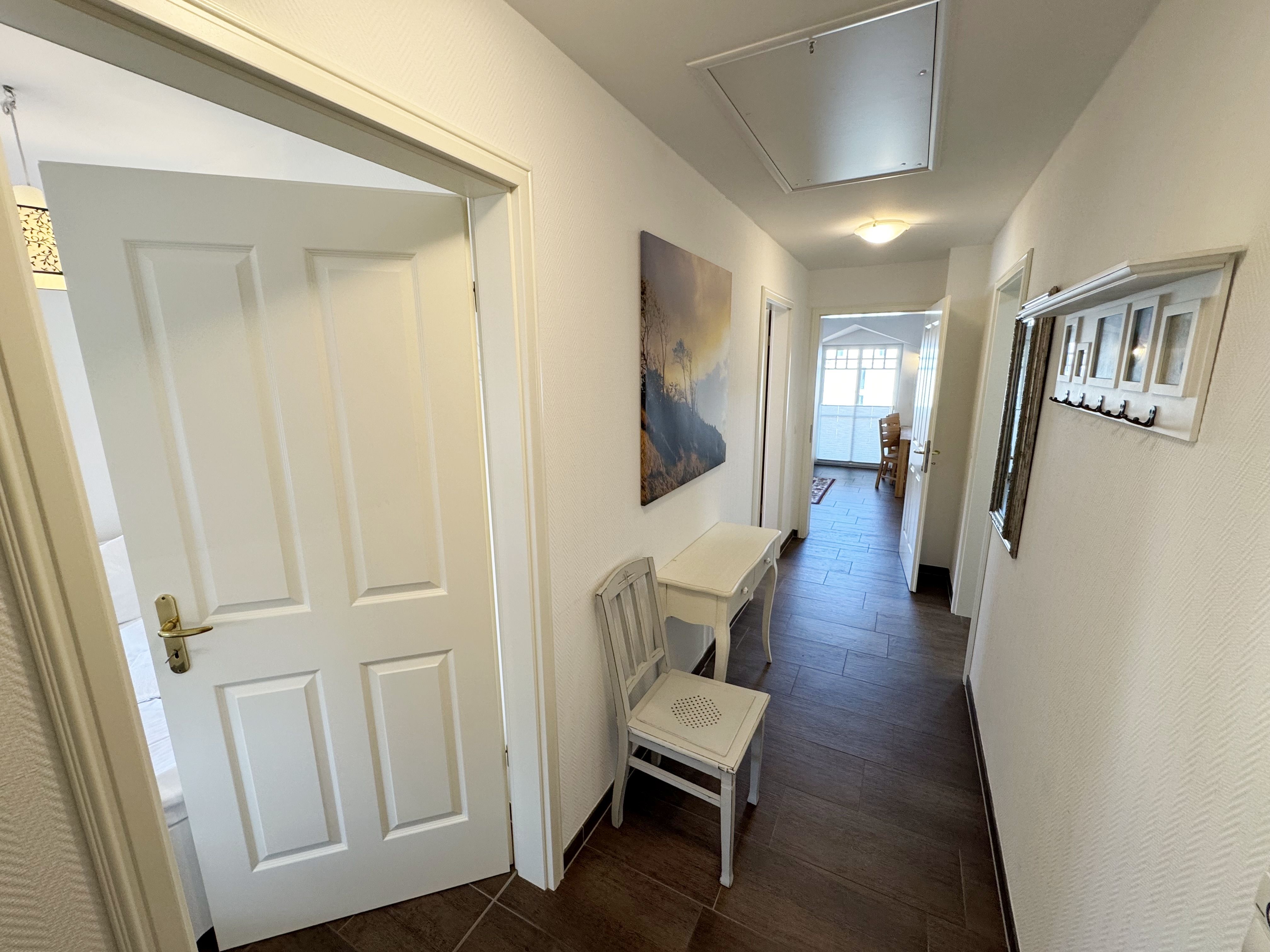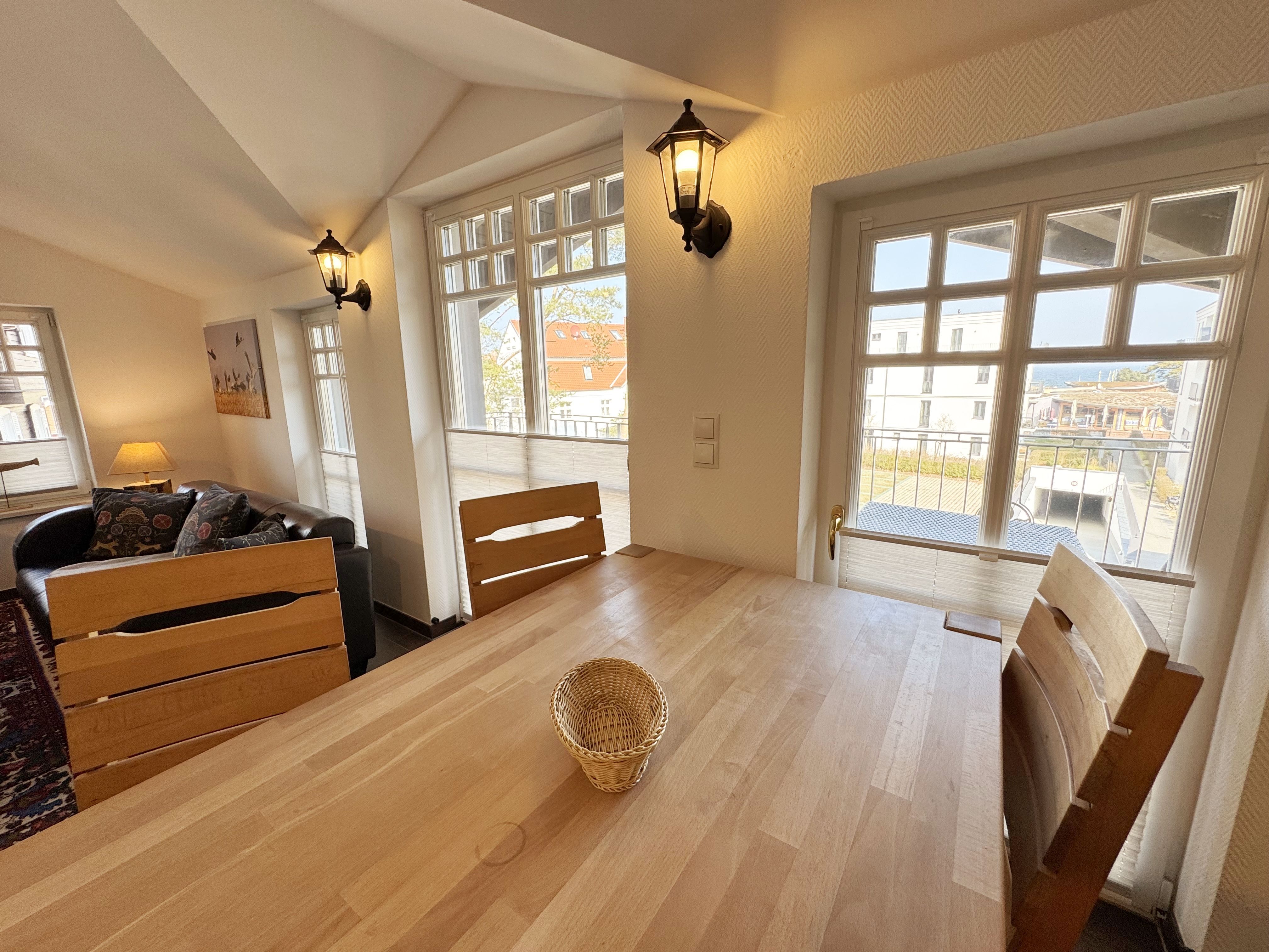 Die modern eingerichtete Nichtraucherferienwohnung 03 im Haus Strandkiefer befindet sich in der 1. Etage. Sie bietet Ihnen mit ca. 56 m² ausreichend Platz für 2 bis 4 Personen + 1 Kleinkind bis 3 Jahre im Kinderreisebett. Vom Flur mit Garderobe gelangen sie in alle Räumlichkeiten. Der helle Wohn-/Essbereich besticht mit seinen bodentiefen Holzfenstern und den Blick auf die Ostsee. Der Wohnbereich wurde mit einer Couch, einem Couchtisch, einem Sessel, einem TV-Board mit einem Smart-TV, einem WLAN-Zugang und einem Blu-Ray-Player ausgestattet. Abgerundet wird der Raum durch einen Kamin, der Ihnen gerade in der kälteren Jahreszeit, zusätzlich zur Fußbodenheizung, eine wohlige Wärme beschert. Die angrenzende Küchenzeile lässt keine Wünsche offen, so dass Sie mit einem Geschirrspüler, einem Backofen (selbstreinigend), einem Kühlschrank mit Gefrierfach, einem Cerankochfeld, einer Mikrowelle, einer Kaffeemaschine, einem Toaster, einem Wasserkocher, einem Mixer sowie diversen Küchenutensilien jede Mahlzeit zubereiten können. Zusätzlich finden Sie hier auch eine Waschmaschine mit Trocknerfunktion. Durch den Essplatz am Fenster wird der Bereich komplettiert. Ihr bestuhlter Balkon (Ost) erreichen Sie vom Wohnbereich, von wo Sie auch den Blick auf das Meer genießen können. Das große Schlafzimmer verfügt über ein Doppelbett (1,80m x 2,00m), verstellbare Lattenroste, Nachttischablagen mit Beleuchtung, einem großen Kleiderschrank und Verdunklungsplissees. Zusätzlich haben Sie auch von hier eine Möglichkeit auf einen weiteren Balkon (Nord) zu kommen. Das kleine Schlafzimmer verfügt über 2 Einzelbetten (0,90m x 2,00m), Nachttischablagen mit Beleuchtung, einem Flachbild-TV und Verdunklungsplissees. Das innenliegende Badezimmer ist mit einer Dusche (flacher Einstieg), einem WC, einem Waschtisch, einem Kosmetikspiegel, einem Fön und einer Badewanne ausgestattet. Ein Wäscheständer sowie Reinigungsutensilien runden die Ausstattung ab. Ihre mitgebrachten oder geliehenen Fahrräder können Sie im kleinen abschließbaren Fahrradschuppen neben dem Hauseingang unterbringen. Ihr PKW-Stellplatz (Nr.03) befindet sich direkt am Haus. 2 Haustiere sind gegen eine Gebühr gern gesehene Gäste. Die Erstausstattung eines Wäschepaketes (komplette Bettwäsche, 1 Duschhandtuch, 1 kleines Handtuch) können Sie bis 14 Tage vor Anreise gegen einen Aufpreis dazu buchen oder durch eigenes Ergänzen. Ab 2 gebuchten Paketen erhalten Sie einmalig 1 Geschirrhandtuch und 1 Duschvorleger hinzu.