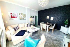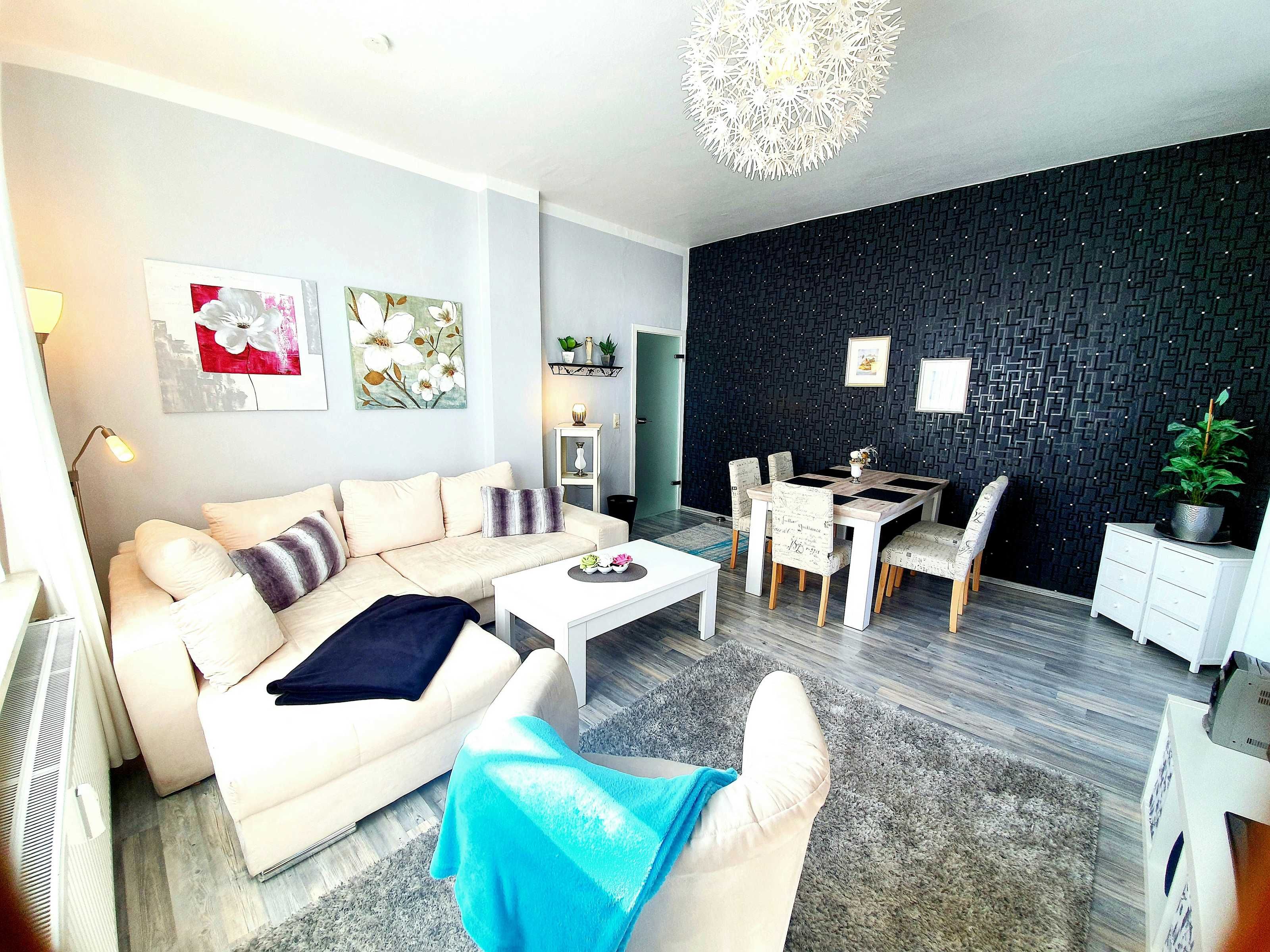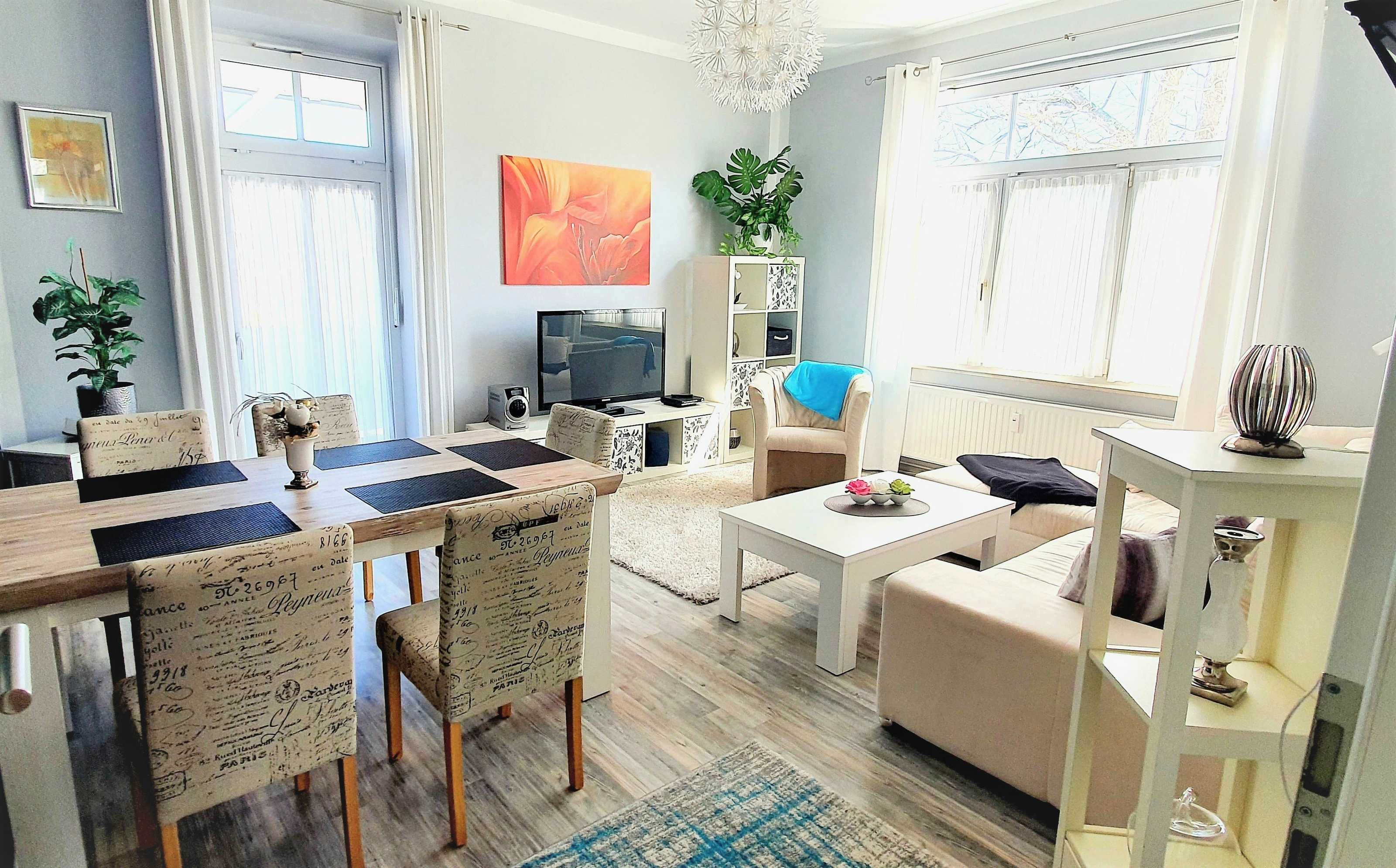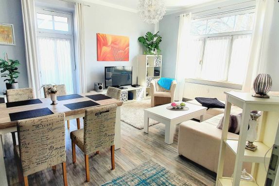 3-Raum-Ferienwohnung mit Balkon. 2 Schlafzimmer, ca. 78 qm, Du/WC, Nichtraucherwohnung, bis 4 Personen belegbar, sep. Küche ,großer  Essplatz im modernen Wohnzimmer. Beide Schlafzimmer verfügen über ein Doppelbett. Das Mitbringen von Haustieren ist nicht gestattet.