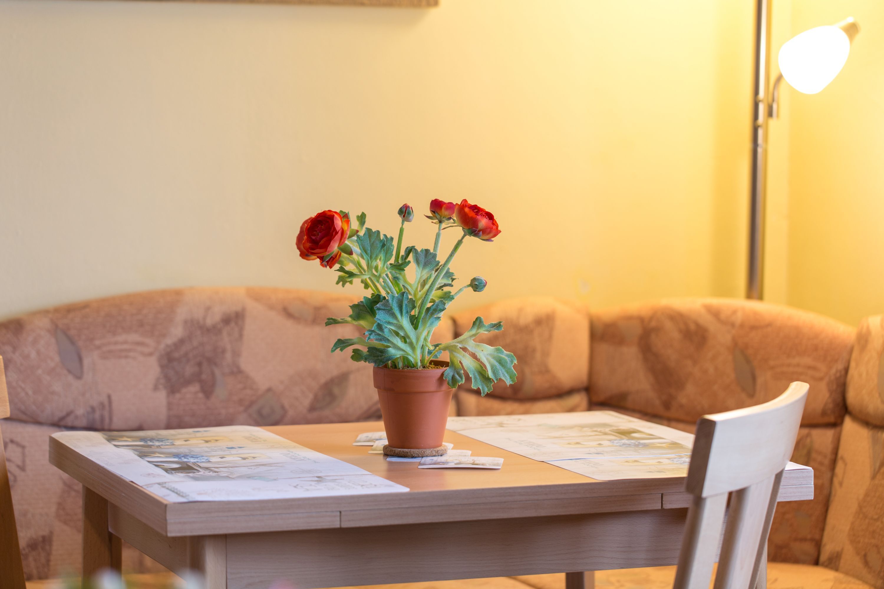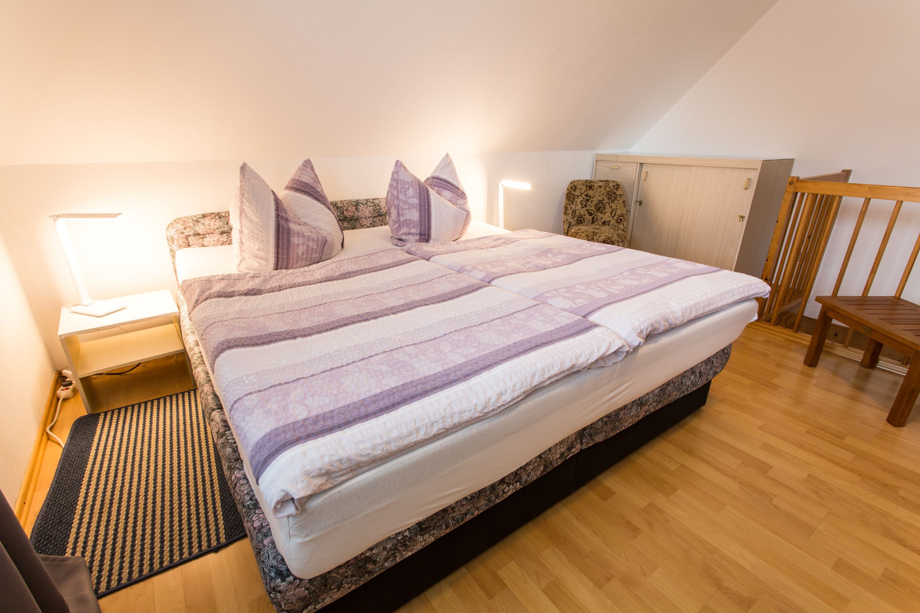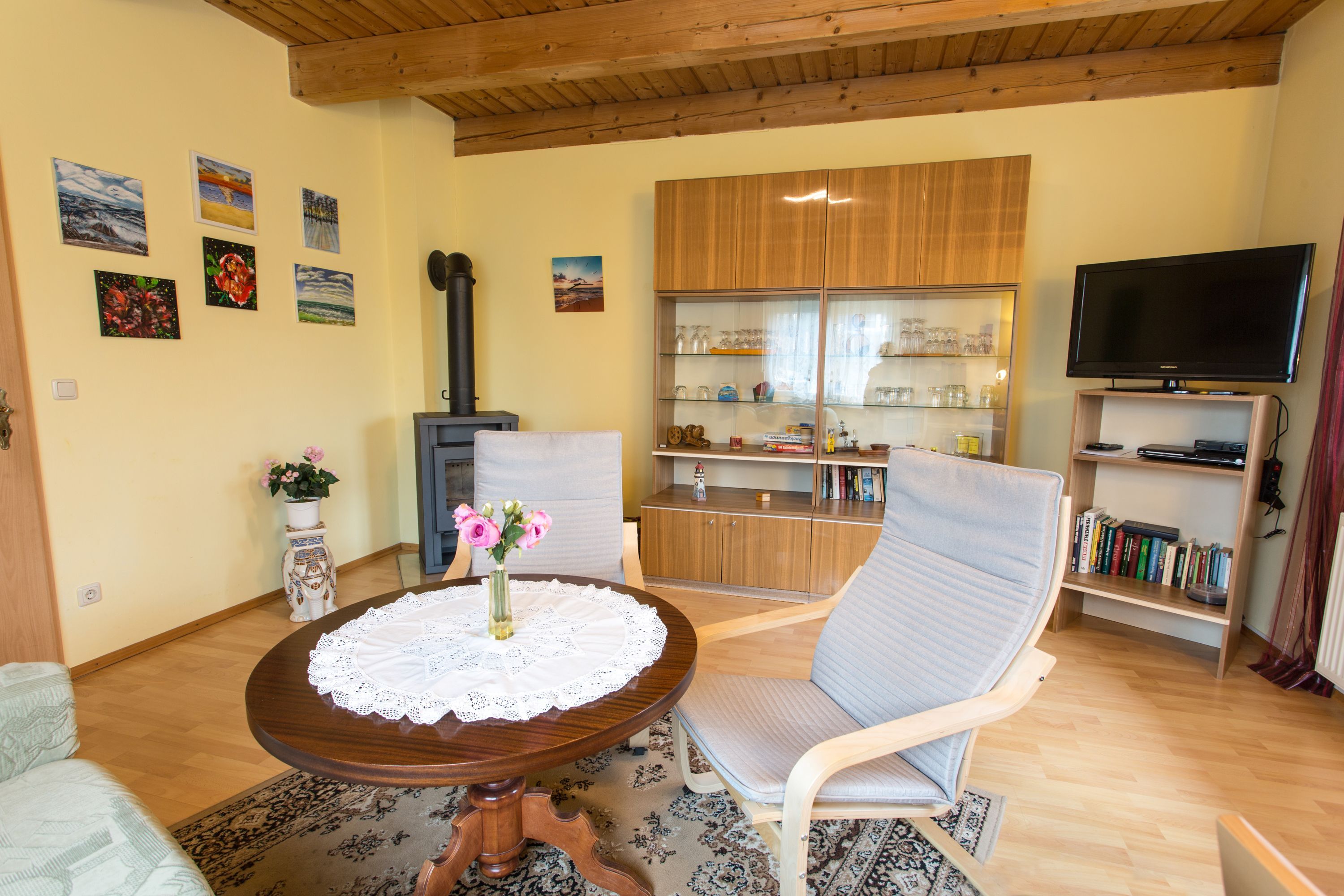 Zur Verfügung steht eine Nichtraucherferienwohnung für 2 Personen mit 48 qm über 2 Etagen. Im Erdgeschoss befinden sich das geräumige Wohnzimmer mit Kaminofen (Aufbettung möglich) sowie die voll ausgestattete Küche und Dusche/WC. Das Schlafzimmer mit Doppelbett befindet sich in der 1. Etage.
