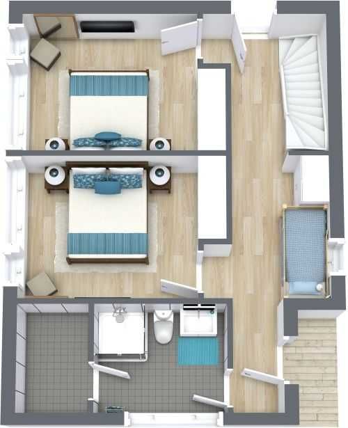 Neben den 2 separaten Schlafzimmern mit jeweils einem Doppelbett und einer Schlafkoje für die 5. und 6. Person, befindet sich außerdem das Bad mit Dusche/WC im unteren Deck.