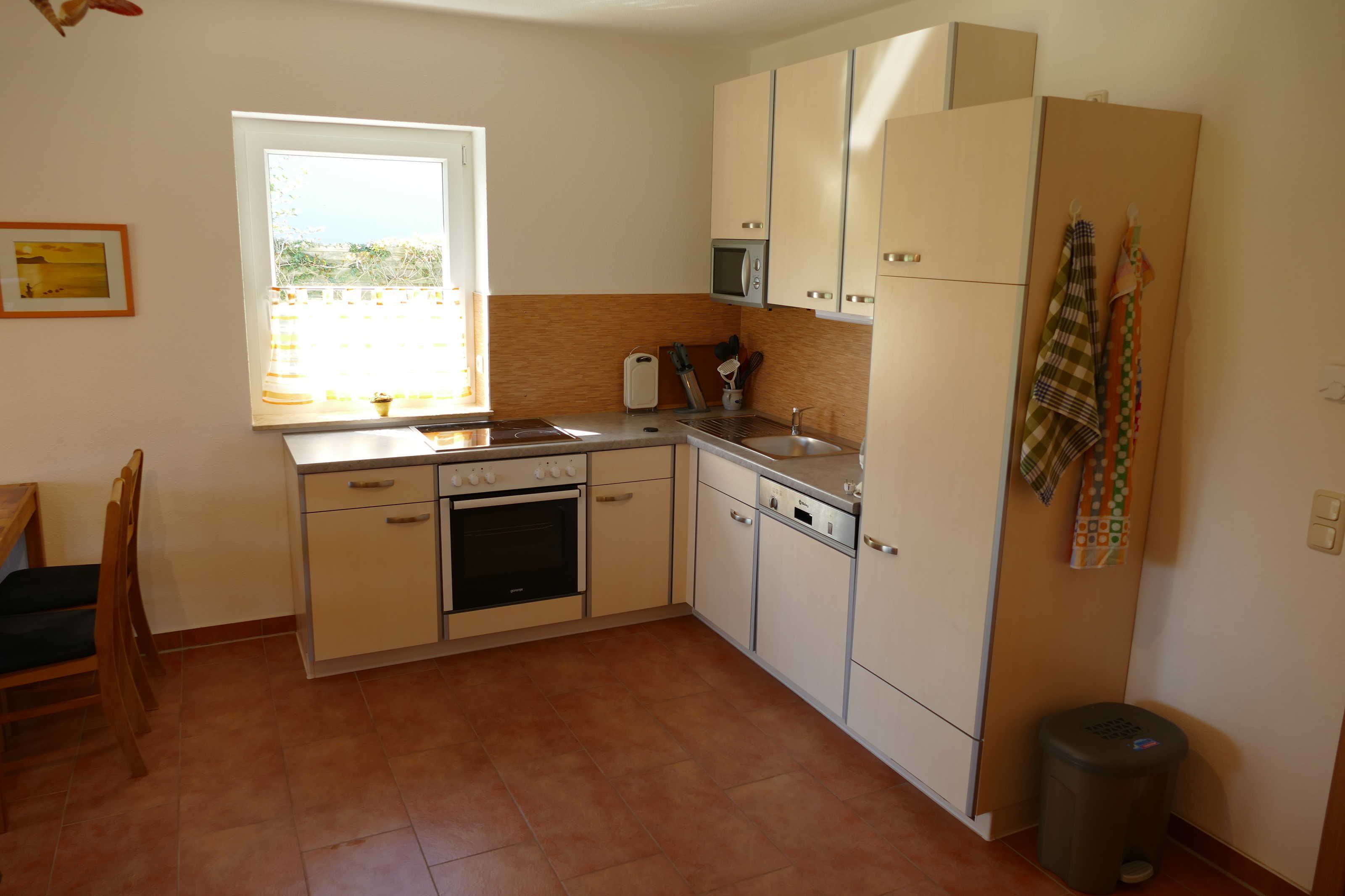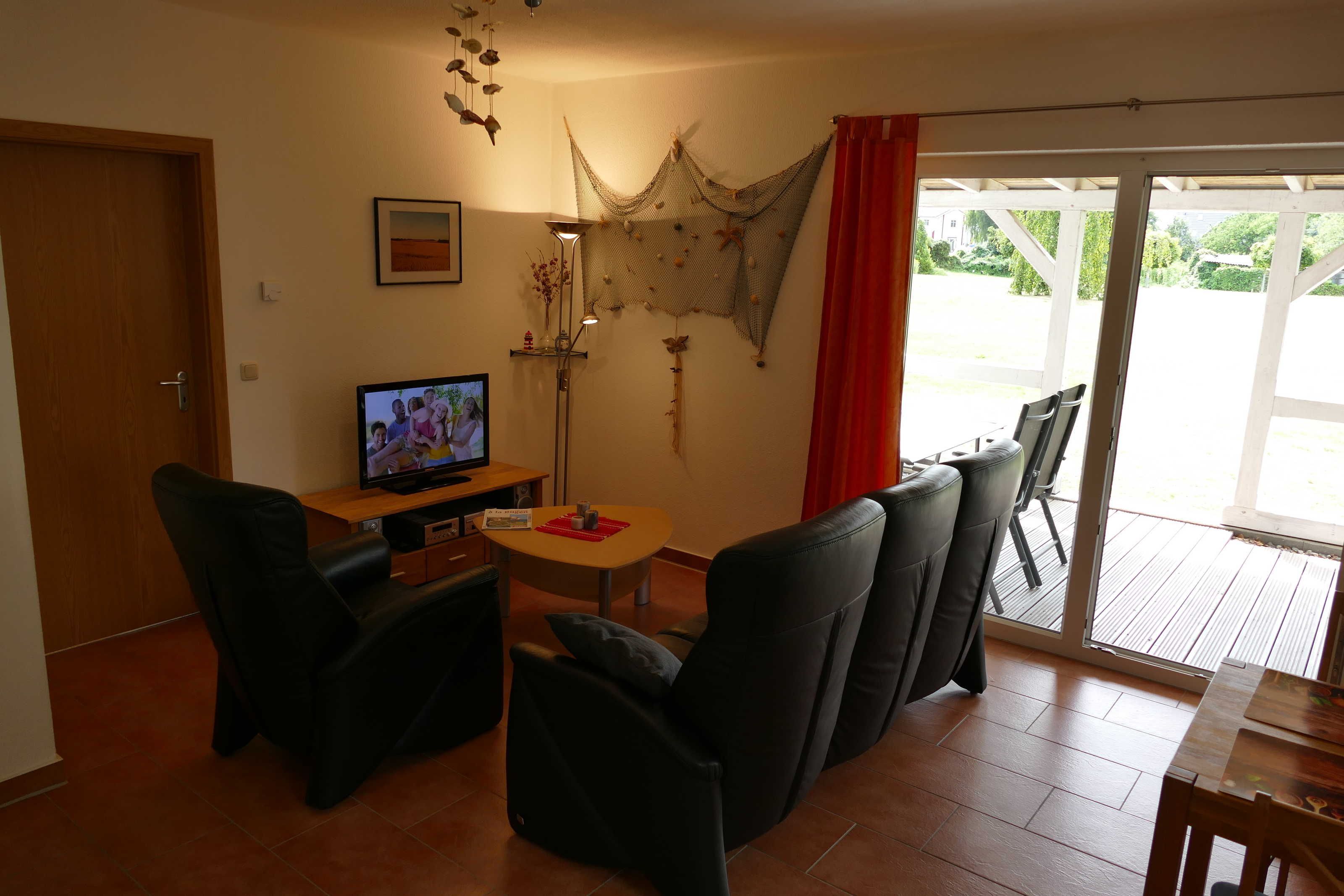 Die Ferienwohnung hat einen separaten Eingang und besteht aus einem Wohnraum mit Sitzgruppe, einer offenen Küche mit Esstisch, einem Schlafzimmer mit Doppelbett, einem weiteren Schlafzimmer mit zwei Einzelbetten (die auch zusammen gestellt werden können) und dem Duschbad. Des weiteren steht Ihnen eine möblierte Terrasse zur Verfügung.