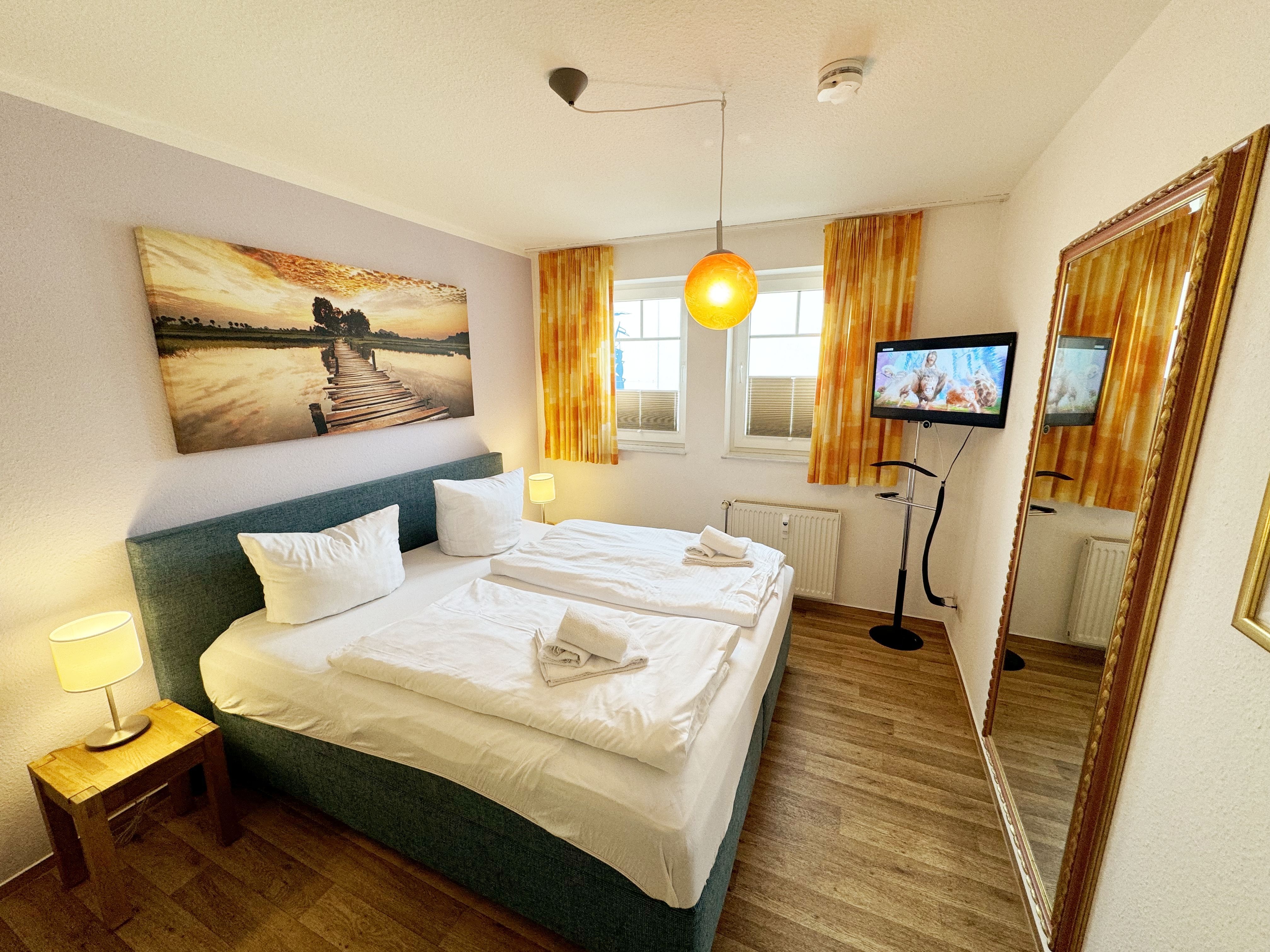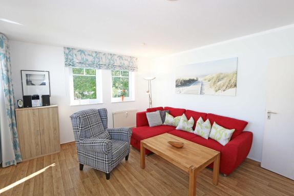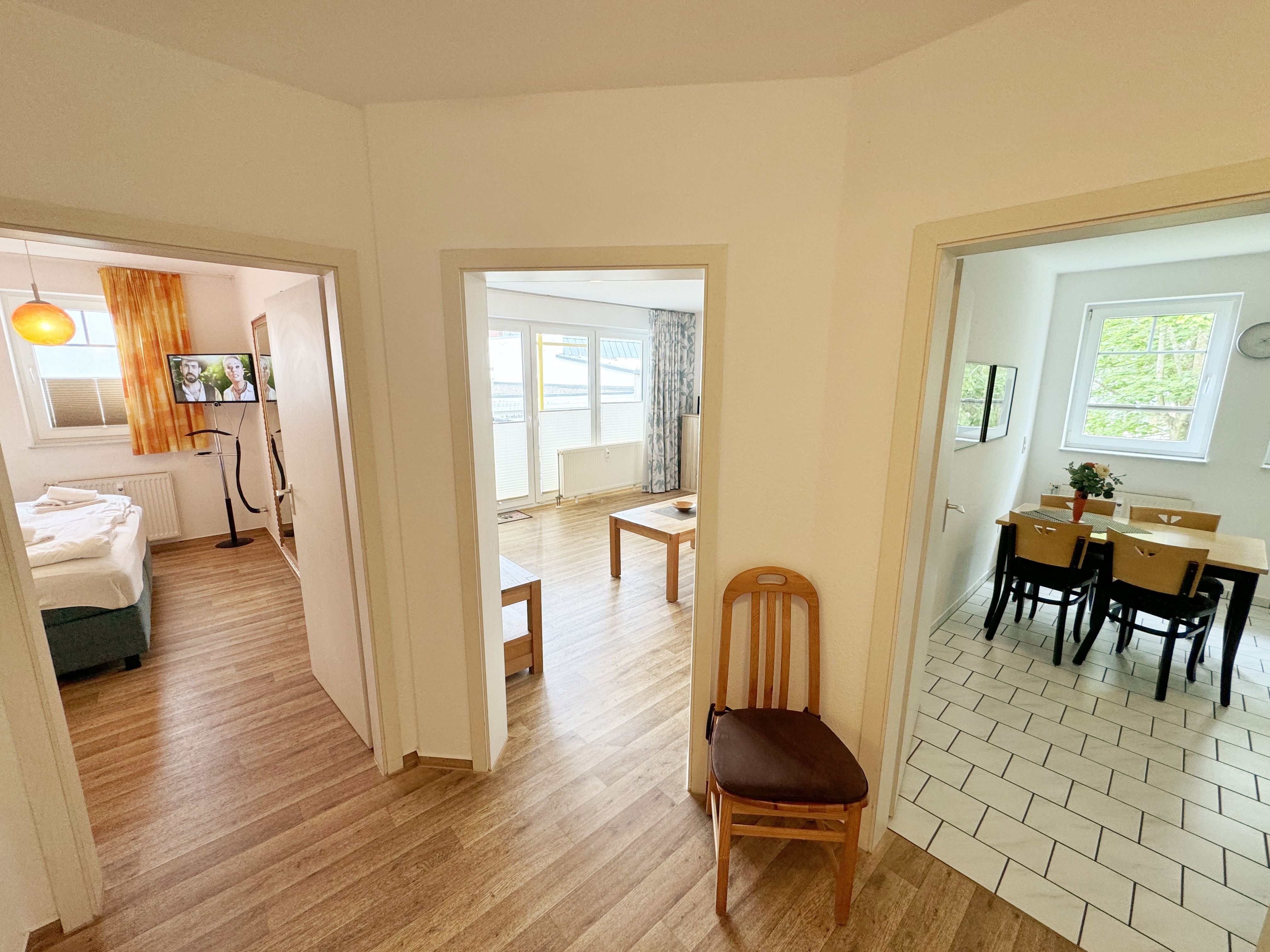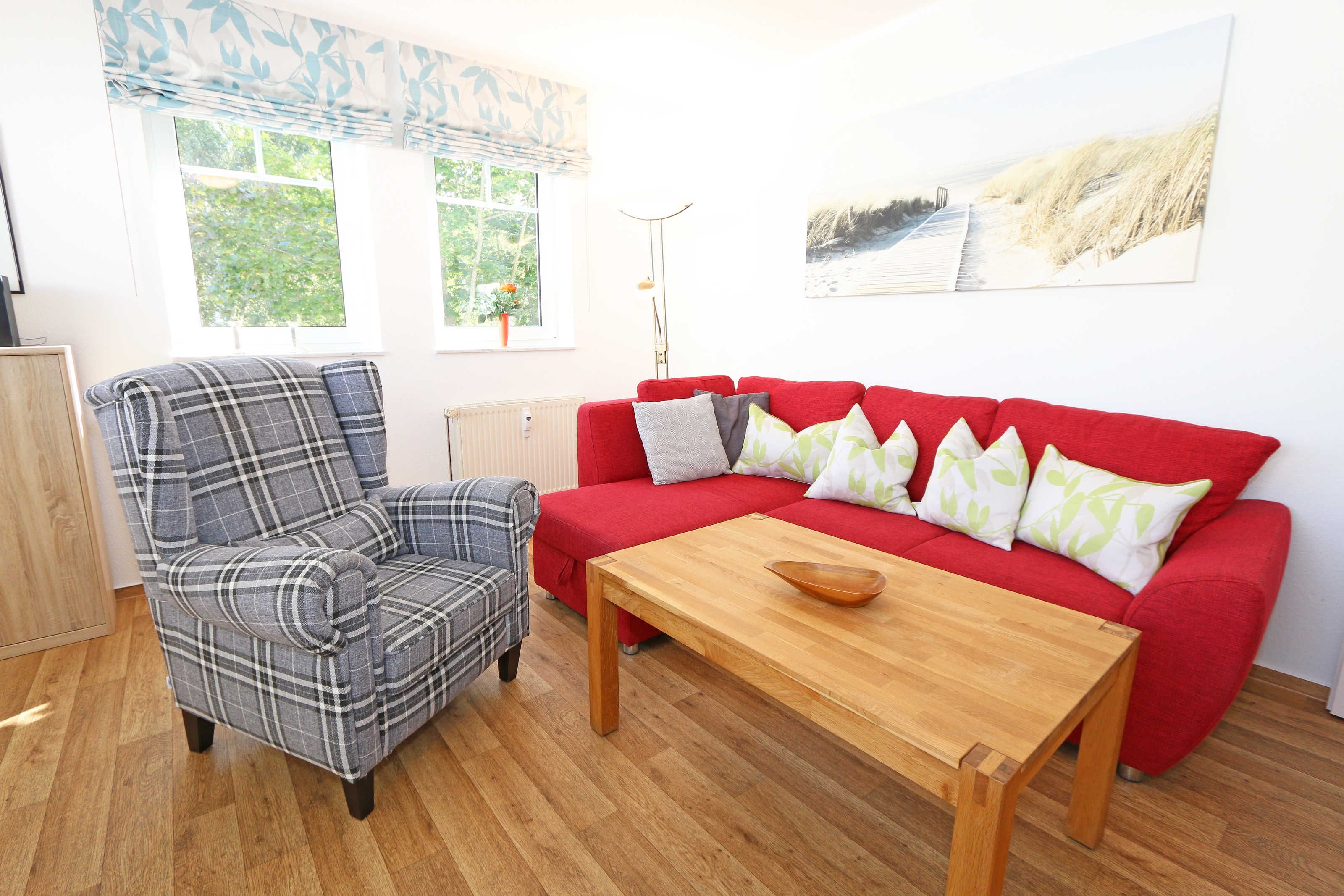 Die Ferienwohnung Nr. 05 (Nichtraucher) ist ca. 60 qm groß und befindet sich im Ostseebad Baabe, in einer ruhigen Seitenstraße (300m zum Strand). Die Ferienwohnung (1. Etage) besteht aus einem Wohnzimmer mit einer Schlafcouch (2,10m x 2,15m), 2 Sessel, Leselampe, Smart-TV, DVD-Player, Mini-Stereo-Anlage mit DAB-Radio und einem Zugang zum Balkon. Die separate Küche ist komplett ausgestattet und verfügt über 4-Zonen-Ceranfeld, Backofen, Geschirrspüler, Kühlschrank, Kaffeemaschine, Mikrowelle, Senseo Padmaschine, Toaster, Eierkocher und diversen Küchenutensilien. Ein Esstisch und 4 Stühle sind natürlich in der Küche vorhanden. Das Schlafzimmer besteht aus einem Boxspringbett (1,80m x 2,00m), Kleiderschrank, Verdunklungsplissee´s sowie ein TV-Gerät. Das Bad verfügt über eine ebenerdige Dusche, ein WC, ein Kosmetikspiegel und Fön. Ein bestuhlter Balkon in der 1. Etage (Richtung Nord/Ost) lädt zum Verweilen ein. Insektenschutzgitter befinden sich in der Küche sowie im Schlafzimmer. Ein eigener PKW-Stellplatz Nr. 05 sowie ein Fahrradunterstand am Haus oder ein Gemeinschafts-Fahrradkeller sind vorhanden. Auch im Urlaub brauchen Sie in der Wohnung nicht auf einen Internetanschluss (W-LAN/LAN) zu verzichten. Dieser ist für Sie inklusive!!! Auch eine kleine Auswahl an Gesellschaftsspielen sowie Urlaubslektüre steht Ihnen zur Verfügung. Die Waschmaschine und Trockner können im Nachbarhaus separat gegen Gebühr genutzt werden. Haustiere sind in der Wohnung 05 nicht erlaubt! Die Erstausstattung eines Wäschepaketes (komplette Bettwäsche, 1 Duschhandtuch, 1 kleines Handtuch) können Sie bis 14 Tage vor Anreise gegen einen Aufpreis dazu buchen oder durch eigene ergänzen. Ab 2 gebuchten Paketen erhalten Sie einmalig 1 Geschirrhandtuch und 1 Duschvorleger hinzu.
