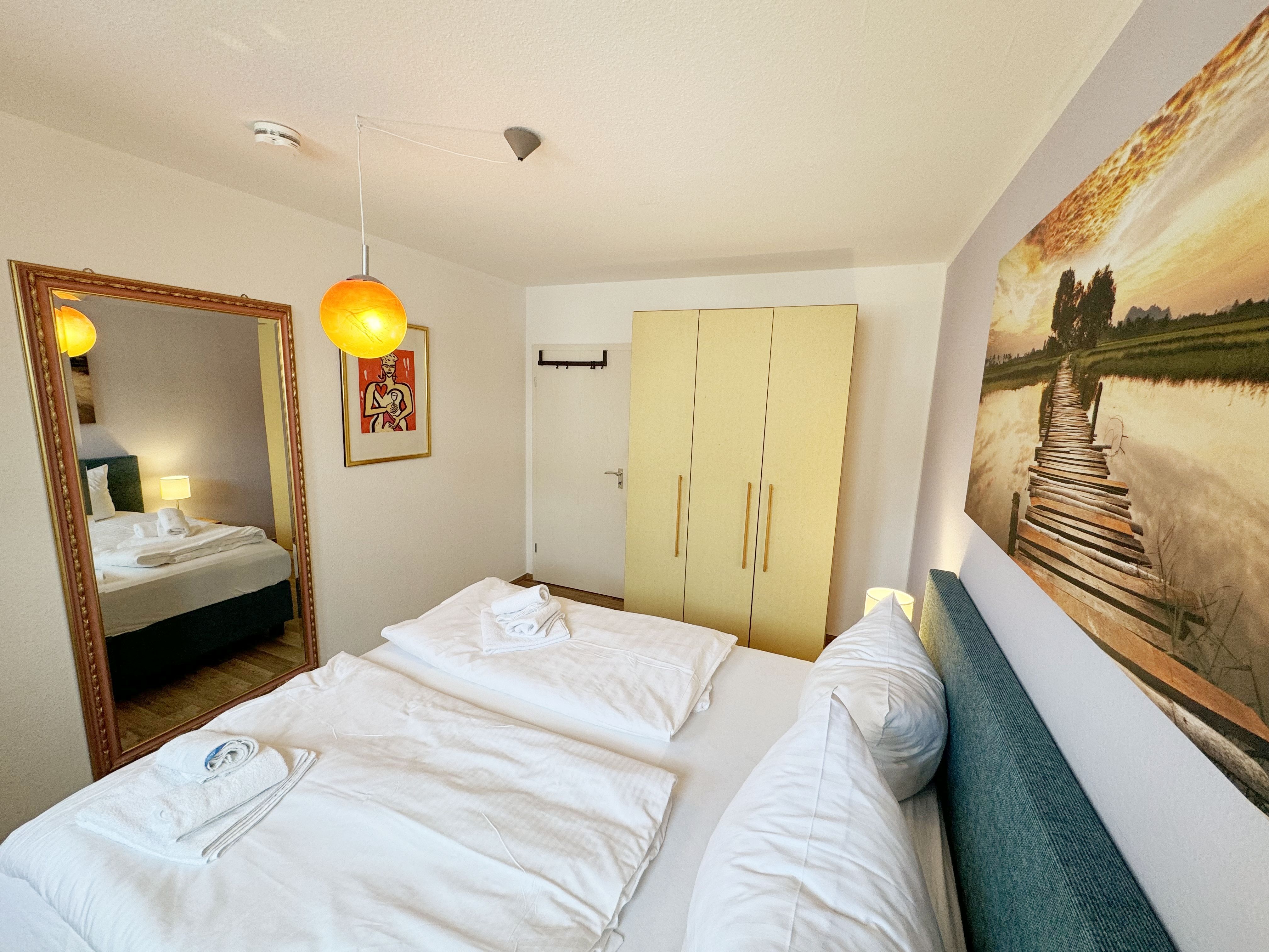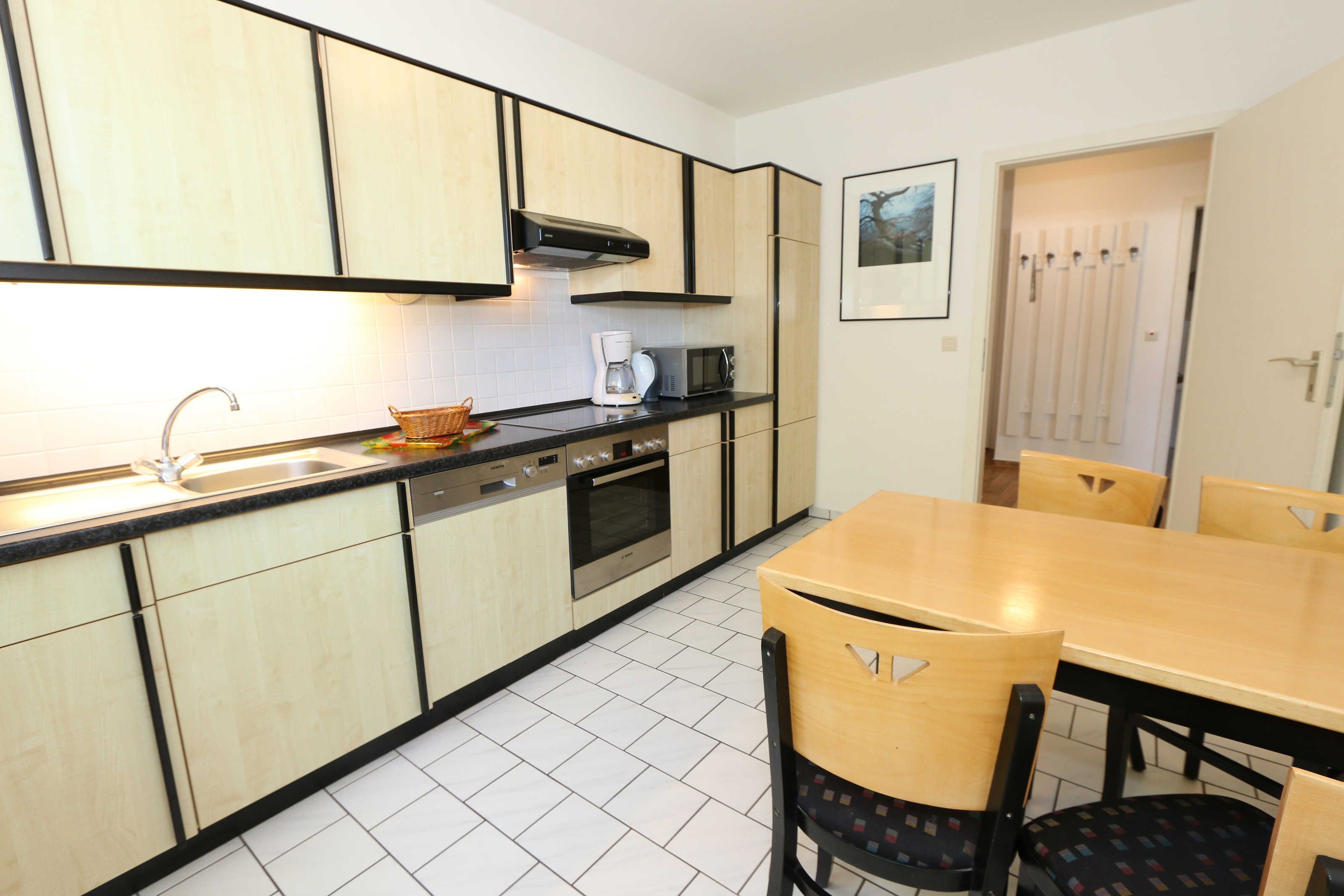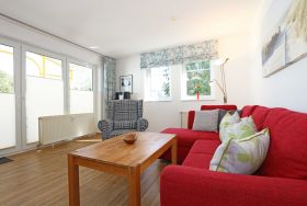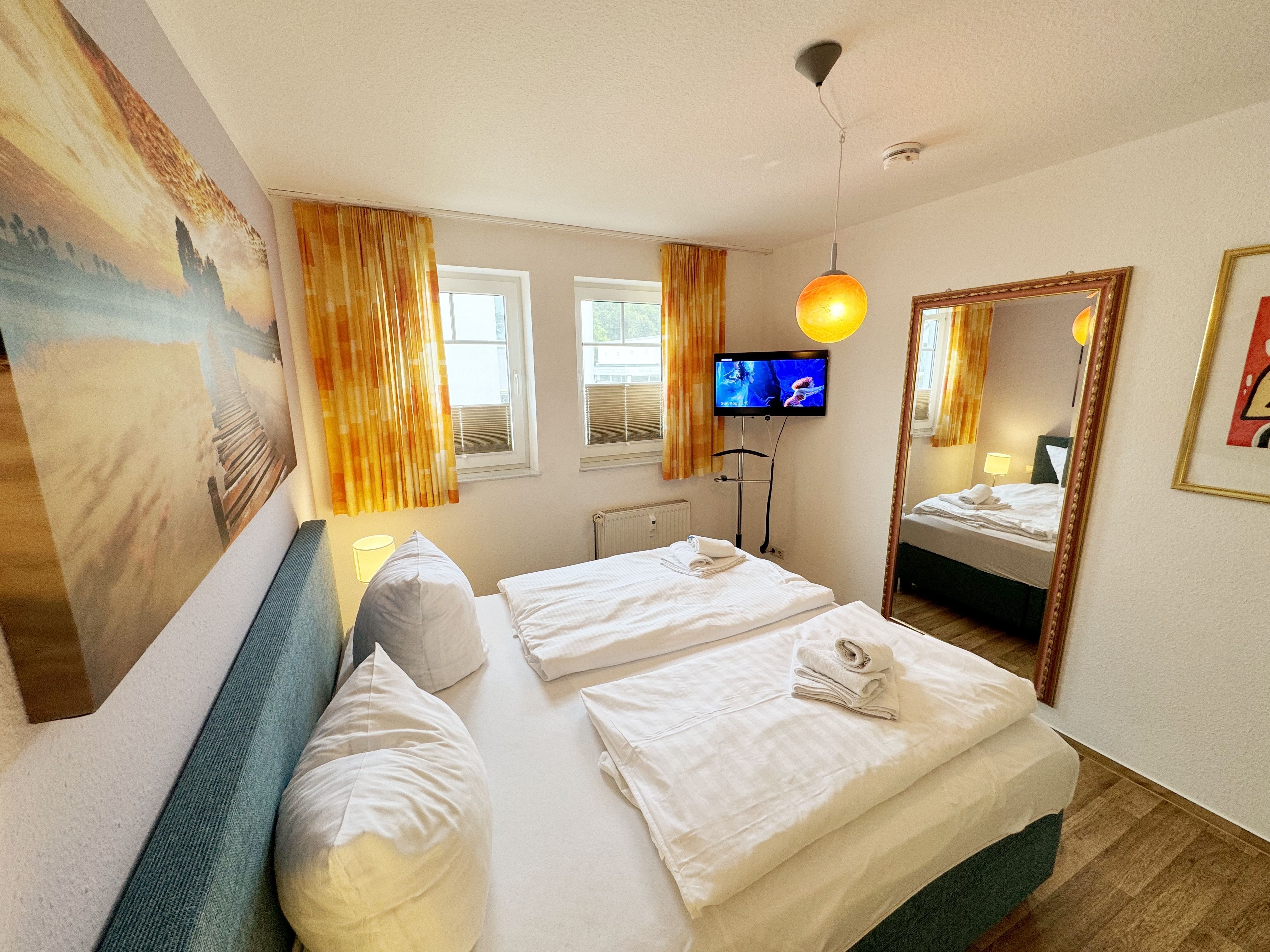Die Ferienwohnung Nr. 05 (Nichtraucher) ist ca. 60 qm groß und befindet sich im Ostseebad Baabe, in einer ruhigen Seitenstraße (300m zum Strand). Die Ferienwohnung (1. Etage) besteht aus einem Wohnzimmer mit einer Schlafcouch (2,10m x 2,15m), 2 Sessel, Leselampe, Smart-TV, DVD-Player, Mini-Stereo-Anlage mit DAB-Radio und einem Zugang zum Balkon. Die separate Küche ist komplett ausgestattet und verfügt über 4-Zonen-Ceranfeld, Backofen, Geschirrspüler, Kühlschrank, Kaffeemaschine, Mikrowelle, Senseo Padmaschine, Toaster, Eierkocher und diversen Küchenutensilien. Ein Esstisch und 4 Stühle sind natürlich in der Küche vorhanden. Das Schlafzimmer besteht aus einem Boxspringbett (1,80m x 2,00m), Kleiderschrank, Verdunklungsplissee´s sowie ein TV-Gerät. Das Bad verfügt über eine ebenerdige Dusche, ein WC, ein Kosmetikspiegel und Fön. Ein bestuhlter Balkon in der 1. Etage (Richtung Nord/Ost) lädt zum Verweilen ein. Insektenschutzgitter befinden sich in der Küche sowie im Schlafzimmer. Ein eigener PKW-Stellplatz Nr. 05 sowie ein Fahrradunterstand am Haus oder ein Gemeinschafts-Fahrradkeller sind vorhanden. Auch im Urlaub brauchen Sie in der Wohnung nicht auf einen Internetanschluss (W-LAN/LAN) zu verzichten. Dieser ist für Sie inklusive!!! Auch eine kleine Auswahl an Gesellschaftsspielen sowie Urlaubslektüre steht Ihnen zur Verfügung. Die Waschmaschine und Trockner können im Nachbarhaus separat gegen Gebühr genutzt werden. Haustiere sind in der Wohnung 05 nicht erlaubt! Die Erstausstattung eines Wäschepaketes (komplette Bettwäsche, 1 Duschhandtuch, 1 kleines Handtuch) können Sie bis 14 Tage vor Anreise gegen einen Aufpreis dazu buchen oder durch eigene ergänzen. Ab 2 gebuchten Paketen erhalten Sie einmalig 1 Geschirrhandtuch und 1 Duschvorleger hinzu.