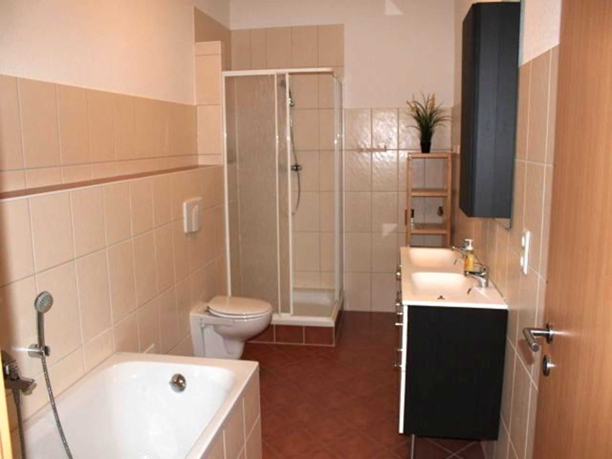 Das Bad hat eine Dusche und eine Badewanne. Die Küche ist komplett ausgestattet, verfügt über eine Einbauküche mit Cerankochfeld, Backofen, Geschirrspüler und Mikrowelle.
