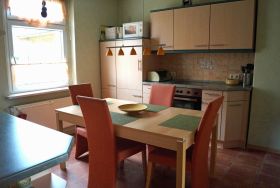 Die gemütlich Zweiraumferienwohnung ist 50 m² groß, befindet sich im Hochparterre, verfügt über ein Schlafraum mit Doppelbett und einen Wohnraum mit Schlafsofa für eine weitere Person. Im  Wohnzimmer befindet sich eine Couch mit Sessel, Flachbild-TV, WLAN und ein Radio. Die separate Küche ist großzügig mit Esstisch, Herd mit Backofen, Spülmaschine, Mikrowelle, Kühlschrank mit Gefriermöglichkeit sowie allen wichtigen Utensilien ausgestattet. Im Badezimmer befindet sich eine Badewanne, Waschtisch und  WC. Eine Parkplatzmöglichkeit gibt es in unmittelbarer Nähe.