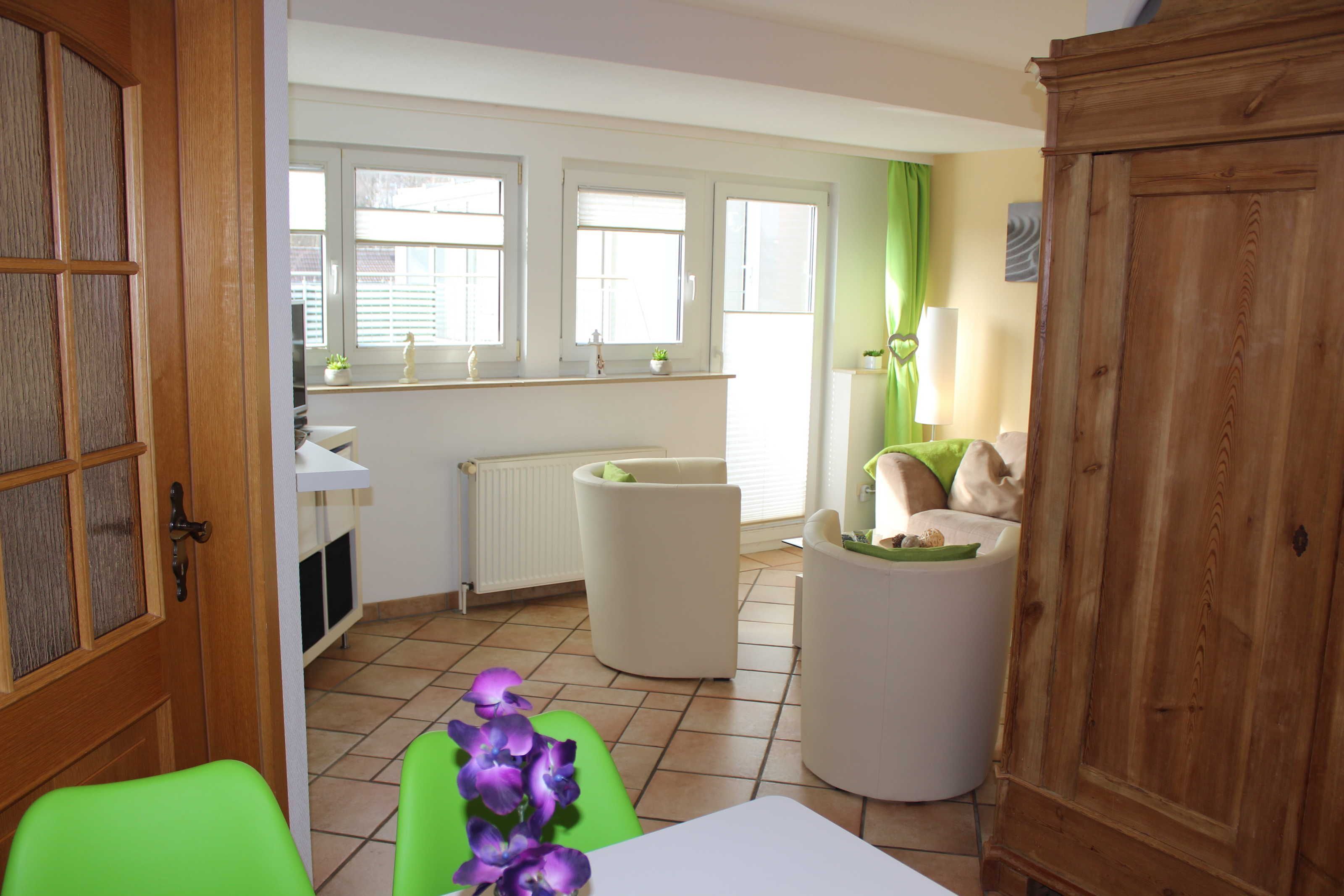• modern, gemütlich und freundlich hell ausgestattete Ferienwohnung Seepferdchen für 1 bis 4 Personen (plus max. einem Kleinkind) im 1. OG