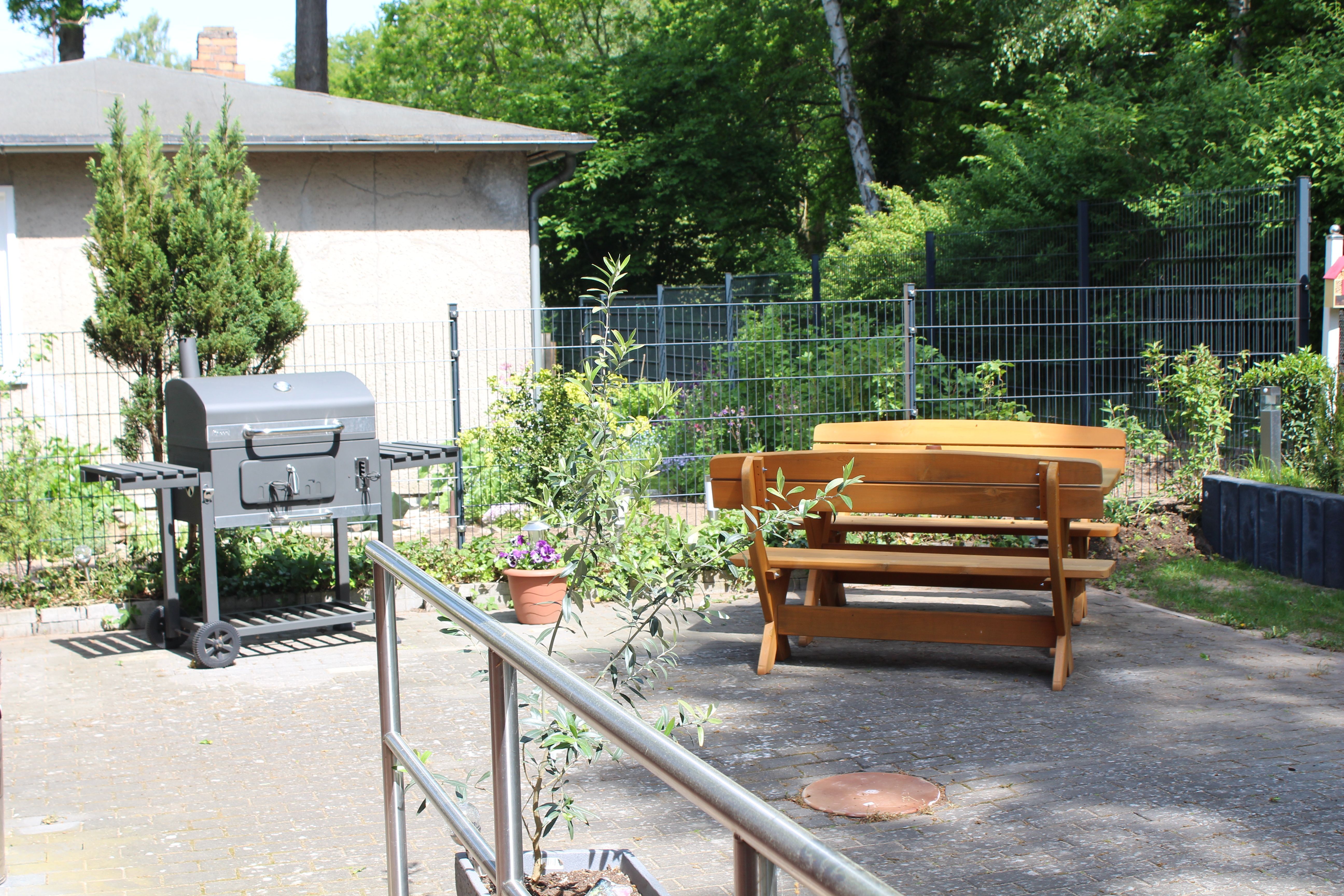 • eine gemütliche Sitz- und Grillecke hinterm Haus, lädt an warmen Abenden zum Verweilen ein