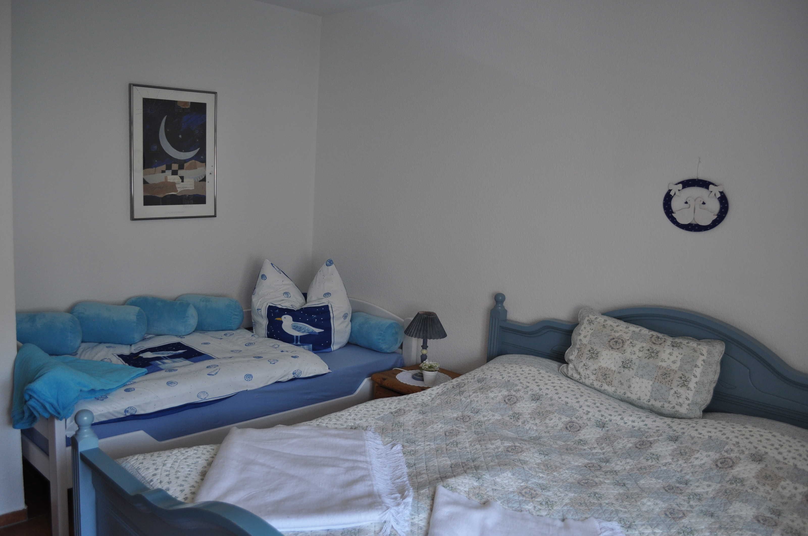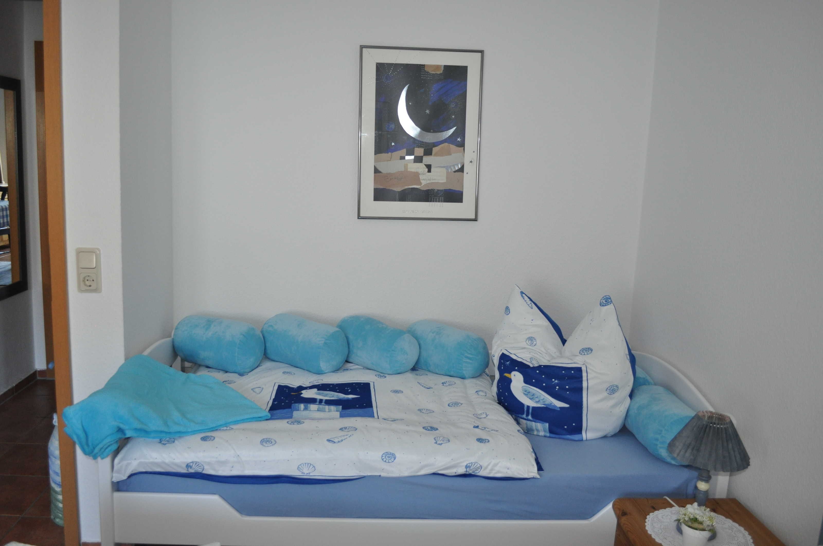 Die 50 Quadratmeter große Ferienwohnung Möwennest liegt im ersten Stock mit Süd / West - Balkon. Diese gemütliche, mit Liebe zum Detail eingerichtete Ferienwohnung, bietet Platz für 2 Erwachsene und 1Kind. Einkaufsmöglichkeiten (Edeka, Penny, Bäcker etc.) und Apotheke liegen in unmittelbarer Nähe. PKW Stellplatz (Nr. 9) und abschließbarer Fahrradunterstand mit Wäschetrockenraum sind vorhanden.