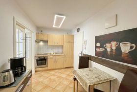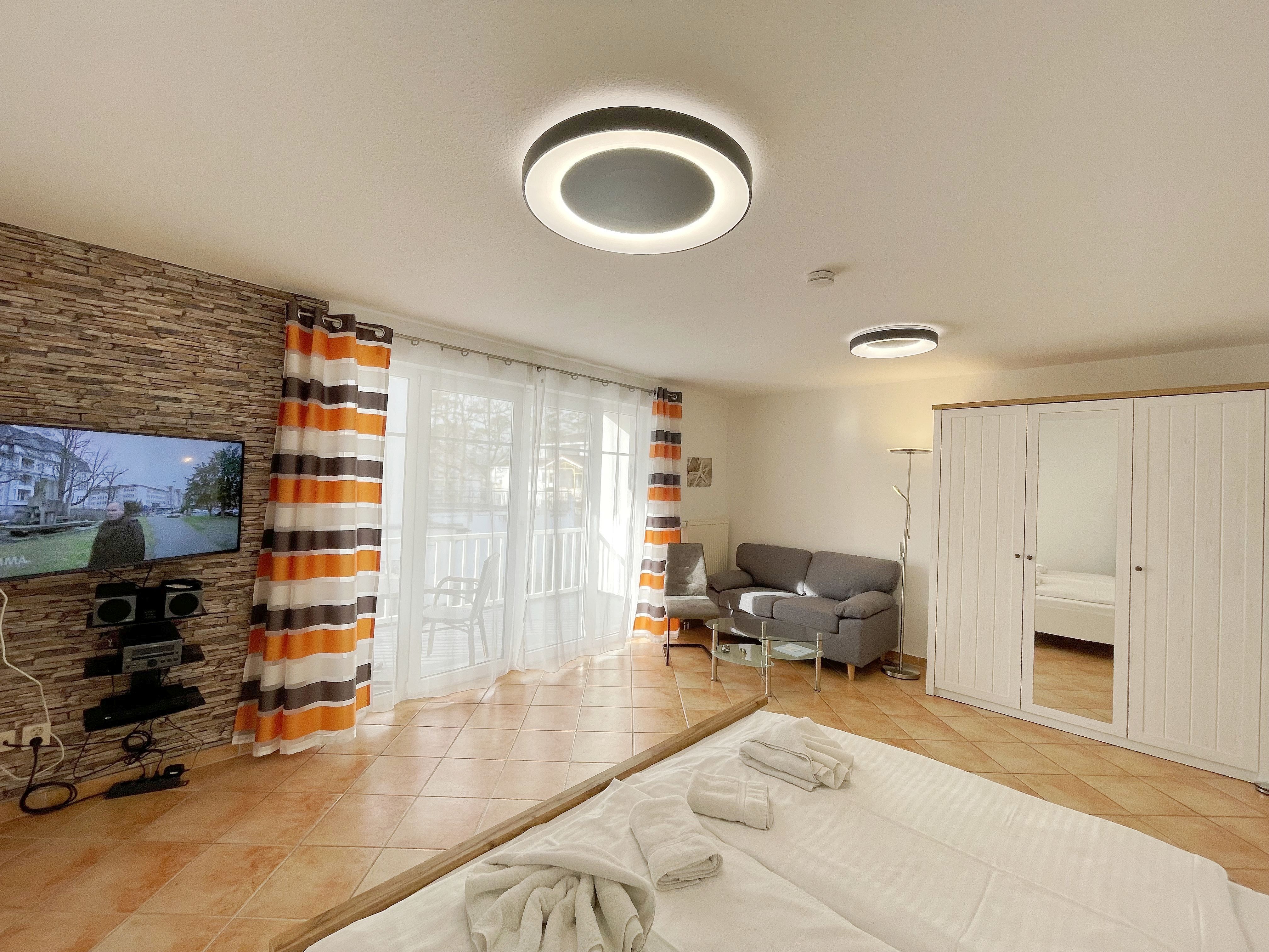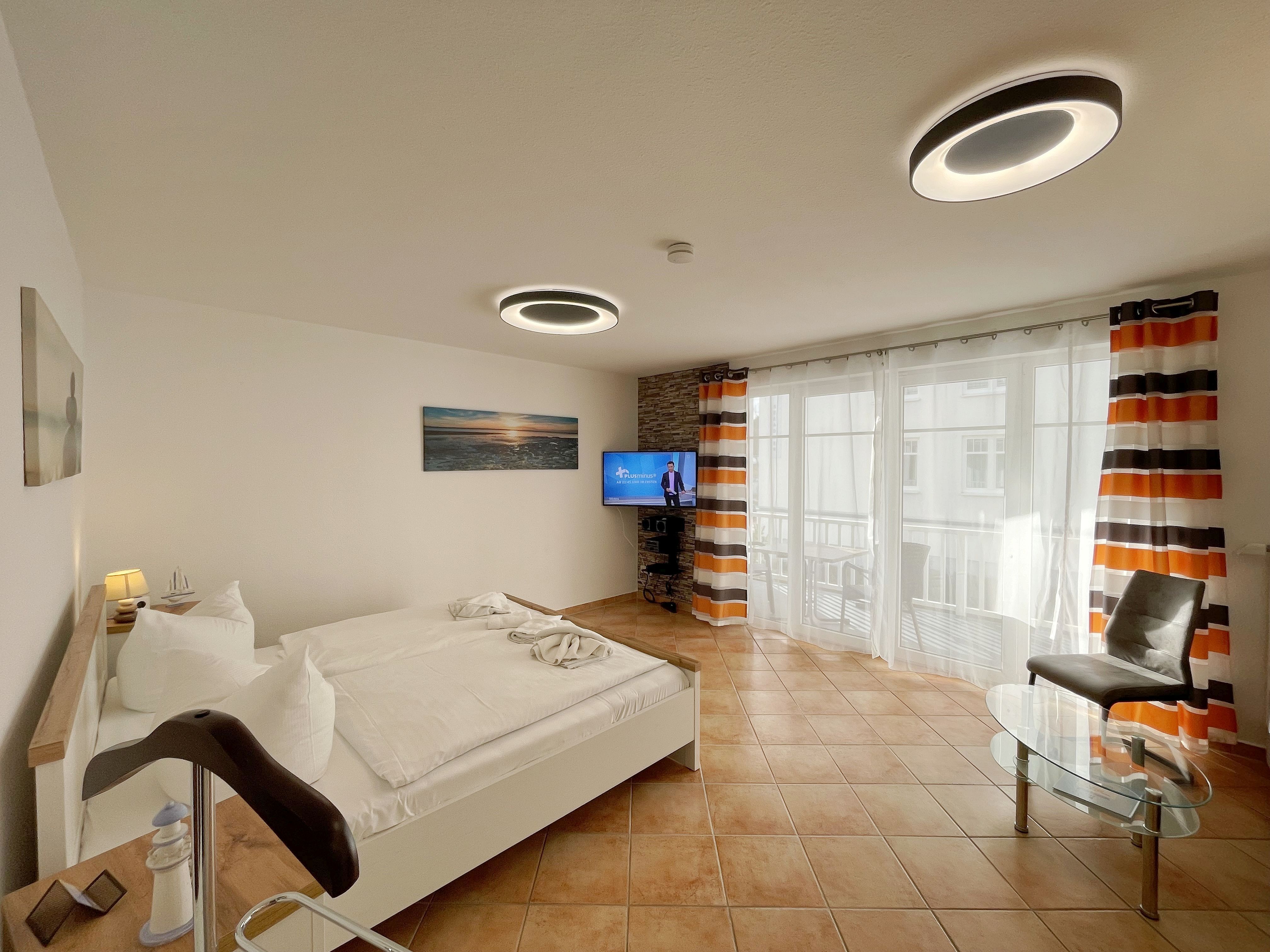 Das Appartement (Nichtraucher) für max. 2 Personen mit ca. 37 qm befindet sich in einem erbauten Haus mit weiteren Ferienwohnungen in der Strandstraße Nr. 27, ca. 200 m vom Strand entfernt. Die Wohnung Seestern (Nr. 07) befindet sich in der 1. Etage und kann bequem mit dem Fahrstuhl erreicht werden. Der große Wohn-/Schlafraum ist mit einem bequemen Doppelbett (1,80m x 2,00m), verstellbare Lattenroste, einem großen Schrank mit reichlich Stauraum, einer Couch mit Couchtisch, einer Leselampe und einem Stuhl ausgestattet. Ein Smart-TV mit Blu-Ray-/DVD-Player sowie eine HiFi-Anlage sind ebenfalls vorhanden. Alle Böden sind komplett gefliest. Die kleine buchefarbende Küchenzeile mit Essplatz wird von einer Glasflügeltür vom Wohnraum abgetrennt. Die Küchenzeile verfügt über einen Kühlschrank mit Eisfach, ein Cerankochfeld, einen Backofen, einen Toaster, einen Wasserkocher, einer Kaffeemaschine sowie diversen Küchenutensilien. Das innenliegende Bad verfügt über einen Handtuchtrockner, einen Fön, ein WC und eine Dusche. Der großzügige Balkon (ca. 10 qm / Südwest) ist wie eine Loggia geschützt. Um den Tag so richtig ausklingen zulassen finden Sie hier Holzmöbel sowie 2 mit Auflagen bestückten Sonnenliegen und einen Sonnenschirm. Auf einen Internetzugang (WLAN) brauchen Sie im Urlaub nicht zu verzichten. Zur Wohnung gehört ein Tiefgaragenstellplatz (Nr. 7, Einfahrtshöhe 2,00m) sowie ein abgeschlossener Kellerraum, zur sicheren Unterbringung der Fahrräder. 2 Fahrräder stehen Ihnen kostenlos zur Verfügung, sind aber nicht Bestandteil der Buchung, da durch höhere Gewalt nicht immer die Nutzung garantiert werden kann. Haustiere sind in der Wohnung nicht erlaubt! Die Erstausstattung eines Wäschepaketes (komplette Bettwäsche, 1 Duschhandtuch, 2 kleine Handtücher) können Sie bis 14 Tage vor Anreise gegen einen Aufpreis dazu buchen oder durch eigene ergänzen. Ab 2 gebuchten Paketen erhalten Sie einmalig 1 Geschirrhandtuch und 1 Duschvorleger dazu.