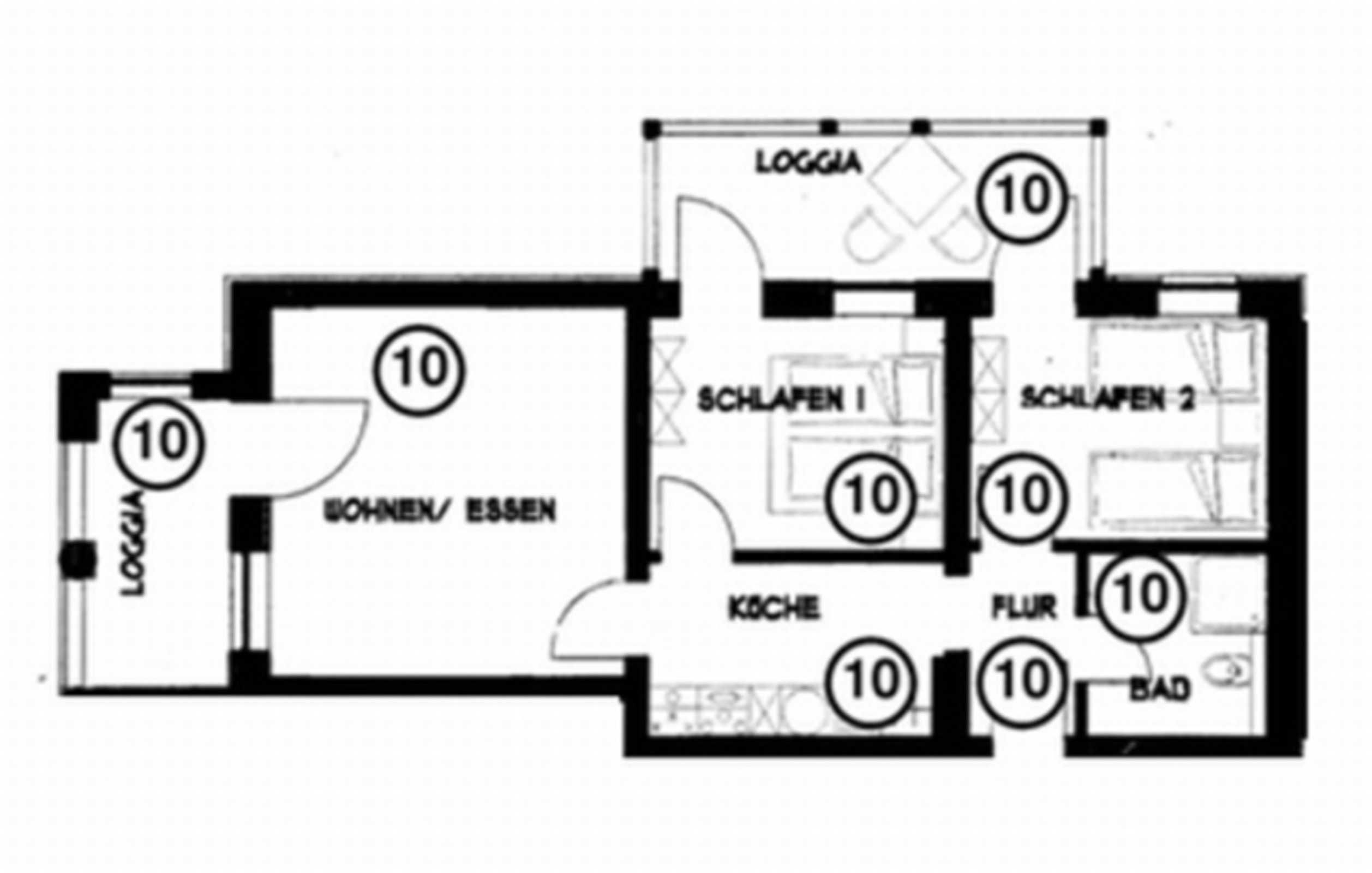 Die schöne Drei-Zimmer Ferienwohnung Nr. 10 mit einer Größe von 61 m² für bis zu 6 Personen liegt im 2. Obergeschoss und hat die folgende Einrichtung / Ausstattung: