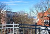 Vom schönen Rundbalkon schauen Sie auf die grünen Bäume der Heinrich-Heine Straße und des Warnemünder Kurparks. Vom Spätherbst bis zum Frühjahr können Sie sogar den Strand und die Ostsee sehen.