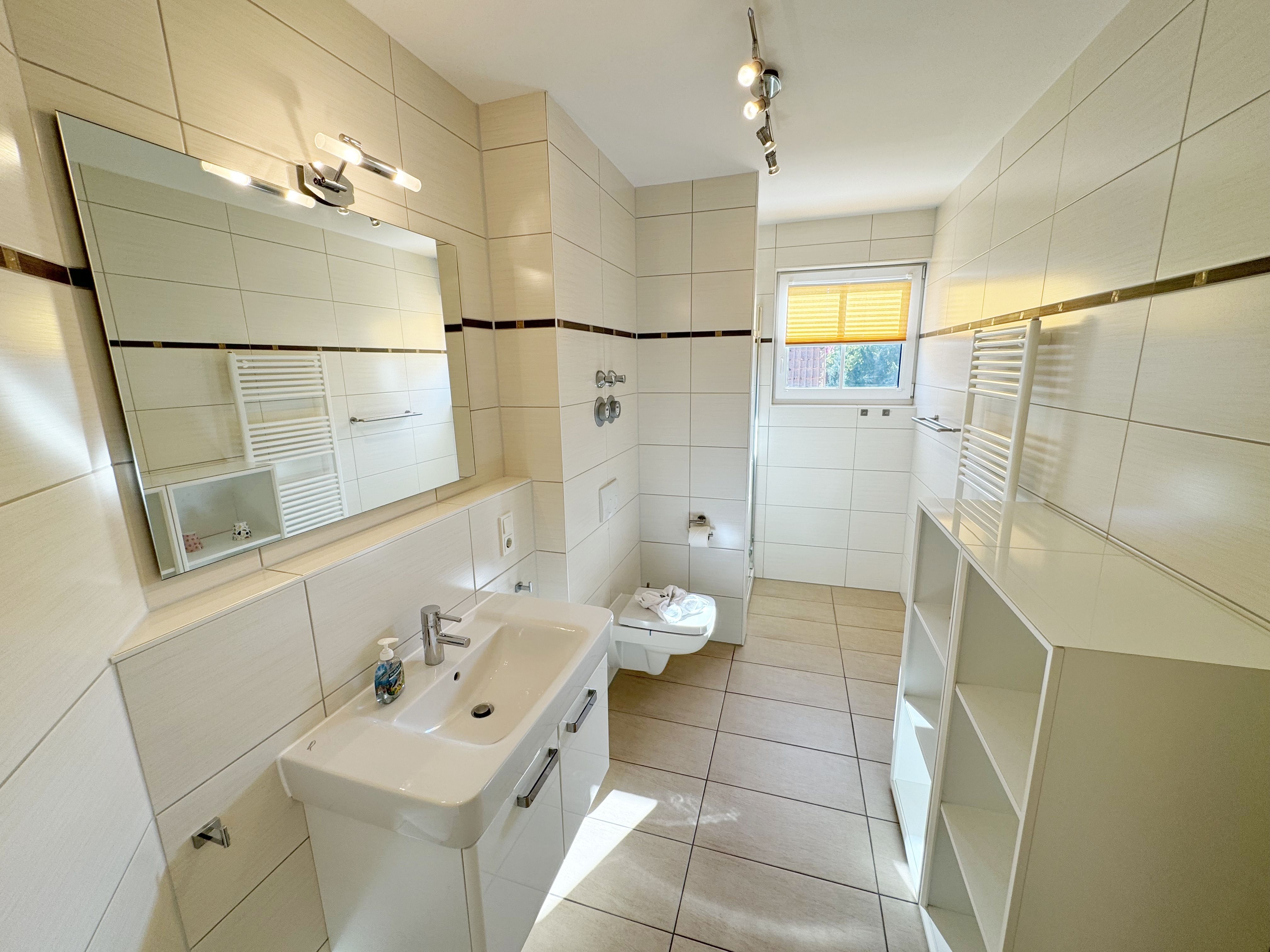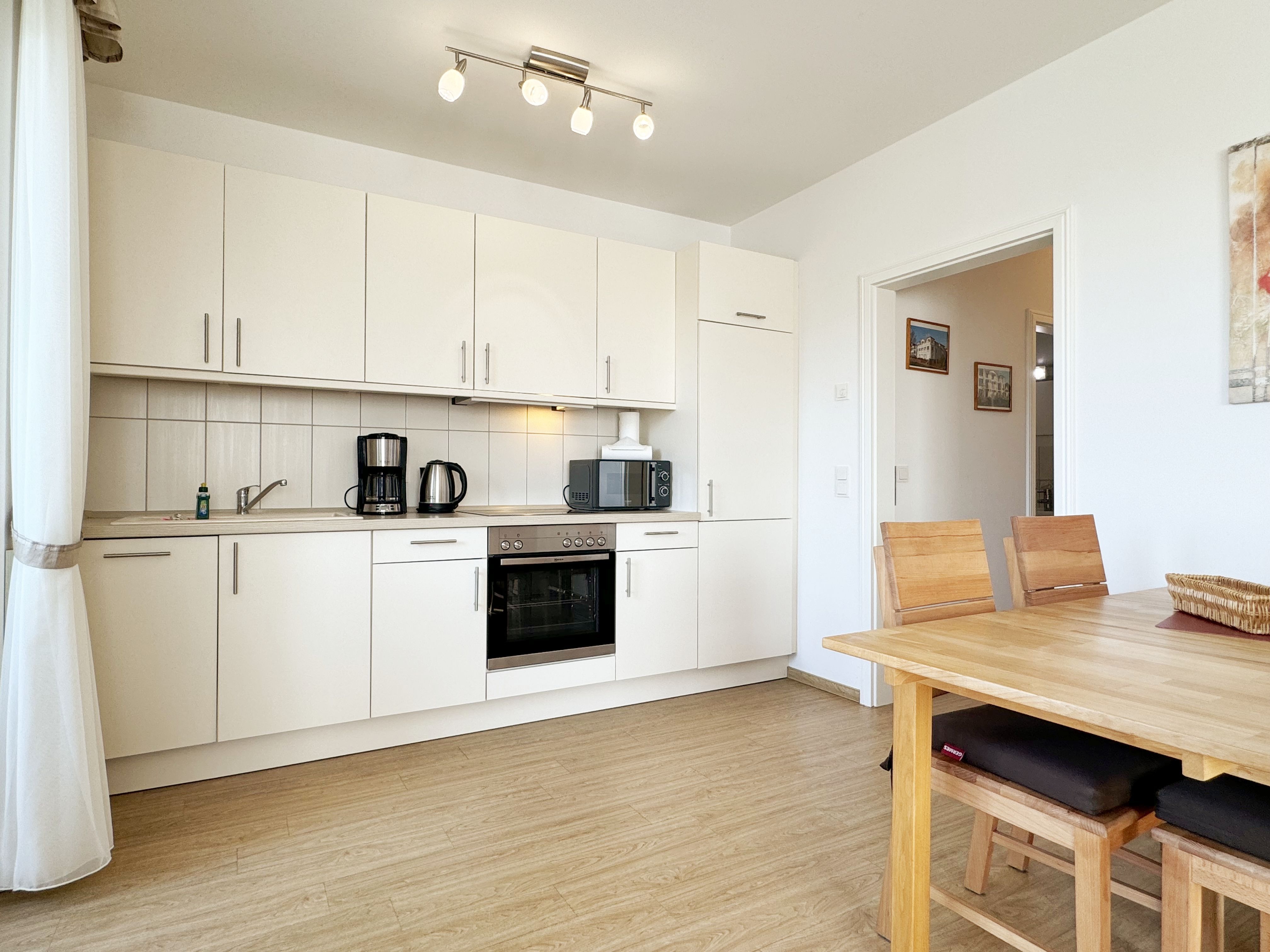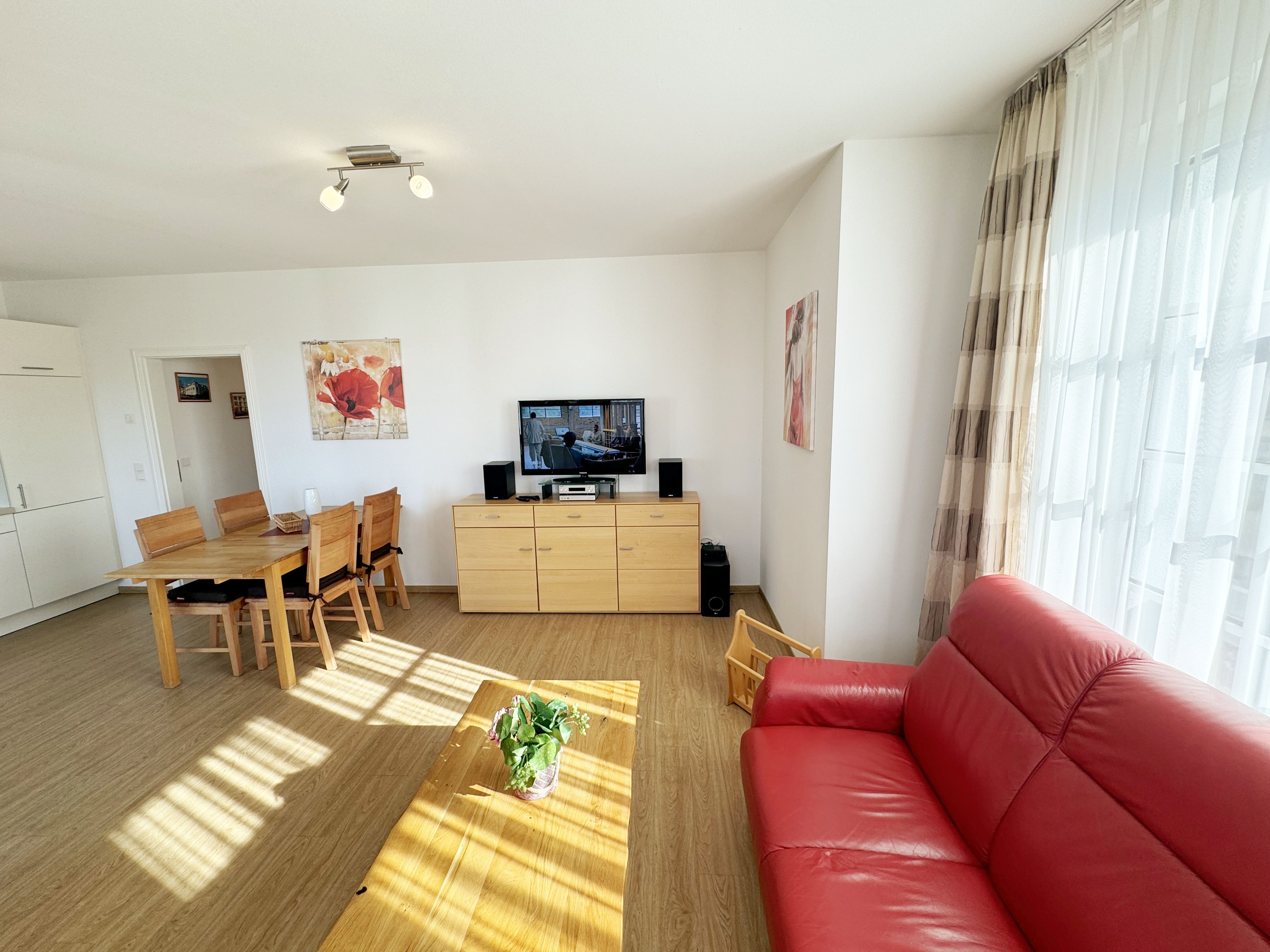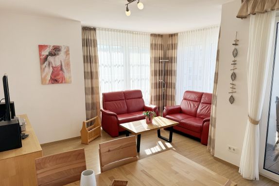 Die gemütlich eingerichtete 3-Raumwohnung Nr. 06 (Nichtraucherwohnung) in der Villa Annika befindet sich in der 1. Etage. Mit Ihren ca. 66 qm bietet Sie Ihnen ausreichend Platz für max. 2 bis 4 Personen. Vom Flurbereich erreichen Sie alle Räumlichkeiten. Der Wohnbereich ist mit einem 2 x 2-Sitzer Couch, einer Leselampe, einem Sideboard mit LCD-TV, WLAN-Zugang, einem DAB-Radio und einer Küchenzeile ausgestattet. Die Küchenzeile ist komplett ausgestattet und beinhaltet ein Cerankochfeld, einen Backofen, einen Geschirrspüler, eine Mikrowelle, einen Kühlschrank mit Gefrierfach, einer Kaffeemaschine, einem Toaster, einem Wasserkocher sowie diversen Küchenutensilien. Angrenzend befindet sich der Essplatz. Vom Wohnbereich gelangen Sie auf Ihren bestuhlten Balkon (Süd/West). Das Tageslicht-Bad verfügt über eine Dusche mit flachem Einstieg, ein WC, einen Waschplatz, Ablageregal, einem Handtuchtrockner, einem beleuchteten Kosmetikspiegel, Insektenschutzgitter und einem Fön. Ein Gäste-WC mit Waschbecken rundet den Sanitärbereich ab. Die beiden Schlafzimmer bestehen jeweils aus einem Doppelbett (2 x 0,90m x 2,00m), verstellbaren Lattenrosten, Nachttischablagen und Beleuchtung, einer Kleiderablage, einem Kleiderschrank sowie Insektenschutzgitter. Eines der Schlafzimmer verfügt zusätzlich über einen TV. In allen Räumen sorgt eine Fußbodenheizung für angenehme Wärme. Im kleinen Abstellraum befinden sich Reinigungsutensilien, ein Wäscheständer mit Wäscheklammern sowie ein Staubsauger. Ein eigener PKW-Stellplatz (Nr.06) ist für Sie in der hauseigenen Tiefgarage (Einfahrtshöhe 1,90m) vorhanden, sowie eine Fahrradabstellmöglichkeit auf dem Grundstück. 1 gut erzogenes Haustier ist gegen eine Gebühr in der Wohnung ein gern gesehener Gast. Die Erstausstattung eines Wäschepaketes (komplette Bettwäsche, 1 Duschhandtuch, 1 kleines Handtuch) können Sie bis 14 Tage vor Anreise gegen einen Aufpreis dazu buchen oder durch eigene ergänzen. Ab 2 gebuchten Paketen erhalten Sie einmalig 1 Geschirrhandtuch und 1 Duschvorleger hinzu.