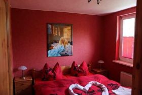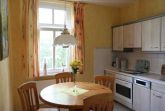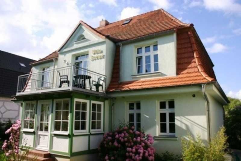 Geräumige und modern eingerichtete Ferienwohnung im Hochparterre (Anbau an der Villa) auf einem abgeschlossenen Grundstück. Die sanitäre Einrichtung besteht aus zwei Duschen sowie einem WC. Die überdachte Terasse lädt auch bei schlechtem Wetter zum Verweilen ein. Für die kleinsten Gäste kann bei Bedarf ein Kinderreisebett und ein Hochstuhl bereitgestellt werden. Einen gemütlichen Fernsehabend verspricht der digitale Fernseher. Und läßt das Fernsehprogramm zu wünschen übrig, können auch DVDs ausgeliehen werden. Internetzugang (WLAN) ist in der Wohnung vorhanden.