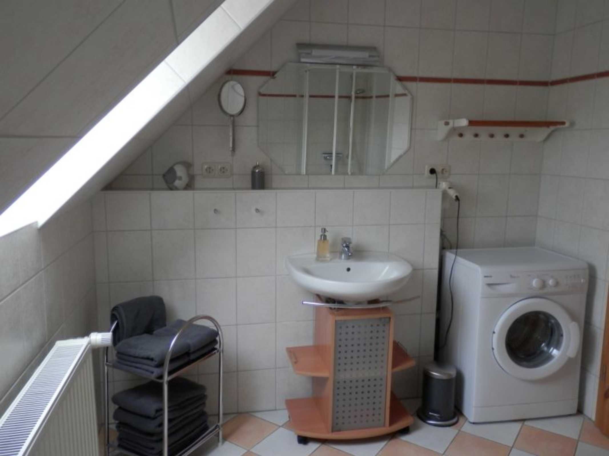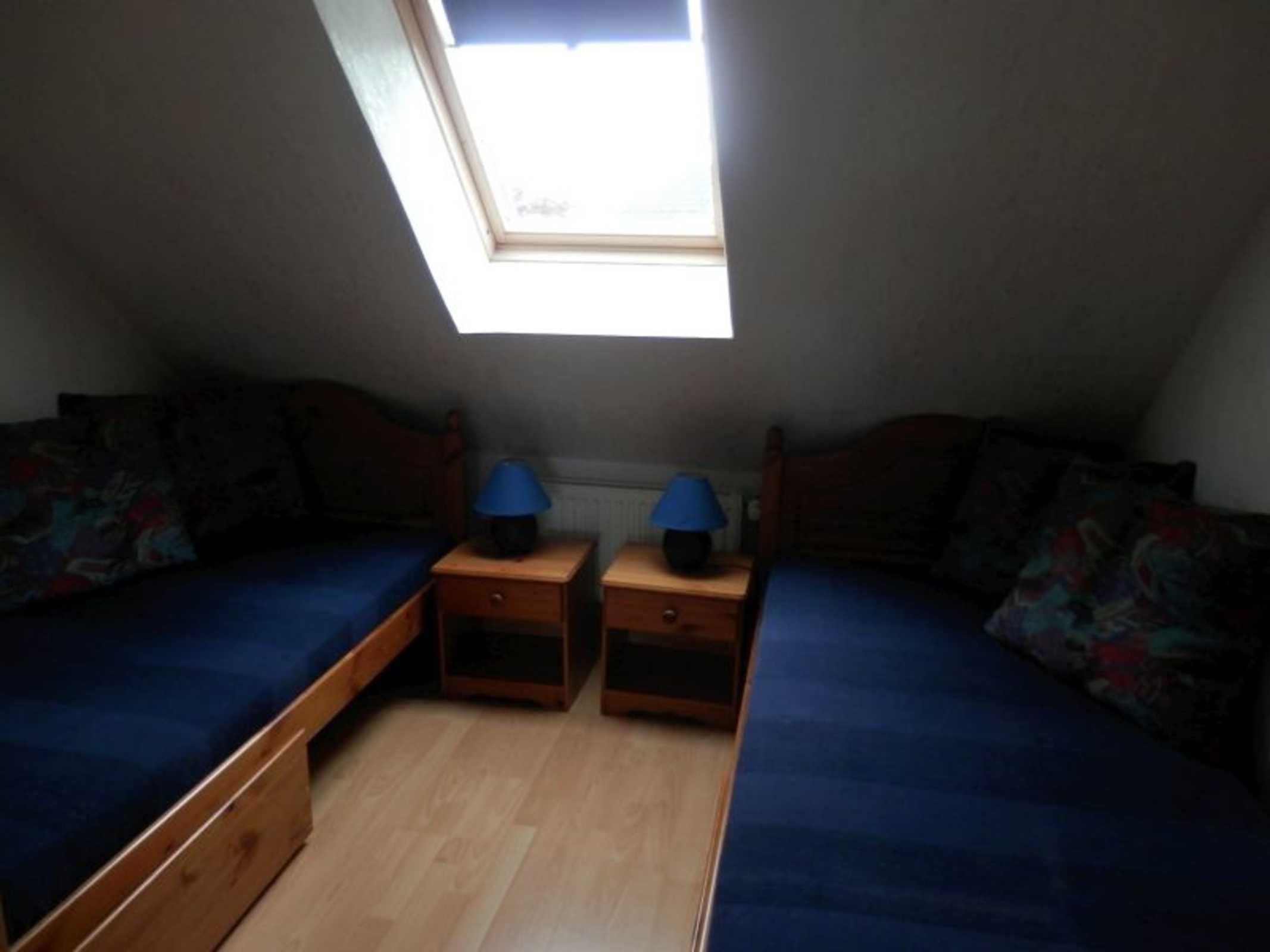 Darüber hinaus gibt es 2 Schlafzimmer (ein großes Zimmer mit Doppelbett, Schreibtisch und einem Flat-TV und ein kleines Zimmer mit 2 Einzelbetten), Dusche/WC, Waschmaschine, W-Lan und Kabel-TV.