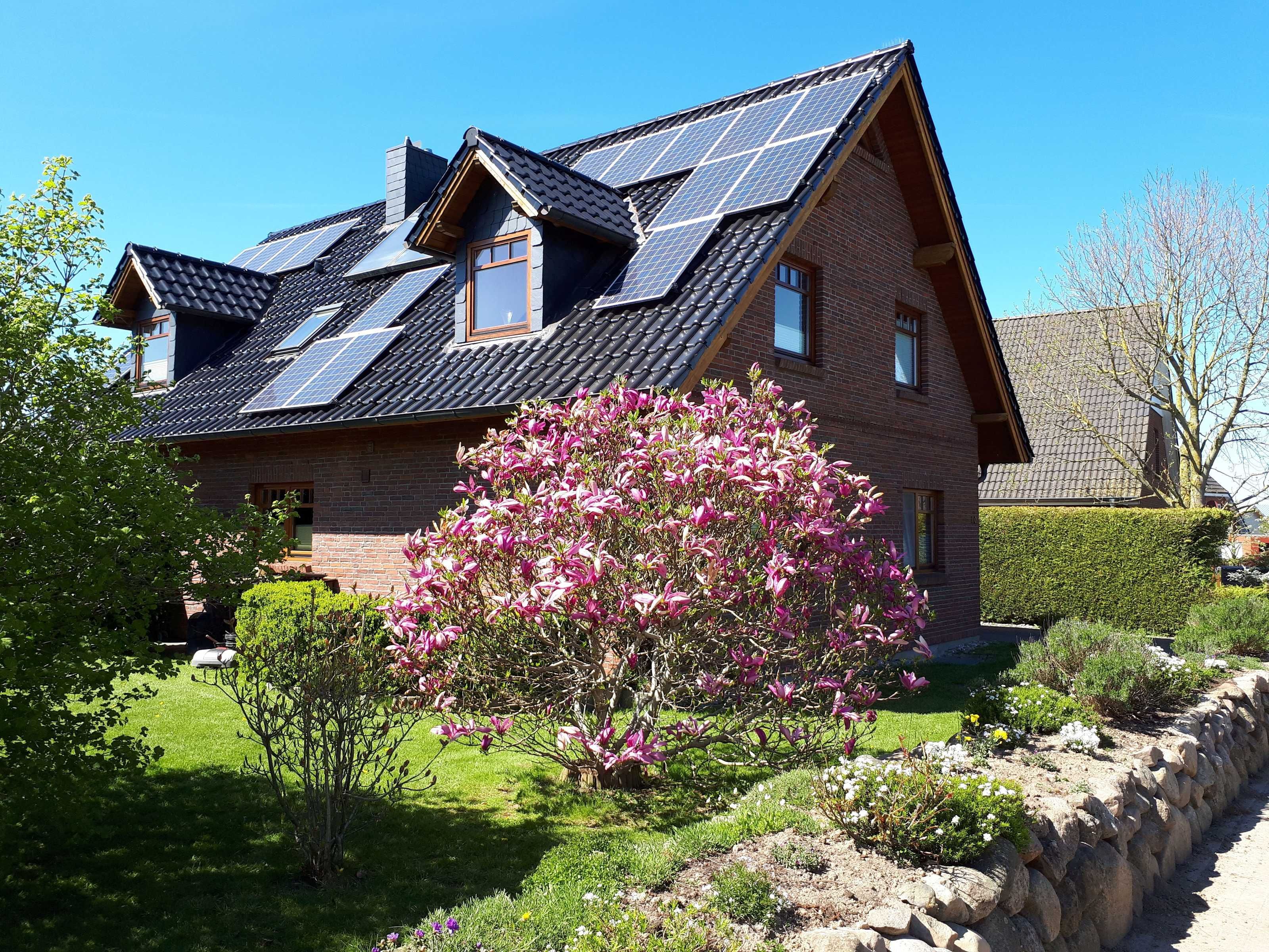 Unsere gemütlich eingerichtete Ferienwohnung ist 75 m² groß und hat einen großen Balkon zur Südseite. Sie können hier ab Mittags bis zum Sonnenuntergang die Sonne mit Ausblick in den ruhigen Garten genießen.