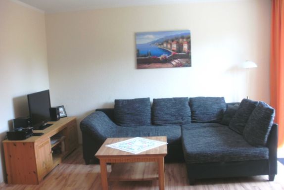 Gemütliche, sonnige und komfortable 2-Zimmer-Wohnung im Landhausstil mit Balkon im ersten Obergeschoss der zweigeschössigen Ferienresidenz Aquamarina Ein großes Wohnzimmer, Einbauküche mit Geschirrspüler, Essecke, Sitzgruppe mit Schlafcouch für 1 - 2 Personen, Laminat, Kabel-LED-TV, CD-Radio, sowie ein großes Schlafzimmer und ein modernes Duschbad begrüßen Sie aufs herzlichste.