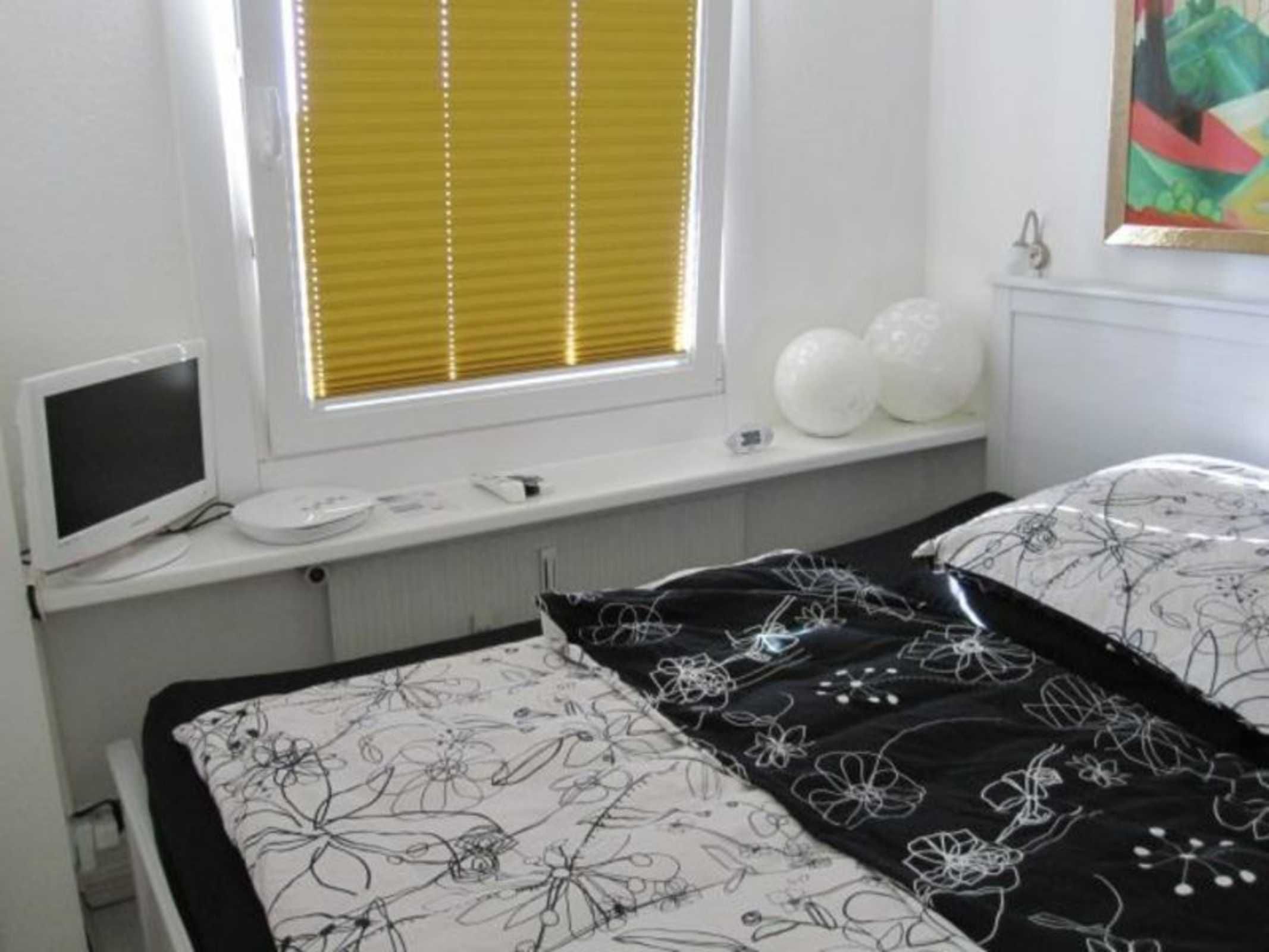 Die Ferienwohnung verfügt über ein helles Wohnzimmer mit gemütlicher Couch, Flachbildschirm, Musikanlage, ein Schlafzimmer mit Doppelbett, eine Einbauküche, ein Duschbad sowie einen Balkon mit Gartenmöbeln.