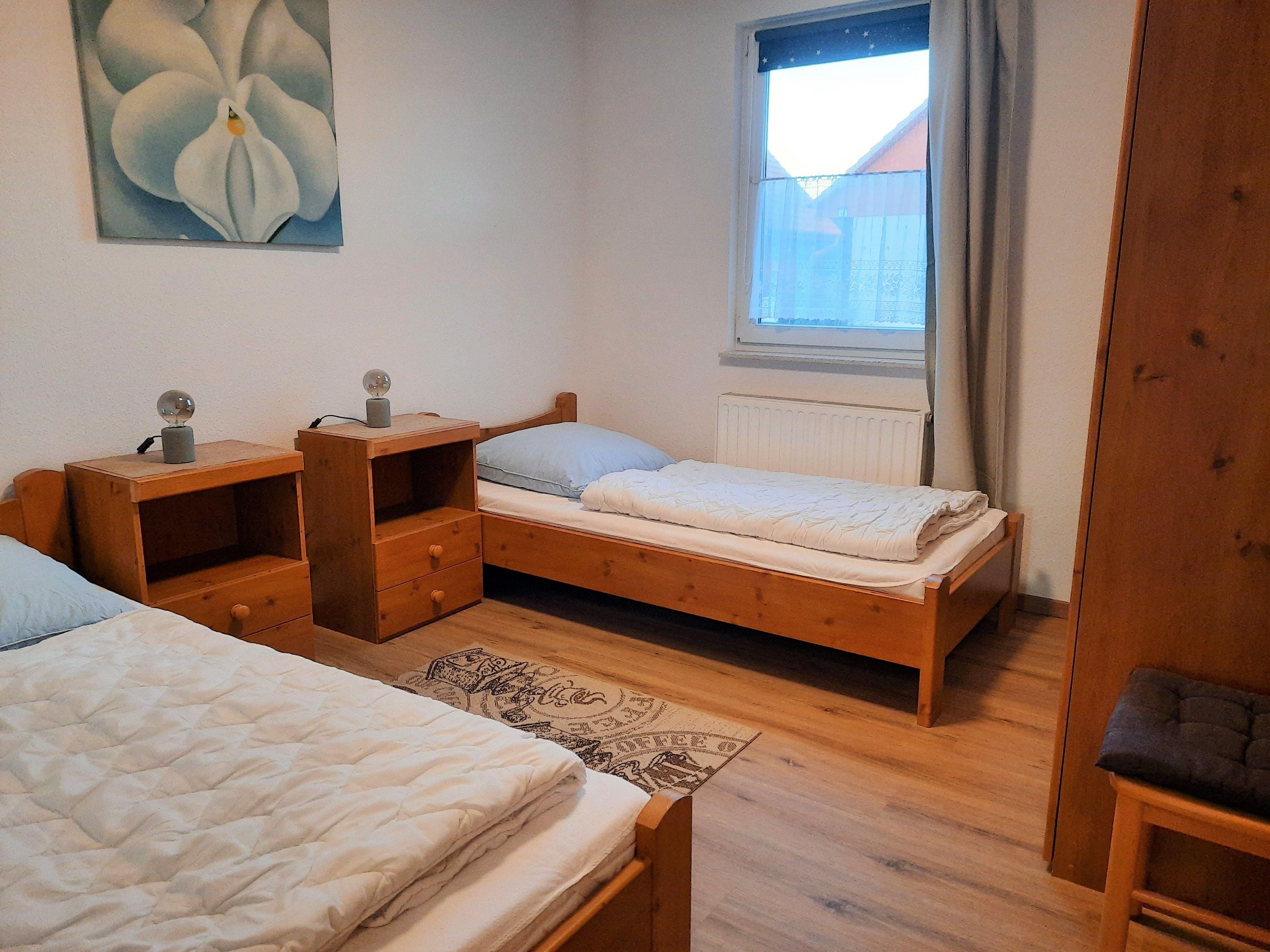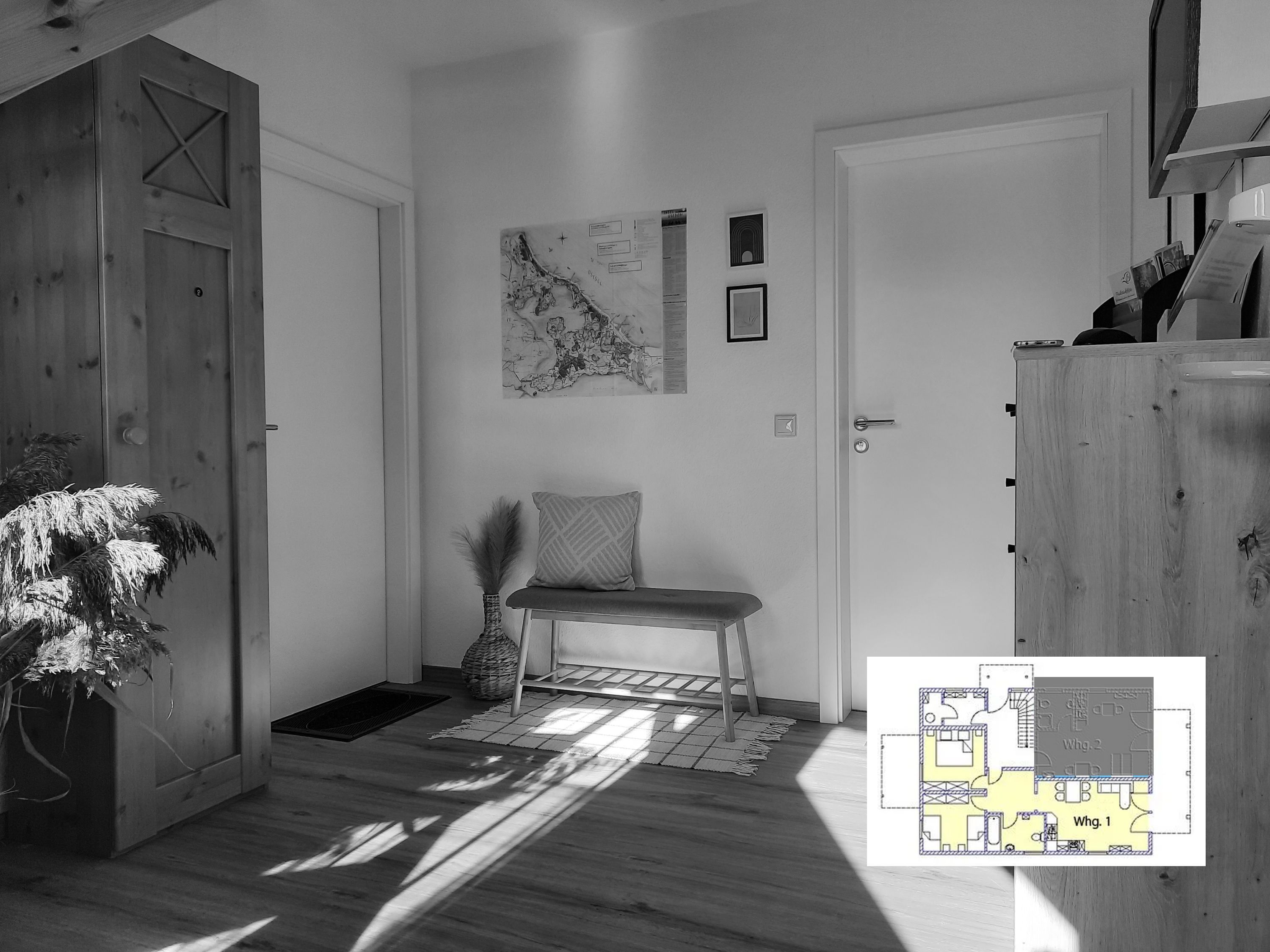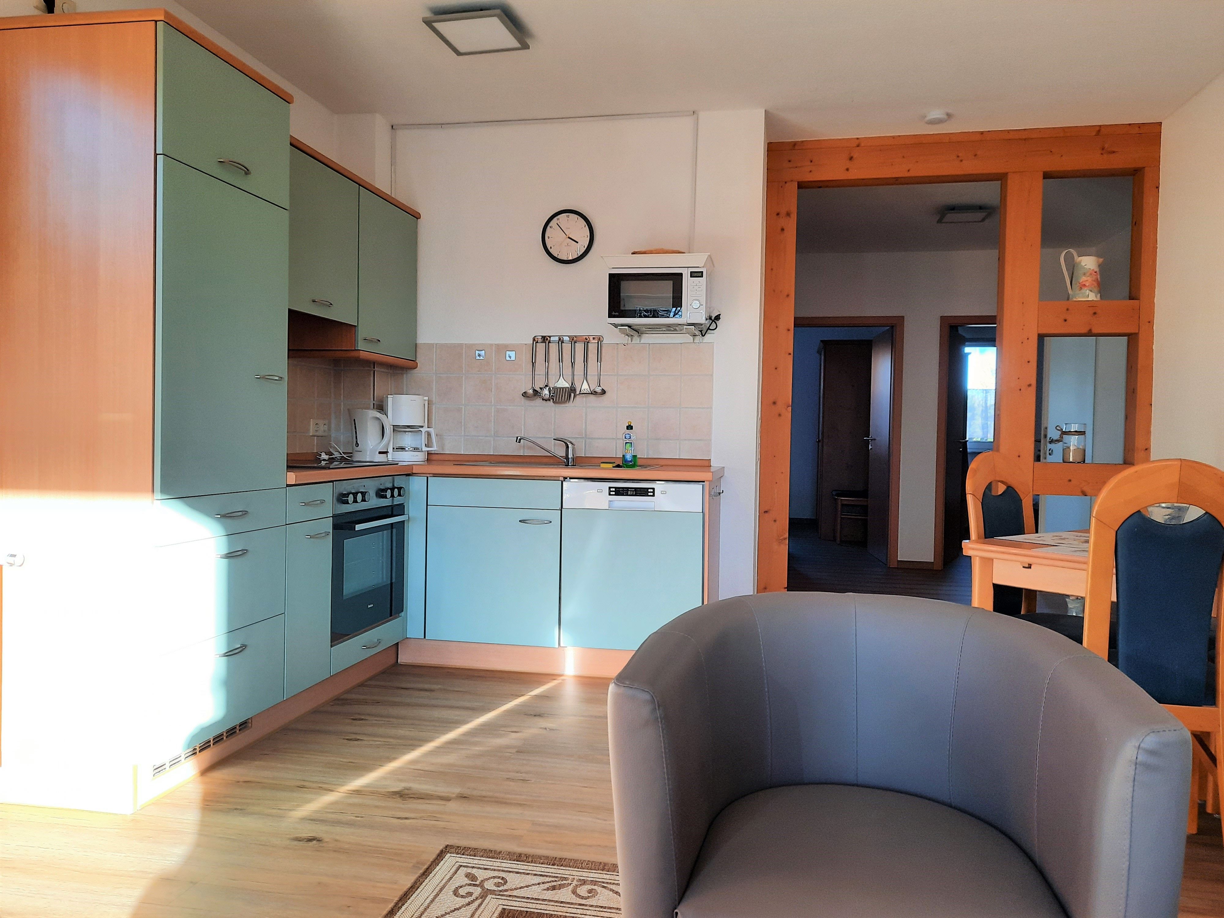 Die ca. 60qm große, helle 3-Raum-Ferienwohnung verfügt über einen großzügigen Wohn-Essbereich mit gemütlicher Couch und Smart-TV, Esstisch und einer offenen Küche mit Backofen, Cerankochfeld, Kühlschrank mit Gefrierfach, Mikrowelle, Geschirrspüler, Kaffeemaschine, Wasserkocher und Toaster. Das erste Schlafzimmer ist mit einem Doppelbett und das zweite Schlafzimmer mit zwei Einzelbetten ausgestattet. Das moderne Badezimmer verfügt über eine bodengleiche Dusche, Waschbecken, WC und einen Haartrockner. W-LAN steht Ihnen kostenfrei zur Verfügung.
