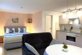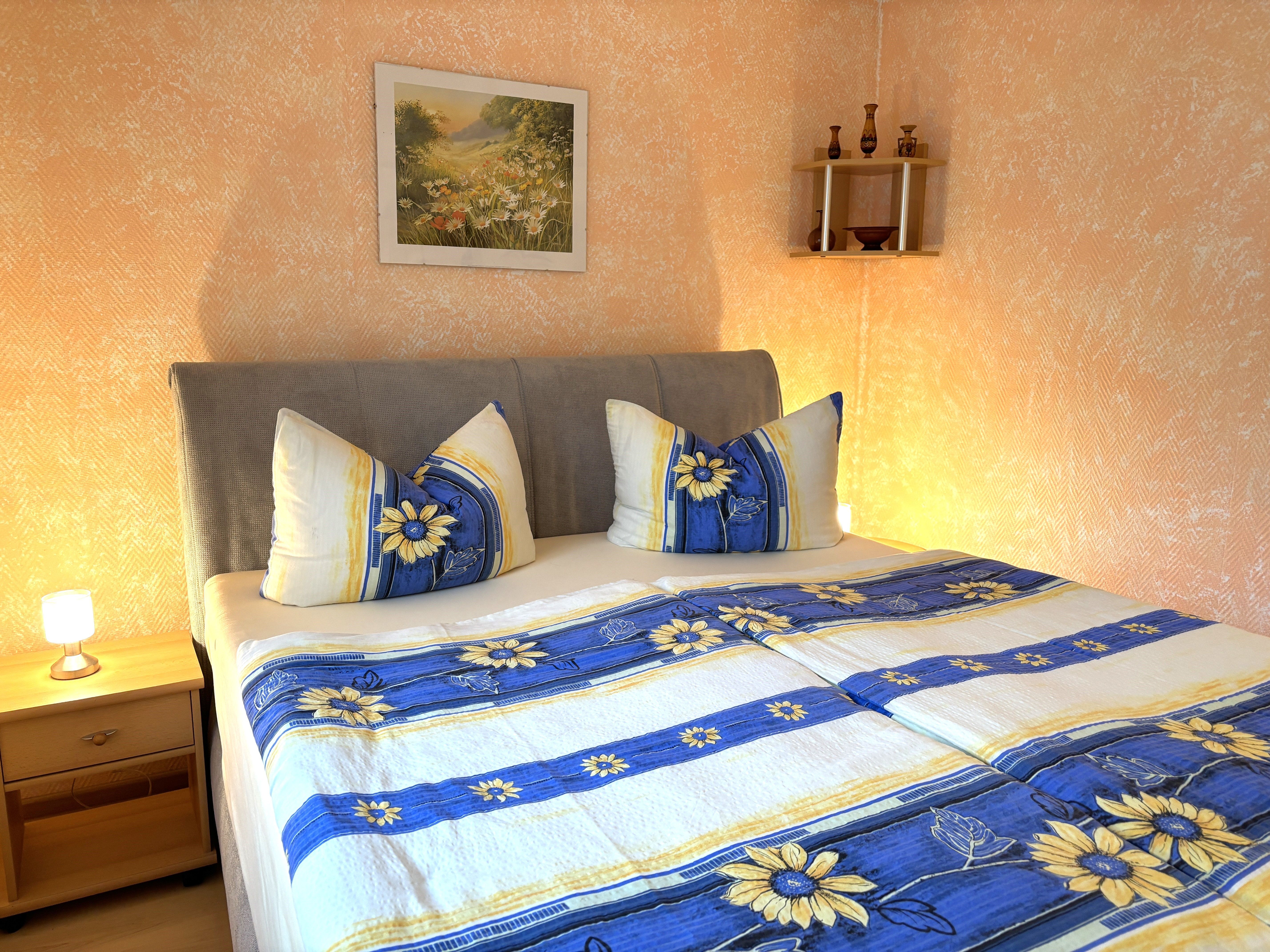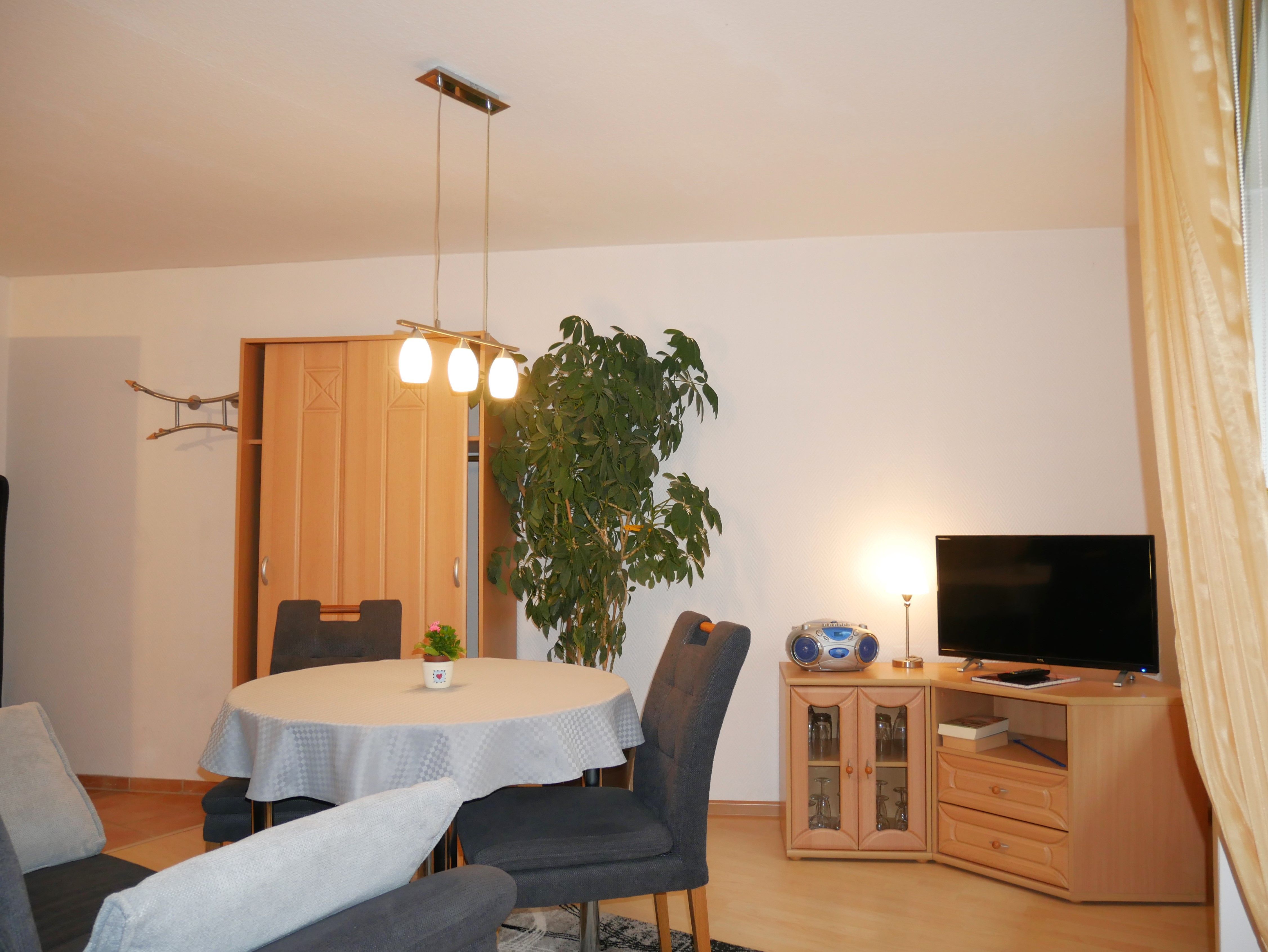 Das gemütlich eingerichtete Nichtraucher-1-Raum-Appartement ist ca. 38qm groß und für 2 Personen geeignet. Es verfügt über ein Wohnschlafzimmer mit Doppelbett und einem geräumigen Kleiderschrank. Ebenso gibt es eine gemütliche Couchsitzecke mit Tisch, TV, Radio mit CD-Player. In den Wohnraum fügt sich eine sehr gut ausgestattete Küchenzeile mit 4-Platten-Ceranherd, Backofen, Kühlschrank, Kaffeemaschine, Toaster und Wasserkocher ein. Das Badezimmer verfügt über Dusche/WC. Vor dem Appartement gibt es eine sonnige möbelierte Terrasse auf der auch gegrillt werden darf. Im Garten befindet sich eine Schaukel für die kleinen Gäste. Ein Pkw-Stellplatz, Bettwäsche, Endreinigung sind im Preis inklusive. Ein Kinderreisebett und Hochstuhl sind auf Anfrage kostenfrei verfügbar. Handtücher sind mitzubringen.