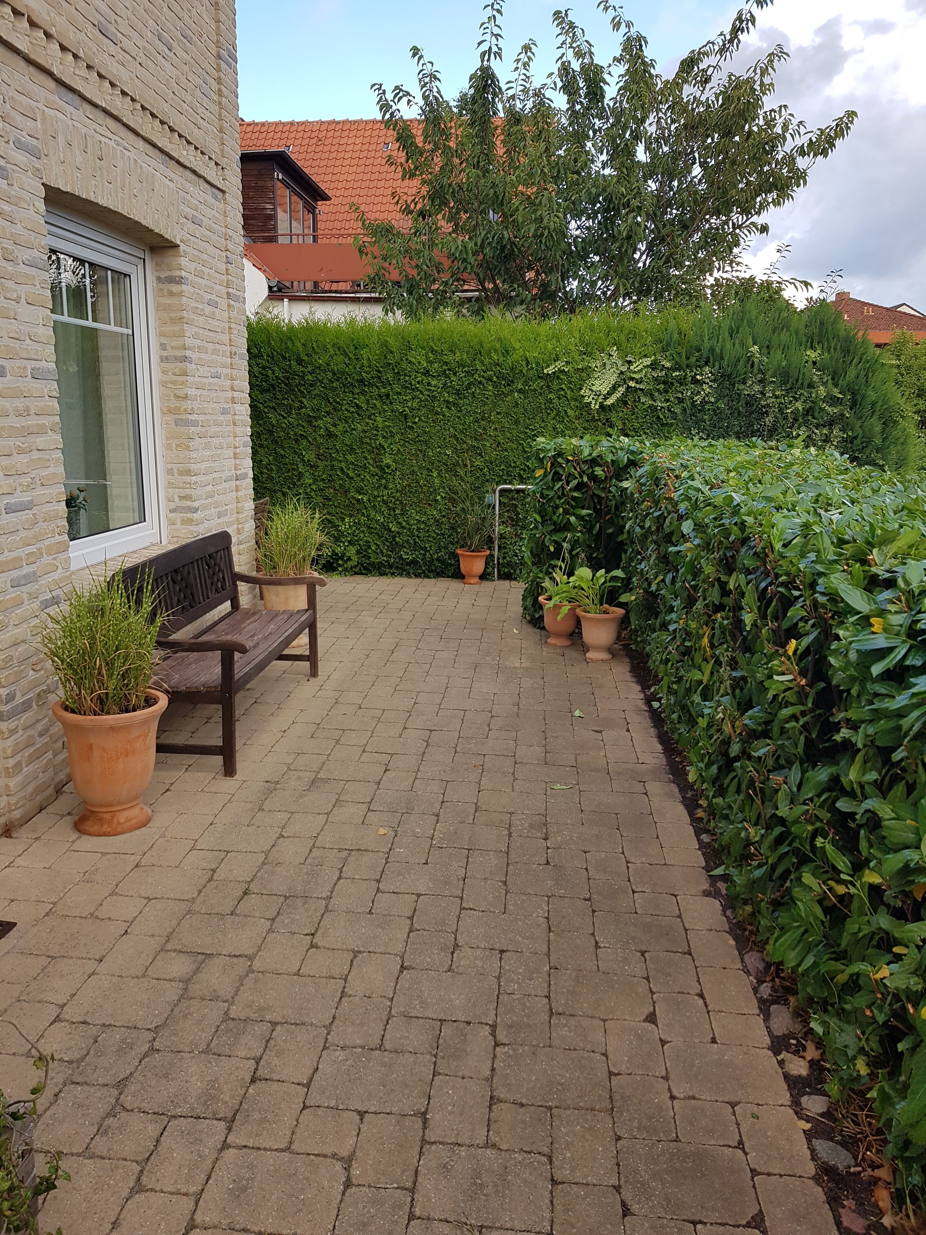 Die Parkplätze befinden sich direkt vor bzw. neben dem Haus.