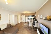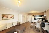 Die Nichtraucherferienwohnung Nr. 04 befindet sich im Erdgeschoss des Hauses und verfügt über eine Wohnfläche von ca. 50 qm. Die Ferienwohnung ist für 2 bis 4 Personen ausgelegt. Im kombinierten Wohn- und Essbereich befindet sich integrierte Küchenzeile. Die komplett ausgestattete Küchenzeile verfügt über ein Cerankochfeld, Backofen, Dunstabzugshaube, Kühlschrank mit Gefrierfach, Spülmaschine, Kaffeemaschine, Mikrowelle, Wasserkocher, Toaster und weitere diverse Küchenutensilien. Der Esstisch mit Bestuhlung ist für 4 Personen geeignet. Vom Wohnbereich aus gelangen Sie durch die Terrassentür auf die Terrasse. Das im Wohnbereich vorhandene Schlafsofa verfügt über eine Ausziehfunktion (1,30m x 2,00m) und kann von 2 Personen gut genutzt werden. Ein kleiner Couchtisch, Leselampe, TV-Board mit Smart-TV, Receiver, DVD/Blu-Ray-Player und Ministereoanlage runden den Wohnbereich ab. Auch im Urlaub brauchen Sie auf einen Internetanschluß (WLAN) nicht verzichten. Dieser ist für Sie inklusive. Das im Schlafbereich vorhandene Doppelbett hat eine Größe von 1,80m x 2,00m, Nachttischkonsolen und einen Kleiderschrank, der für die Unterbringung der Kleidung im Schlafbereich sorgt. Das Bad rundet mit einem WC, Waschbecken, Kosmetikspiegel, Fön, Dusche, und Handtuchwärmeheizkörper die Wohnung komplett ab. In allen Räumen sorgt eine Fußbodenheizung für angenehme Wärme. Die wohnungseigene Terrasse verfügt über einen Terrassentisch + 4 Stühlen, Elektrogrill und ist Richtung Süd/West ausgerichtet. Die Fenster haben Außenjalousien. Ein eigener PKW-Stellplatz Nr. 04 befindet sich auf dem Grundstück, mitgebrachte oder gemietete Fahrräder können im wohnungseigenen Abstellraum untergestellt werden. 1 gut erzogenes Haustier ist gegen eine Gebühr ein gern gesehener Gast. Die Erstausstattung eines Wäschepaketes (komplette Bettwäsche, 1 Duschhandtuch, 2 kleine Handtücher) können Sie bis 14 Tage vor Anreise gegen einen Aufpreis dazu buchen oder durch eigene ergänzen. Ab 2 gebuchten Paketen erhalten Sie einmalig 1 Geschirrhandtuch und 1 Duschvorleger hinzu.