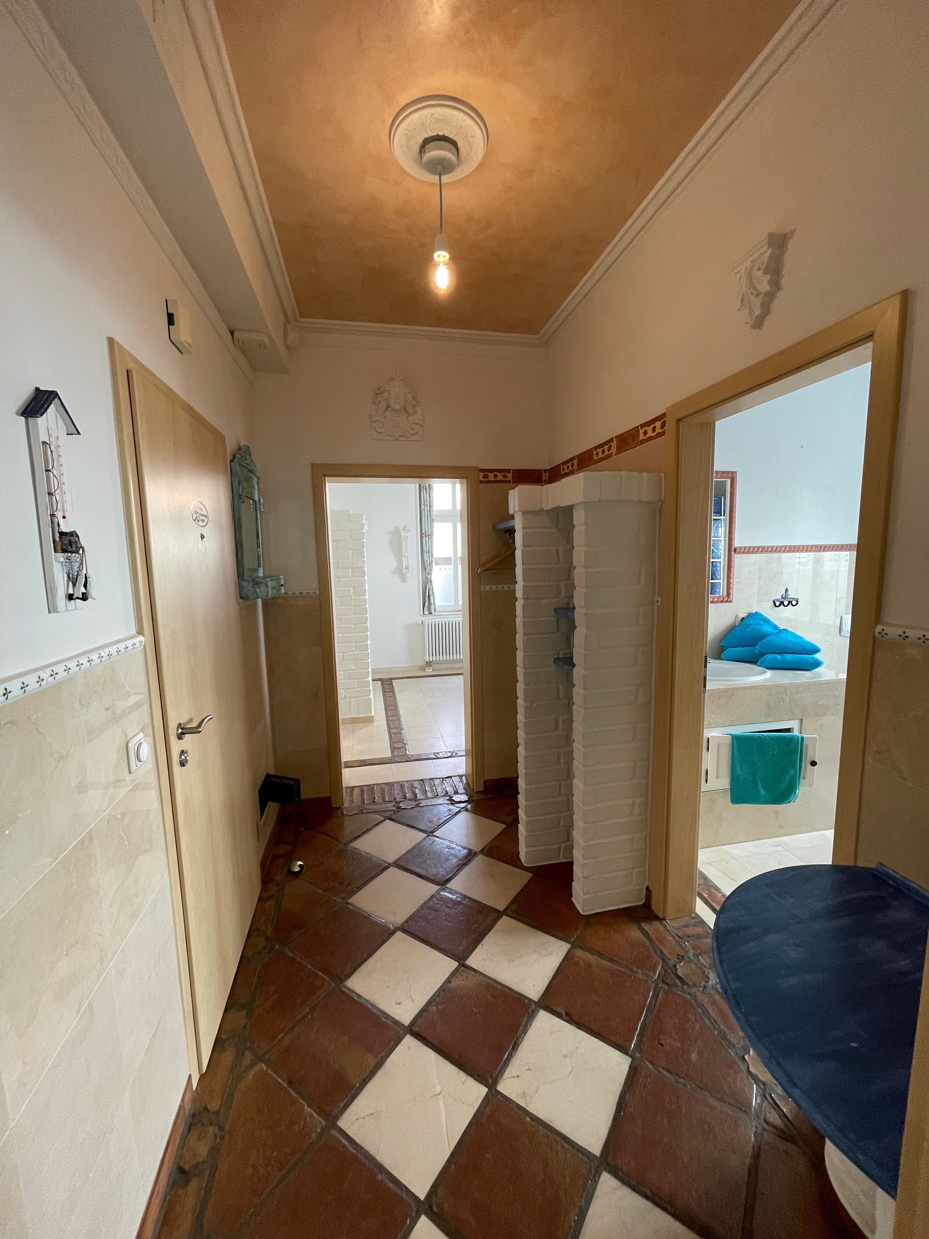 Eine voll ausgestatteter Küche mit Geschirrspüler, Microwelle, E-Herd mit Backofen, Tief-Kühlschrank uvm, sowie ein in Marmor gehaltenes Bad mit Dusche oder Badewanne, Fußbodenheizung, Föhn, Bügeleisen, Bügelbrett und Hanftuchtrockner. Der Stellplatz für Ihren PKW und Fahrradschuppen befinden sich am Haus.