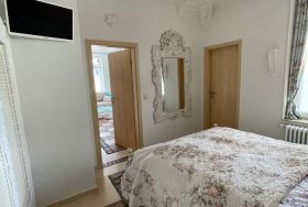 Eine voll ausgestatteter Küche mit Geschirrspüler, Microwelle, E-Herd mit Backofen, Tief-Kühlschrank uvm, sowie ein in Marmor gehaltenes Bad mit Dusche oder Badewanne, Fußbodenheizung, Föhn, Bügeleisen, Bügelbrett und Hanftuchtrockner. Der Stellplatz für Ihren PKW und Fahrradschuppen befinden sich am Haus.